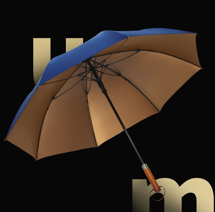 청동 솔리드 우드 핸들 골프 우산 남성 비즈니스 선물 맞춤형 골드 접착제 광고 우산 도매 스트레이트 로드 긴 핸들 우산스토어 가기