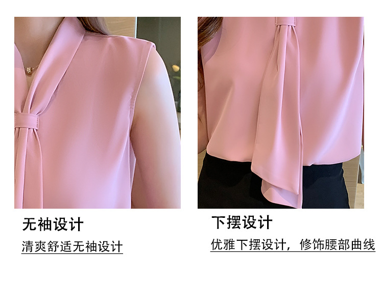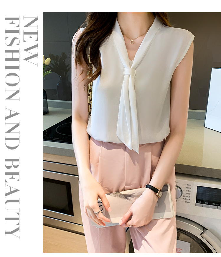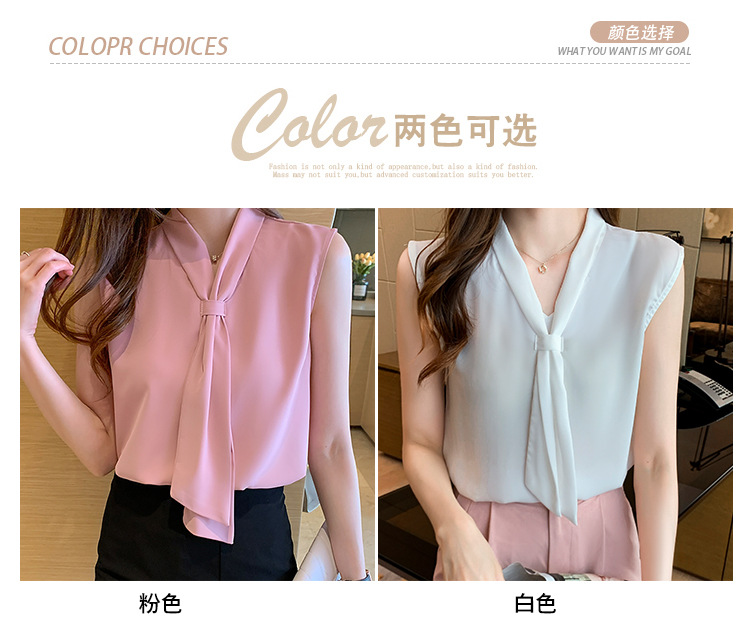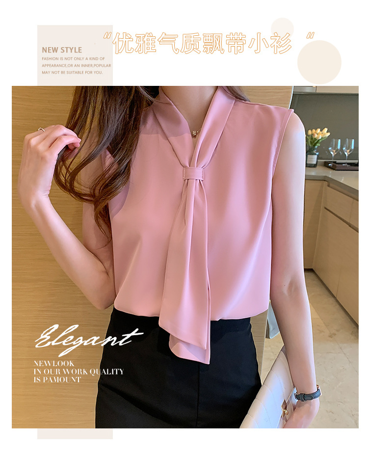 여성용 쉬폰 셔츠 여름 2024 새로운 패션 작은 셔츠 우아한 달콤한 배를 덮는 느슨한 올 매치 민소매 탑