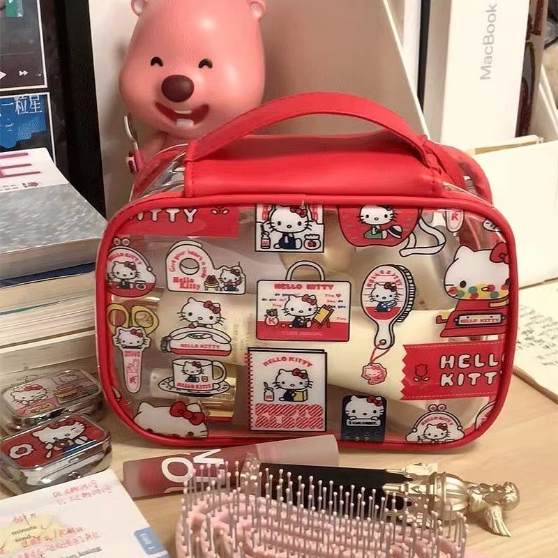 새로운 PVC 투명 화장품 가방 만화 휴대용 대용량 방수 스킨 케어 보관 가방 화장실 가방 일본어 휴대용스토어 가기