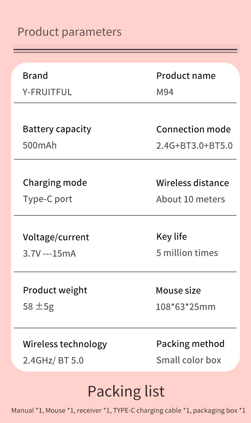 국경을 넘는 재고 컬러 M94 무선 마우스 사무용 무소음 USB 무선 블루투스 3모드 피규어 마우스 선물스토어 가기