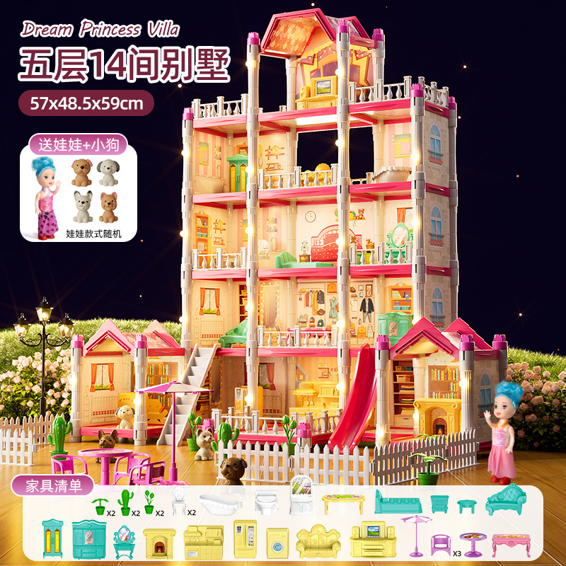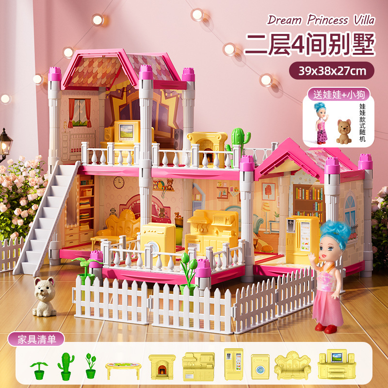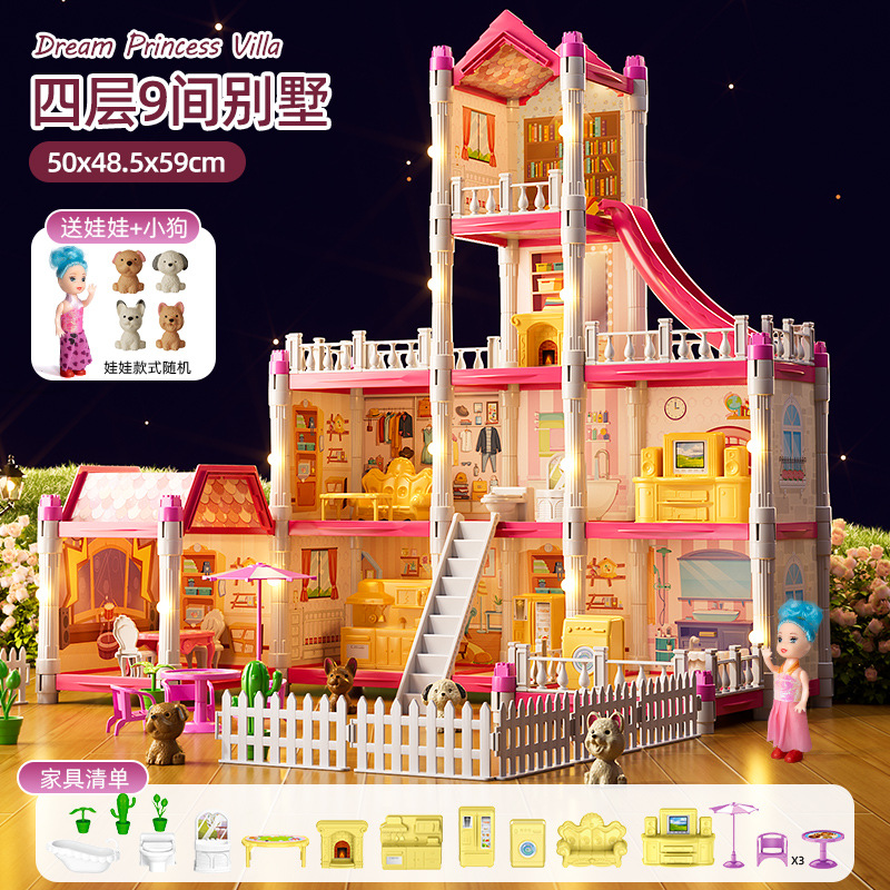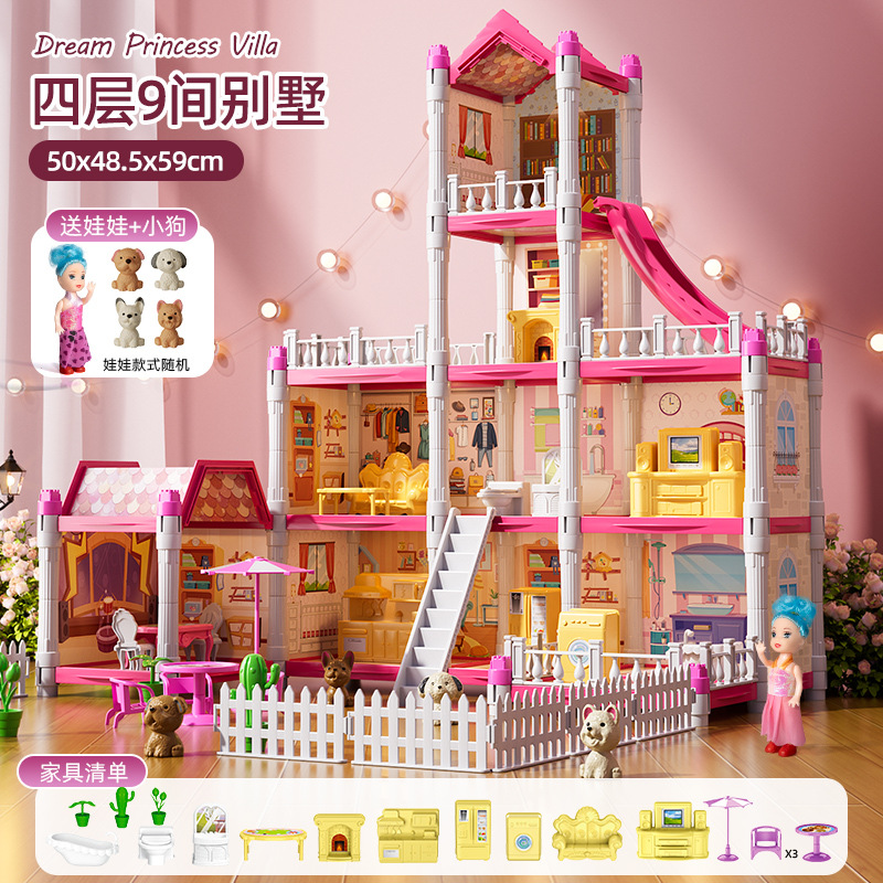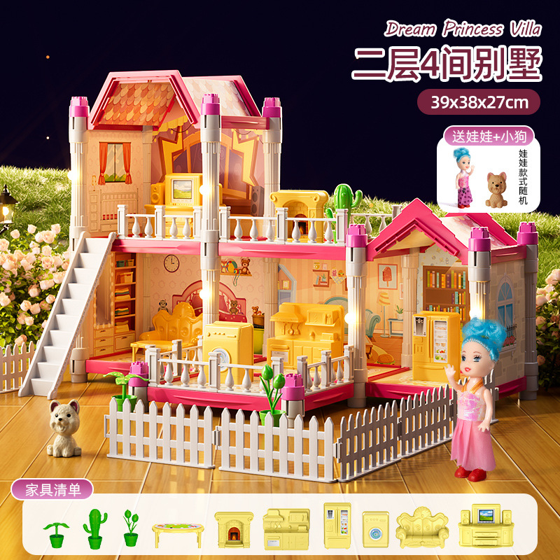 2024 새로운 꿈 빌라 맨션 성 인형 세트 대형 선물 상자 시뮬레이션 공주 소녀 장난감