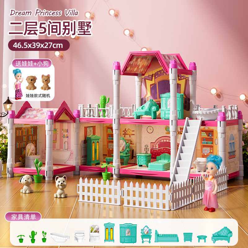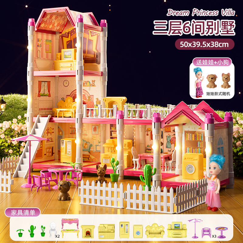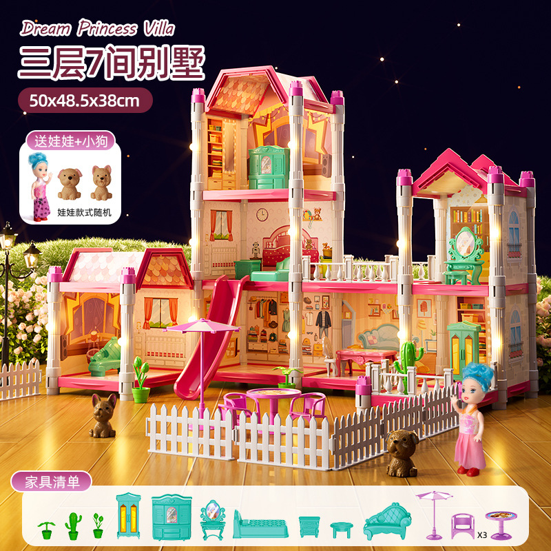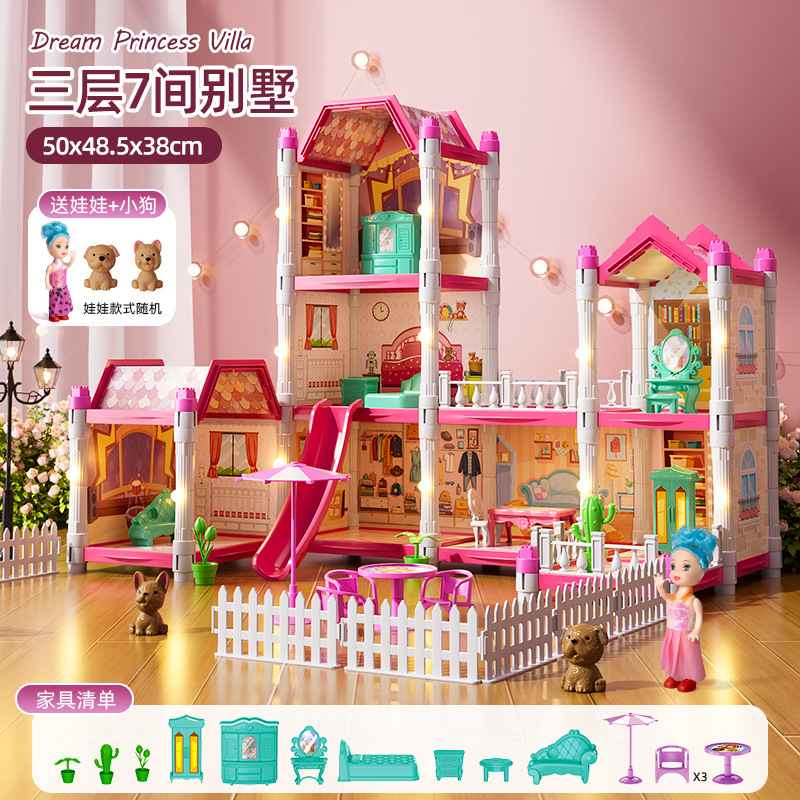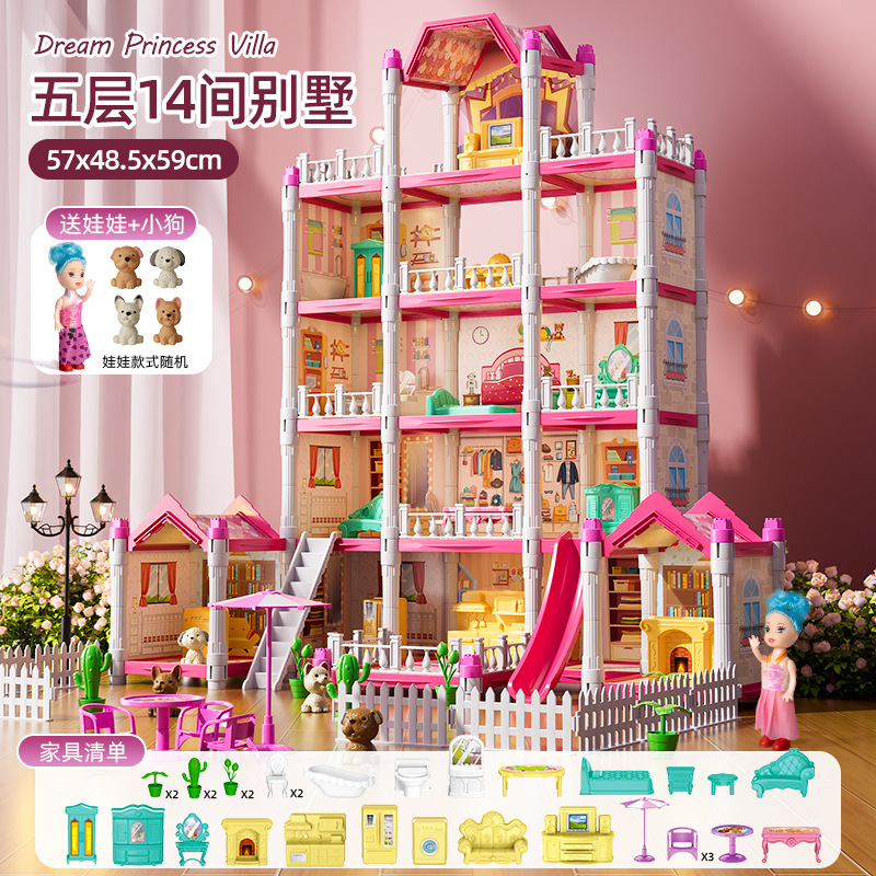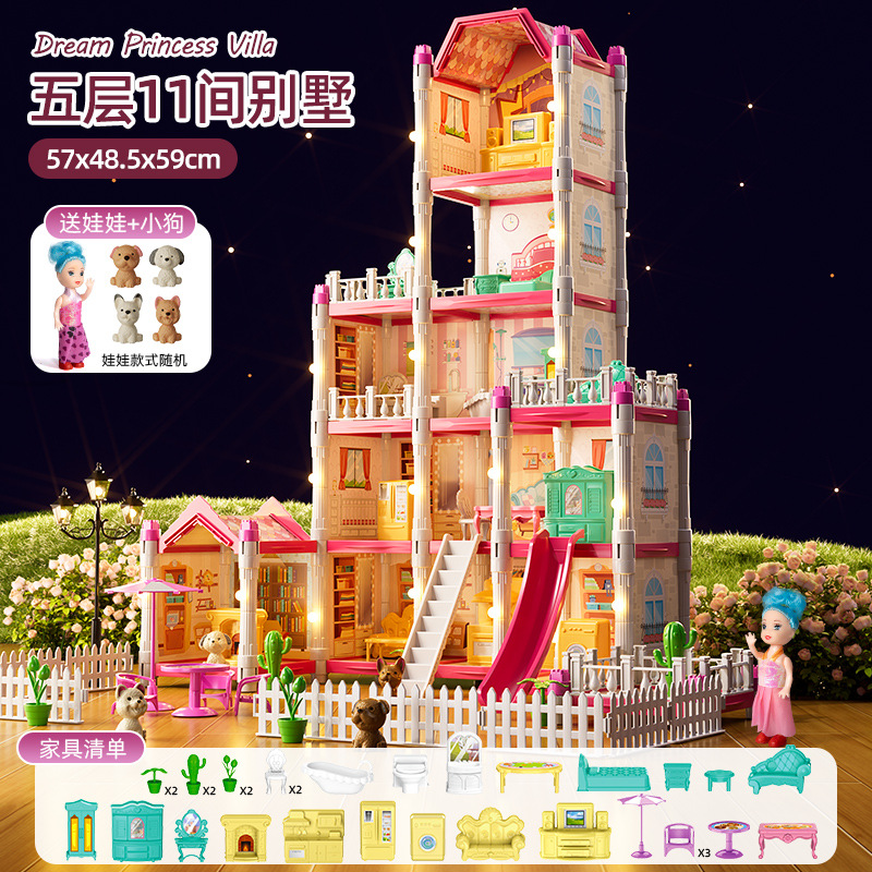 2024 새로운 꿈 빌라 맨션 성 인형 세트 대형 선물 상자 시뮬레이션 공주 소녀 장난감