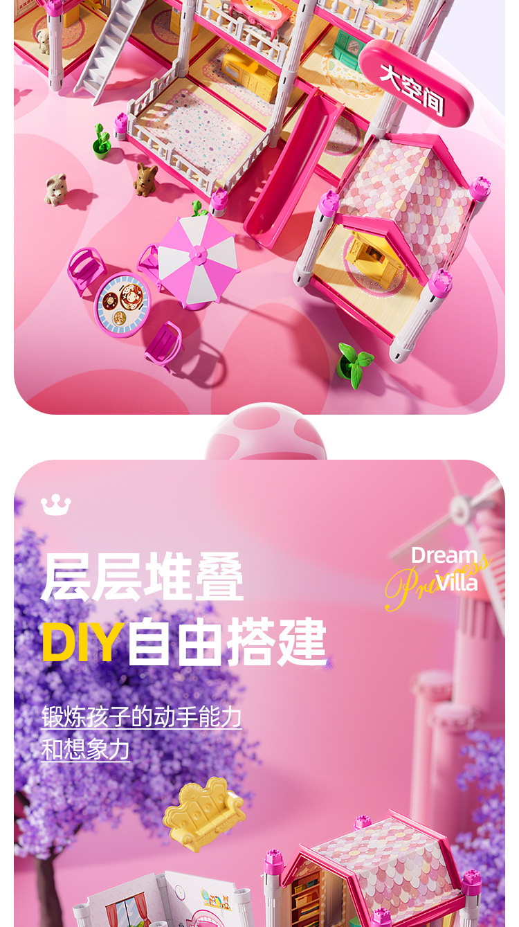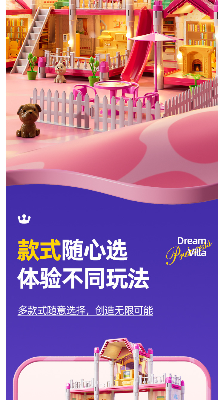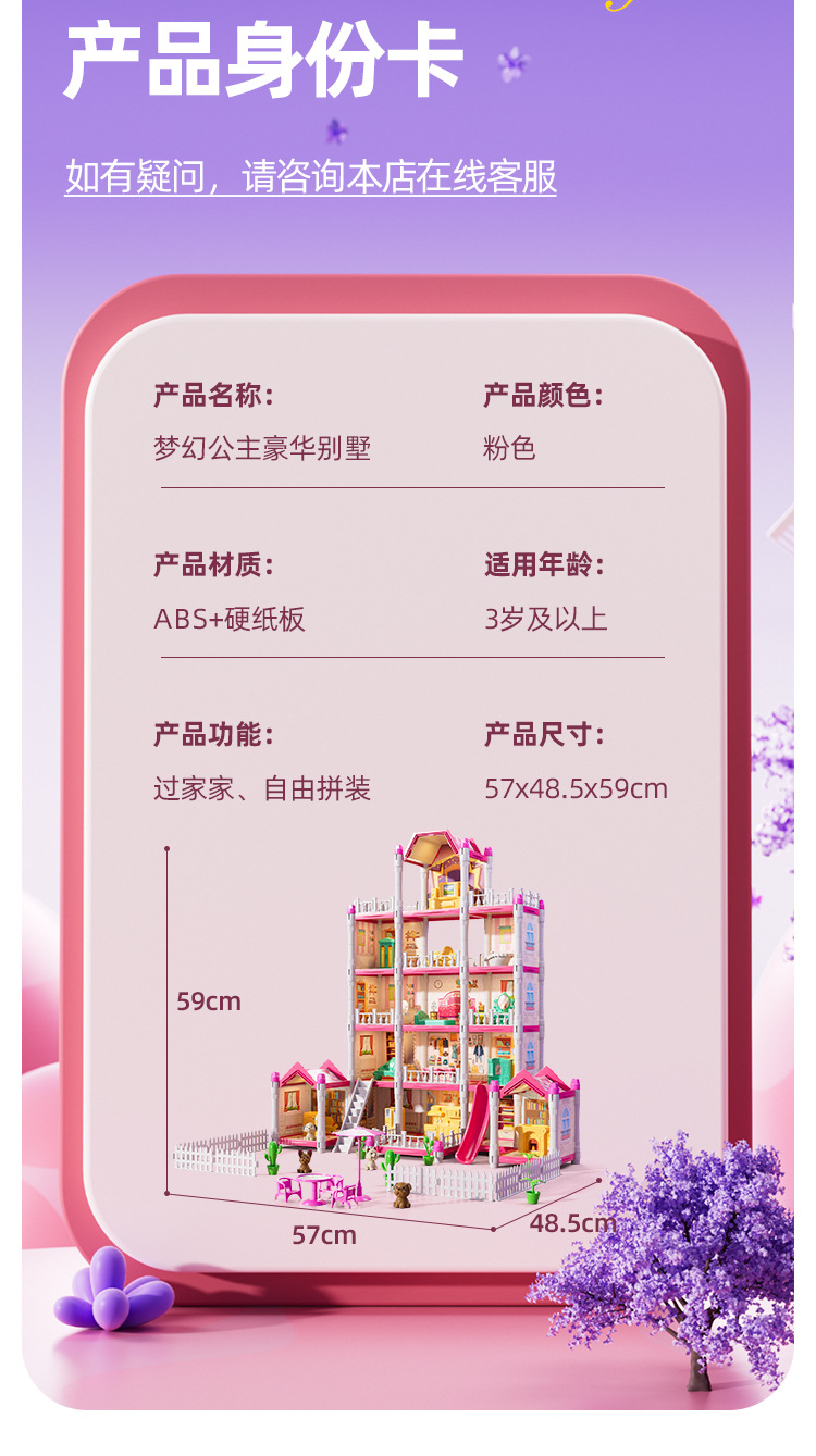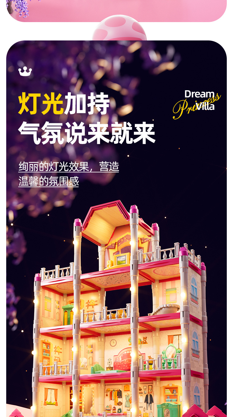 2024 새로운 꿈 빌라 맨션 성 인형 세트 대형 선물 상자 시뮬레이션 공주 소녀 장난감스토어 가기