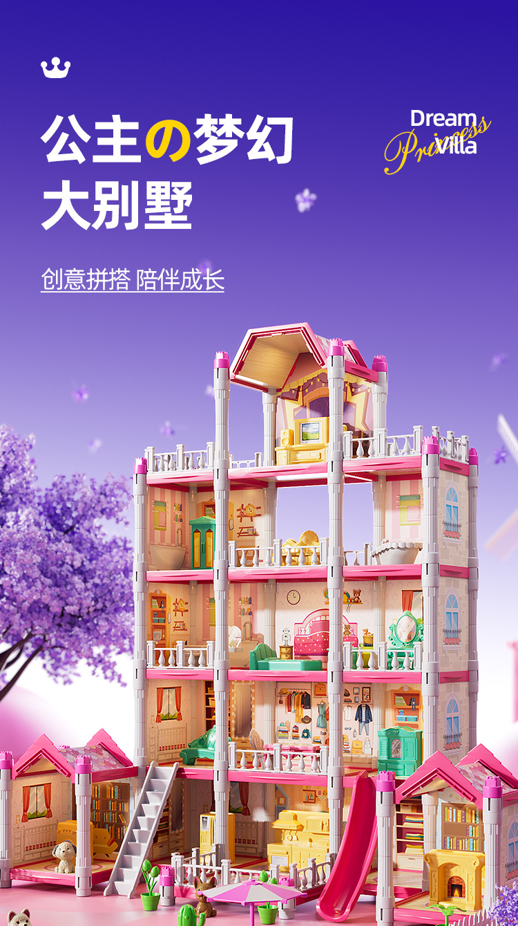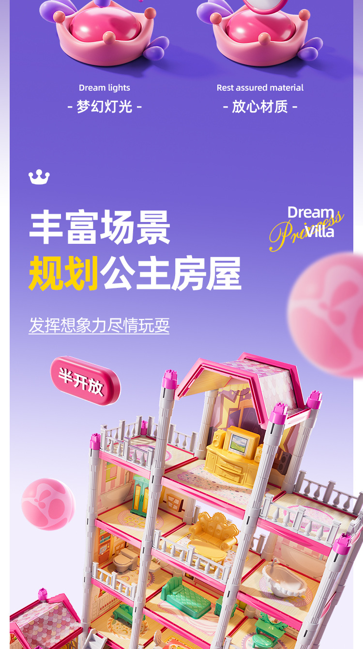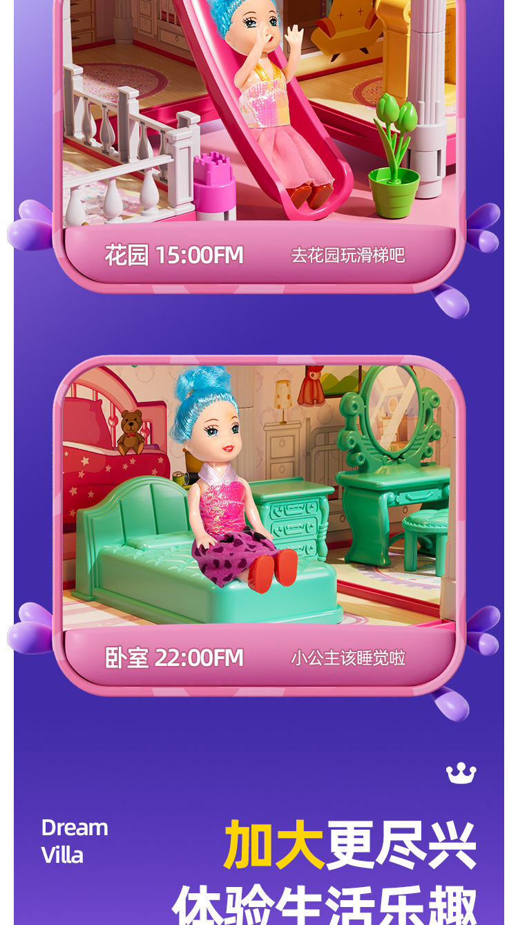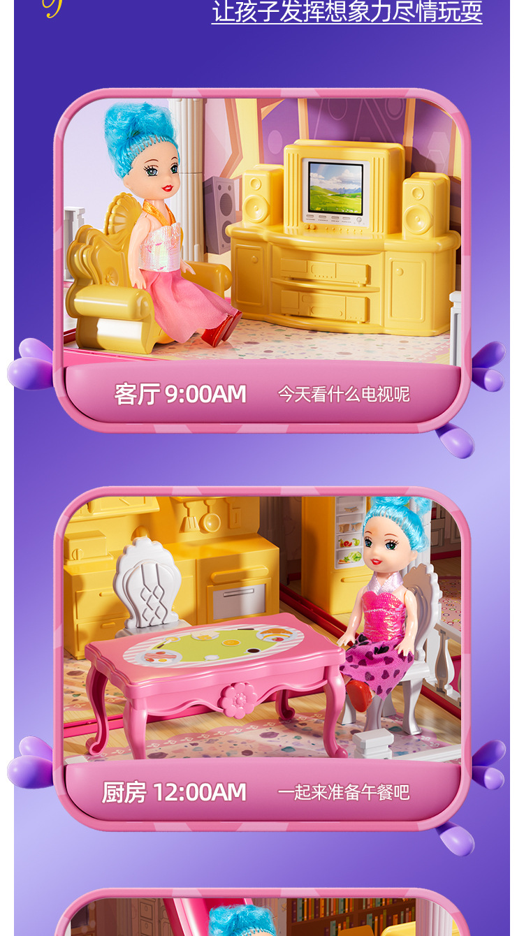2024 새로운 꿈 빌라 맨션 성 인형 세트 대형 선물 상자 시뮬레이션 공주 소녀 장난감스토어 가기