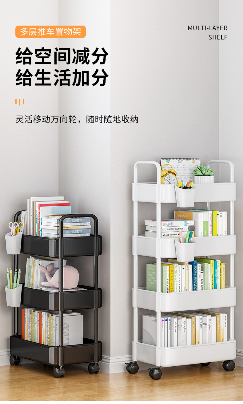 이중 손잡이가 있는 다용도 이동식 선반, 간식 선반, 책꽂이, 주방, 욕실, 화장실용 다층 선반스토어 가기