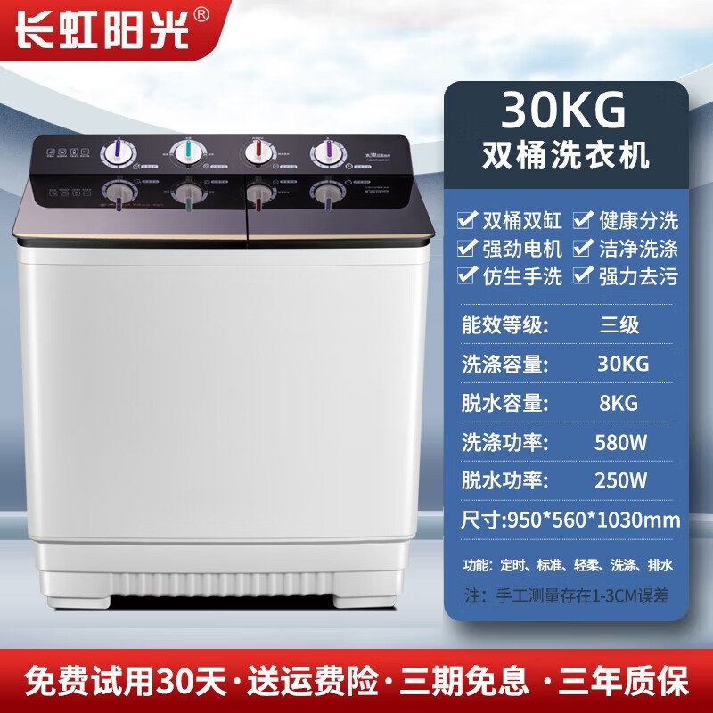 창홍 햇살 20KG 반자동 세탁기 더블 실린더 더블 배럴 가정용 대용량 임펠러 호텔 아파트스토어 가기
