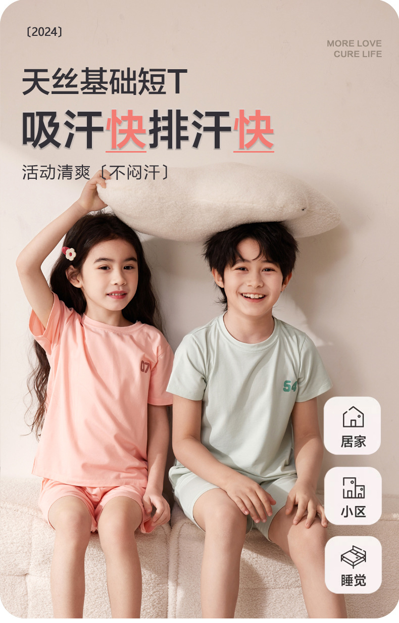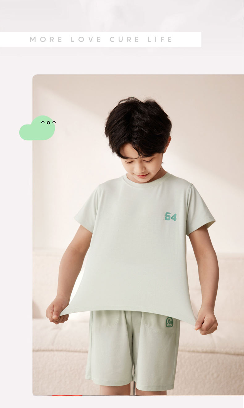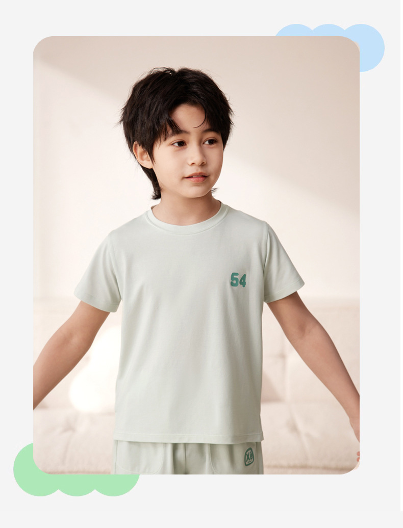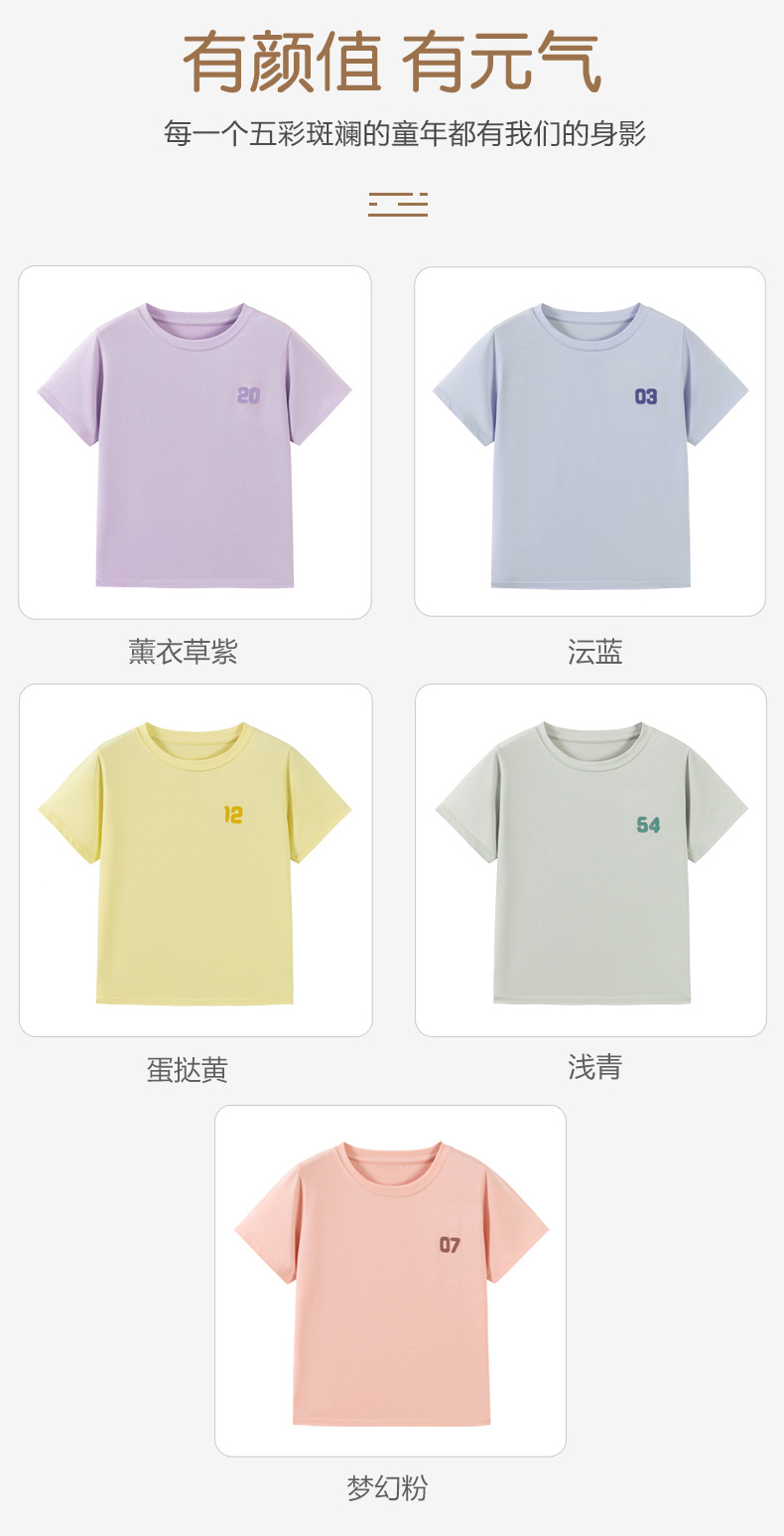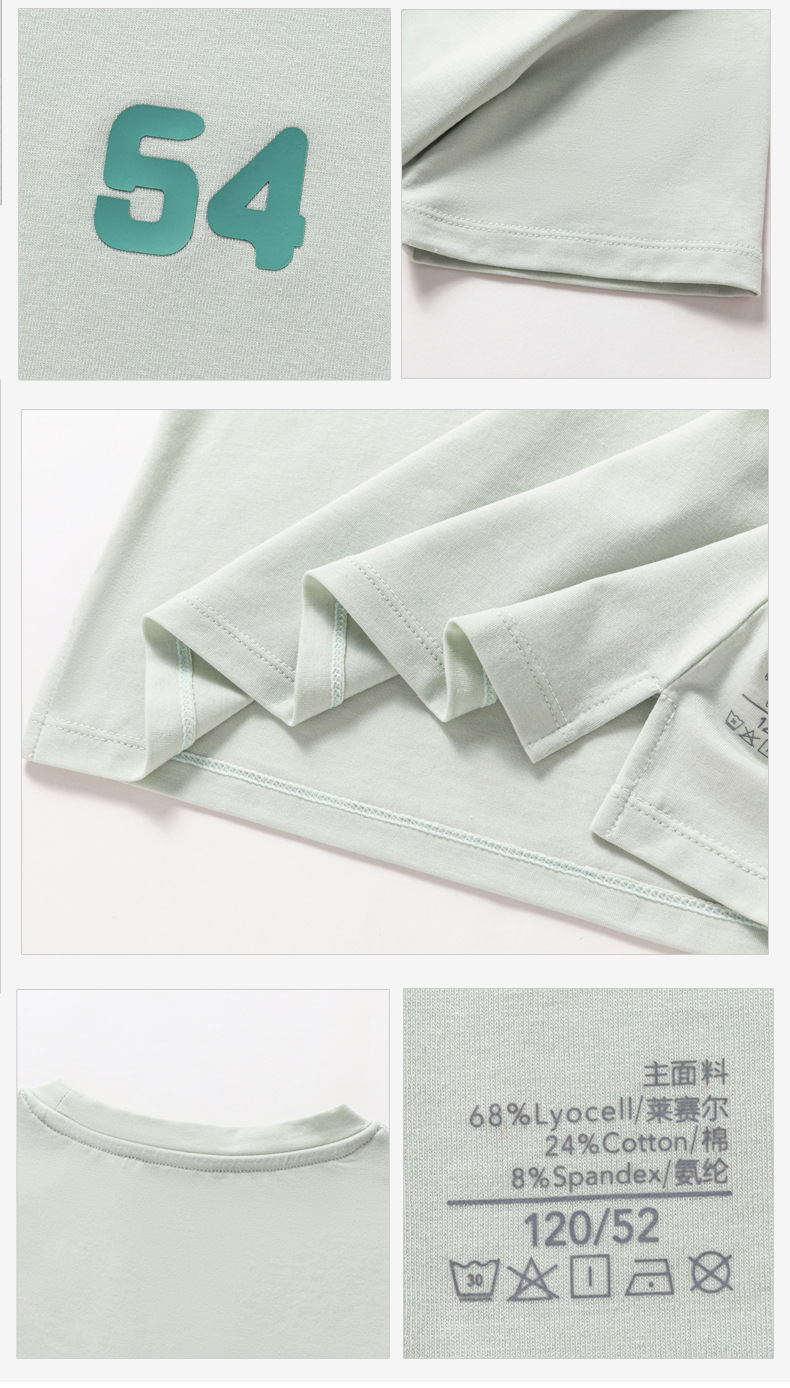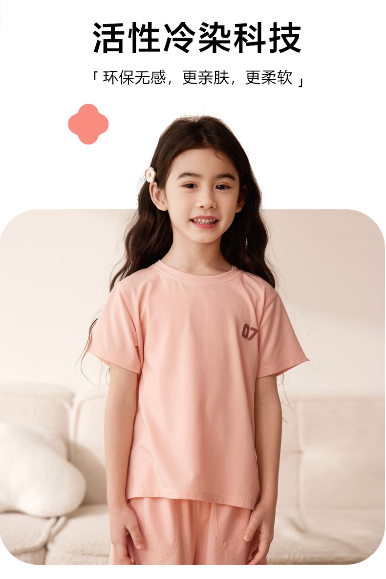 Amber Tong 아동용 티셔츠 반팔 클래스 A 여름 얇은 텐셀 리오셀 탑 소년 소녀 라운드 넥 홈 의류스토어 가기