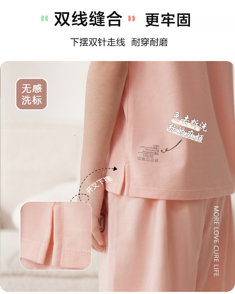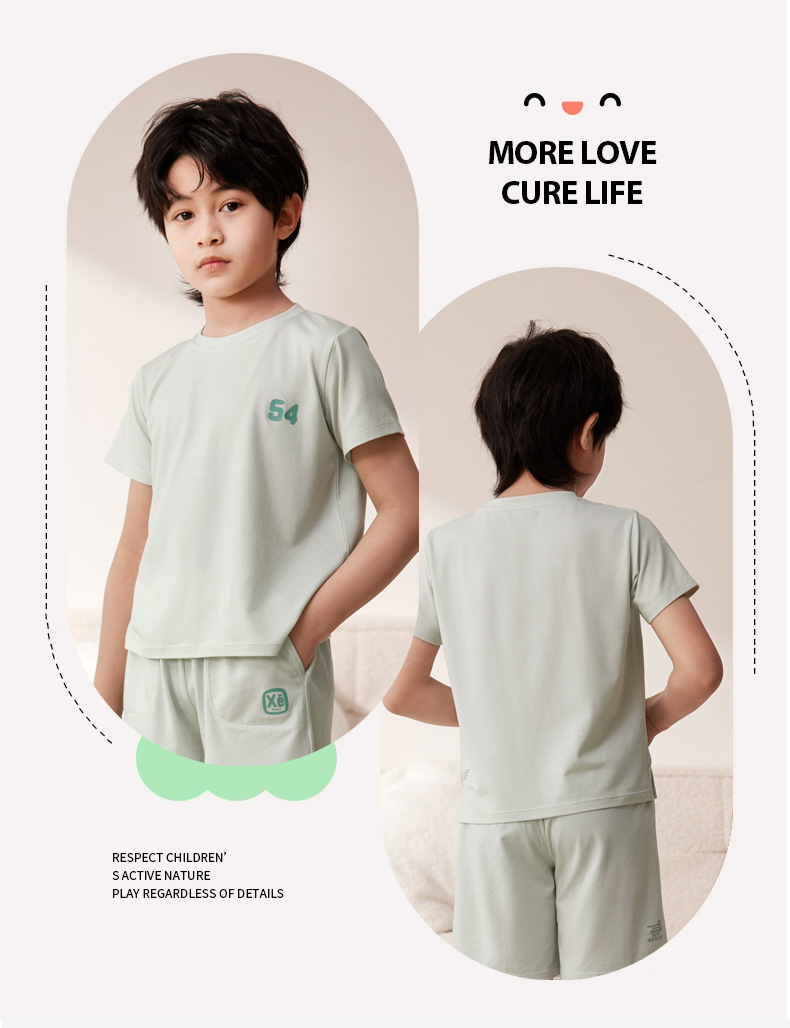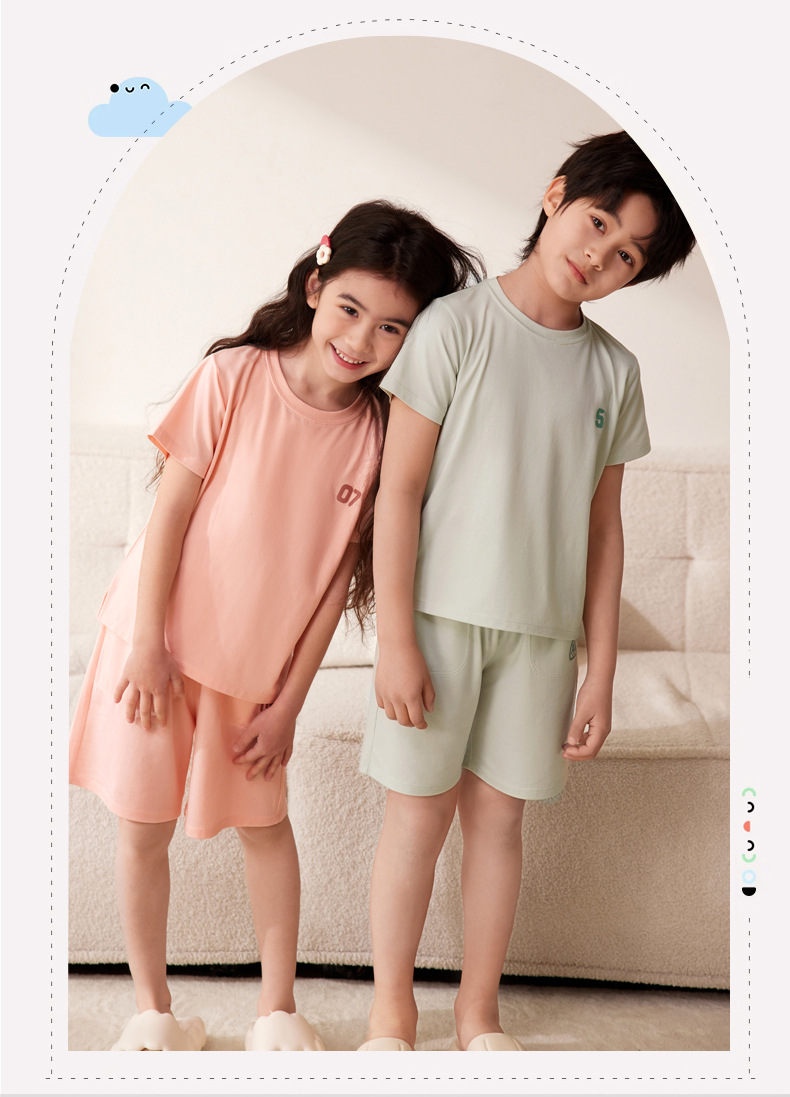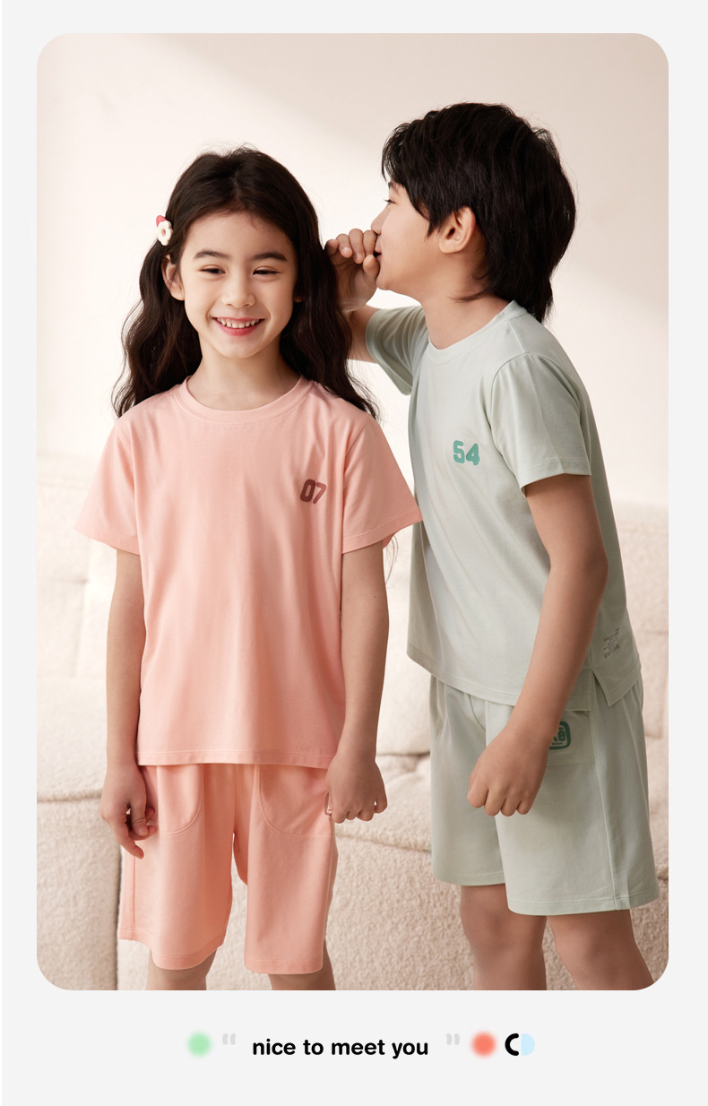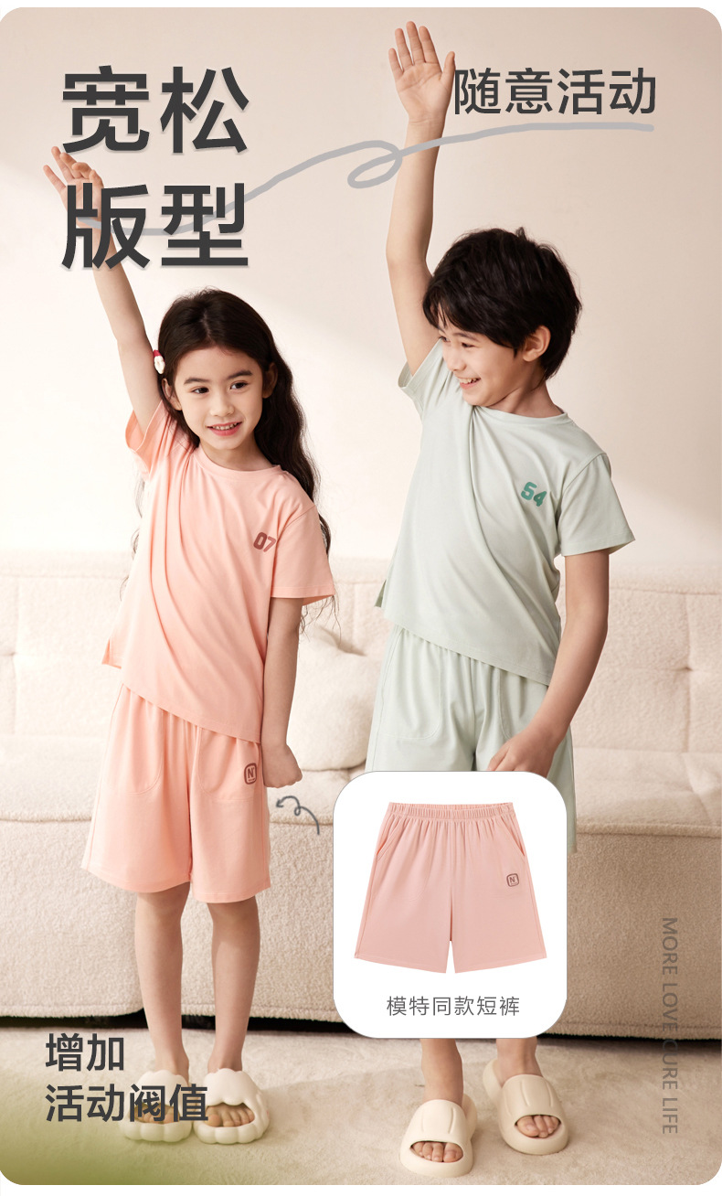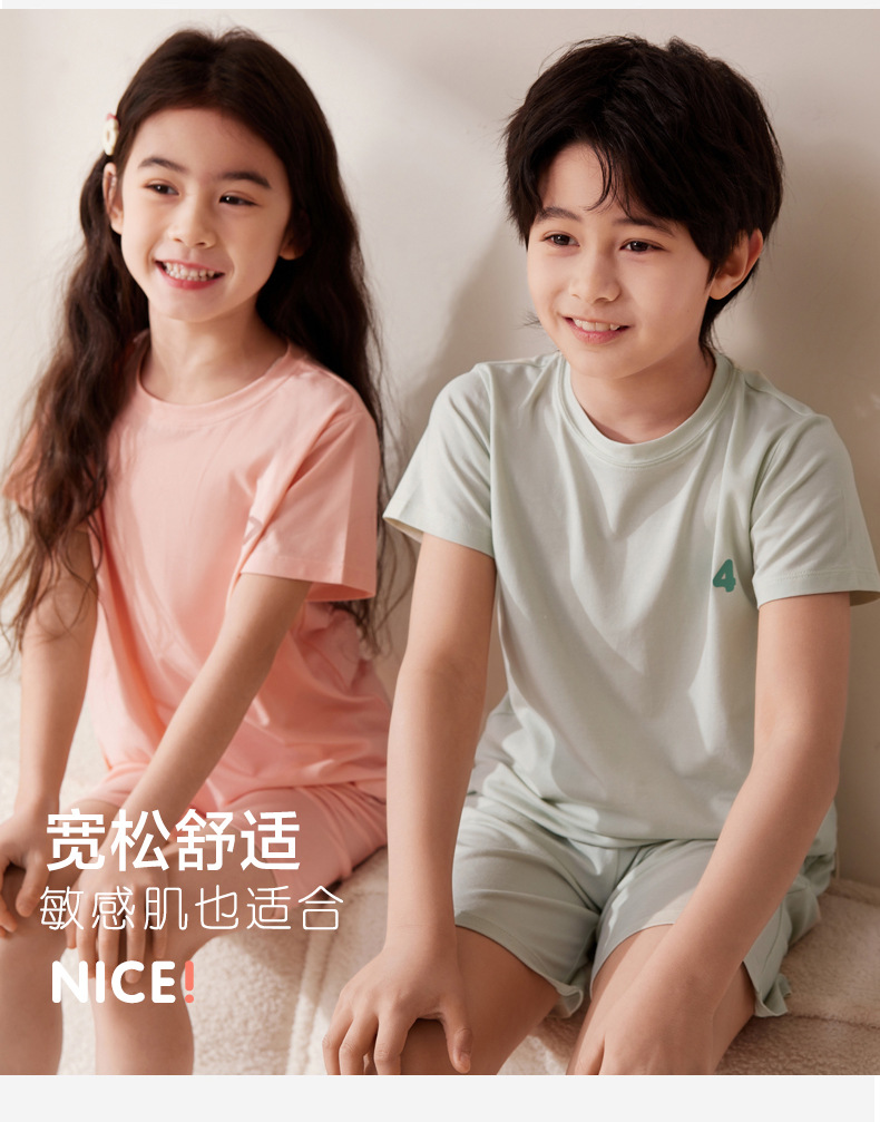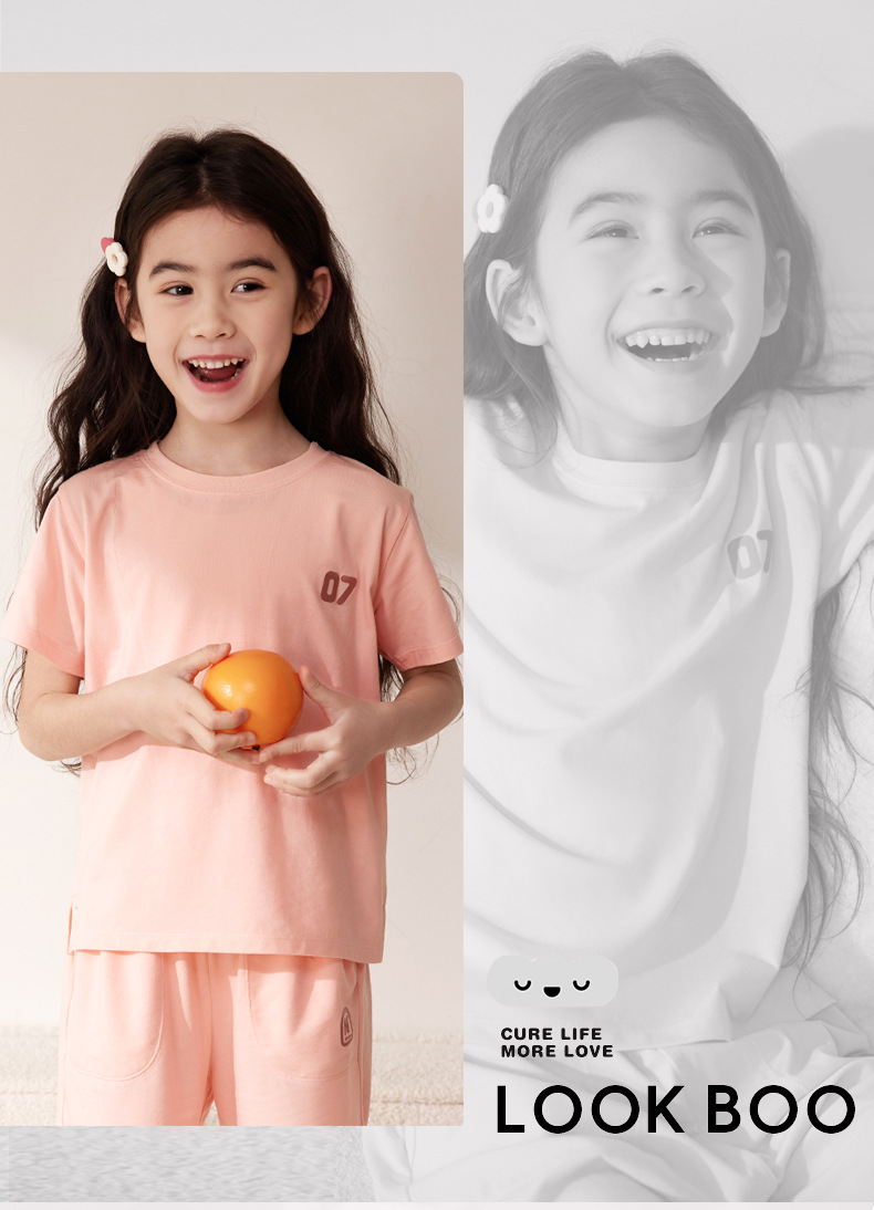 Amber Tong 아동용 티셔츠 반팔 클래스 A 여름 얇은 텐셀 리오셀 탑 소년 소녀 라운드 넥 홈 의류스토어 가기