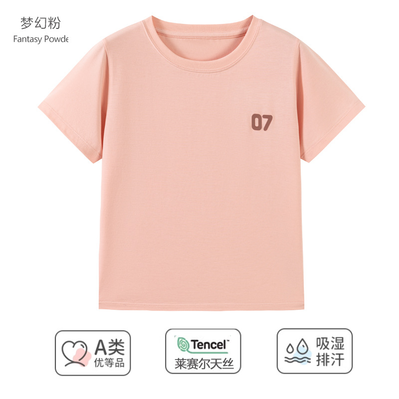Amber Tong 아동용 티셔츠 반팔 클래스 A 여름 얇은 텐셀 리오셀 탑 소년 소녀 라운드 넥 홈 의류