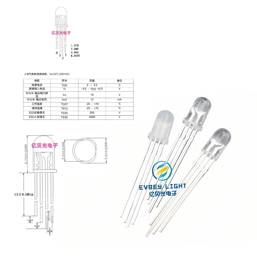 PL9823 IC 내장 F5 mm 풀 컬러 led 램프 비드 포인트 광원 모듈 노출 램프 5V