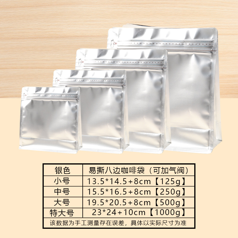 커피 봉지, 8면 밀봉 자립 봉지, 식품 포장 봉지, 맞춤형 공기 밸브 커피 콩 봉지, 차 지퍼백, 커피 봉지