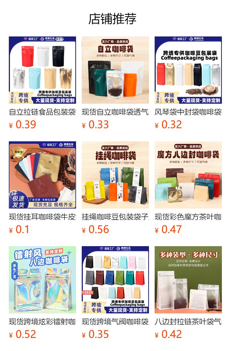커피 봉지, 8면 밀봉 자립 봉지, 식품 포장 봉지, 맞춤형 공기 밸브 커피 콩 봉지, 차 지퍼백, 커피 봉지스토어 가기