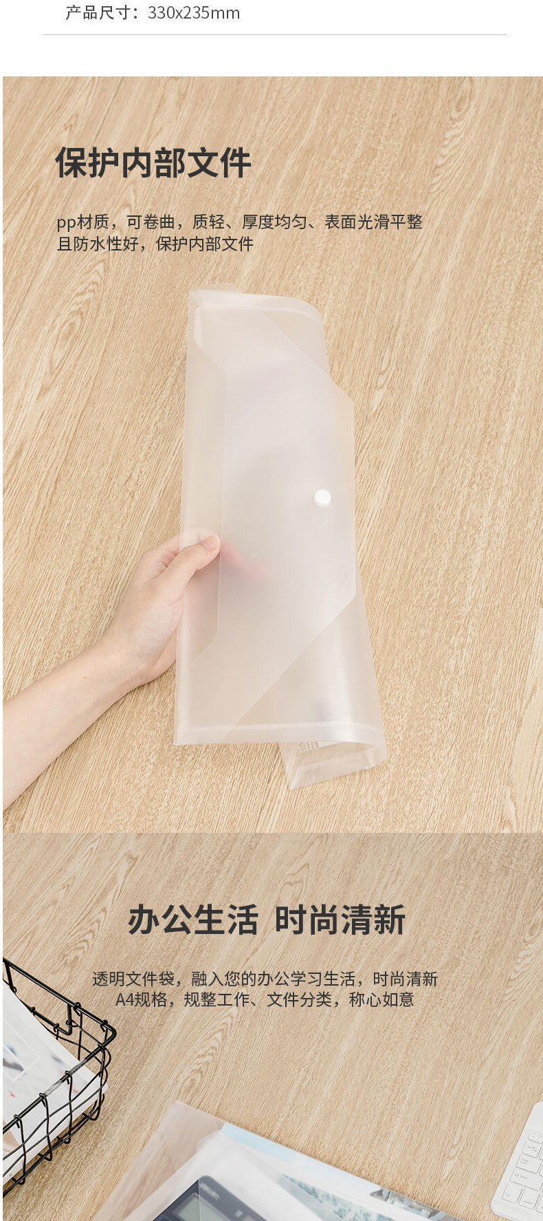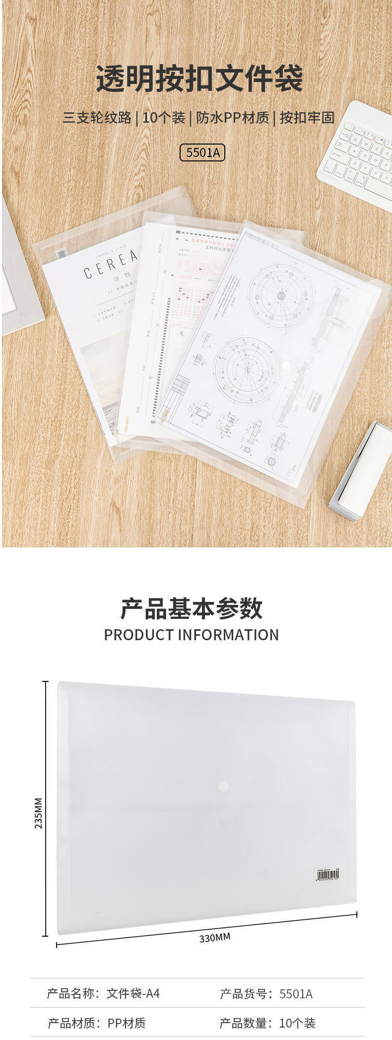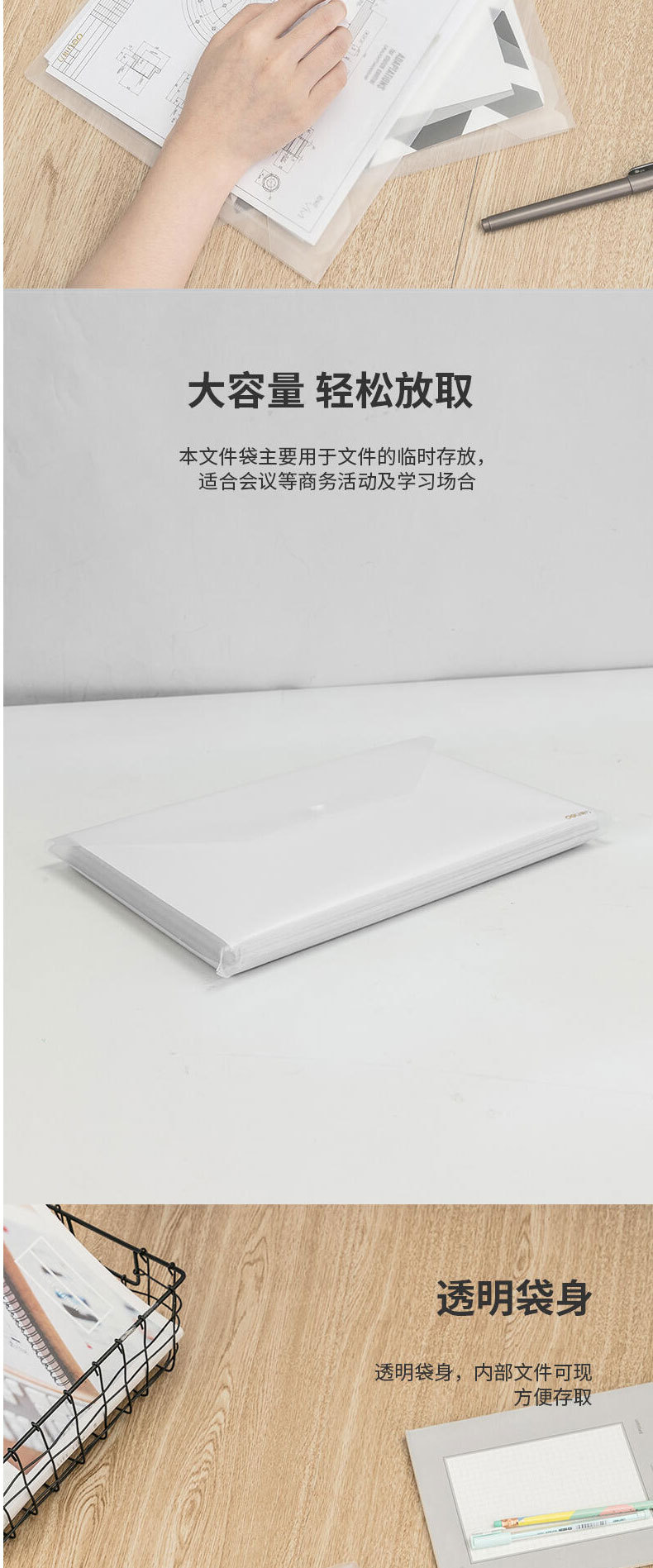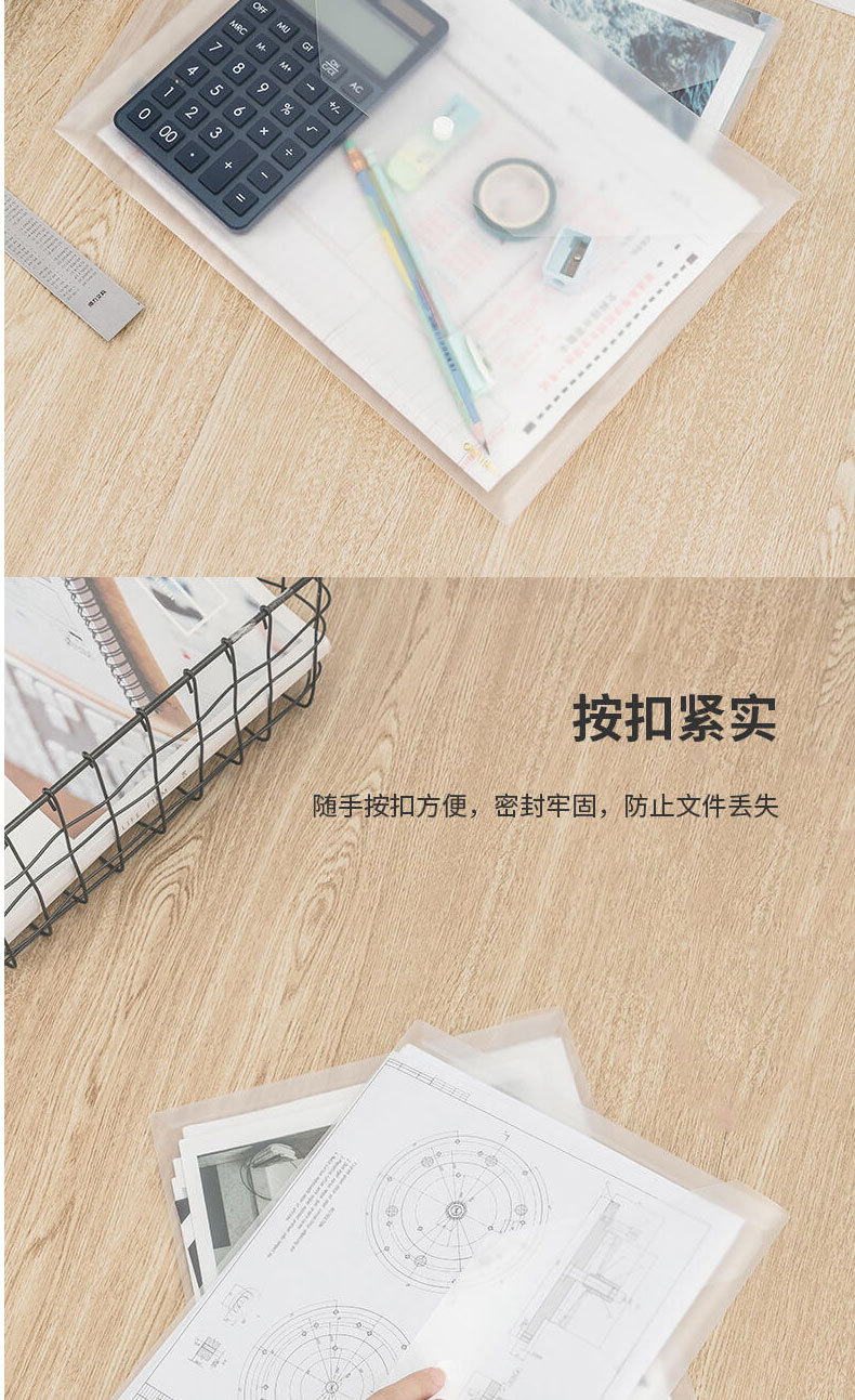 델리 5501A 투명 파일 가방 A4 두꺼운 스냅 파일 가방 방수 파일 가방 서류 가방 금융 청구서