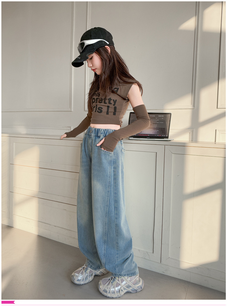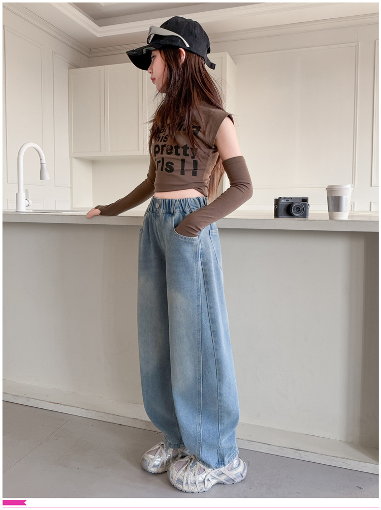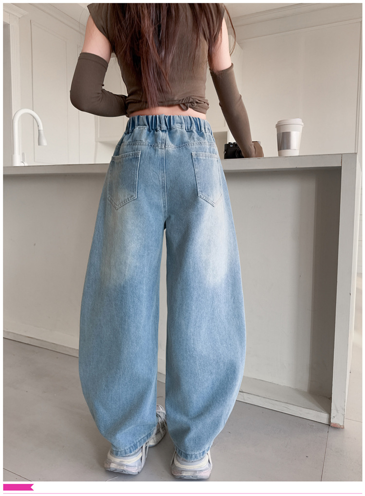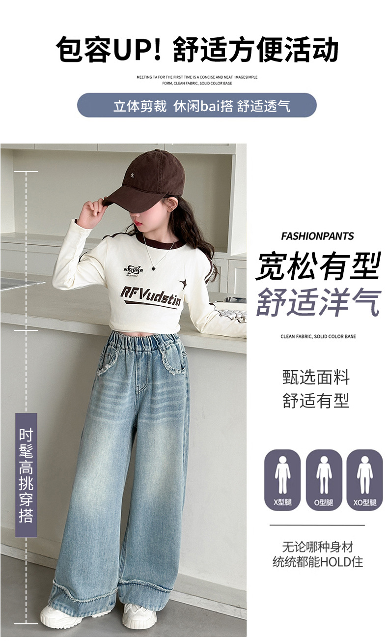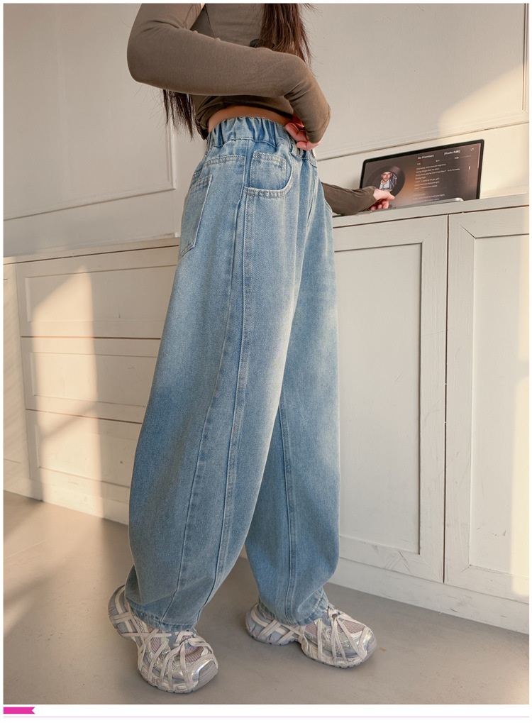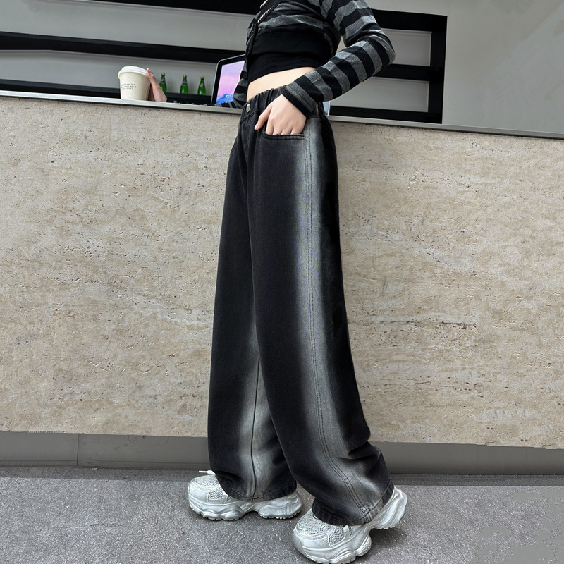 어린이 착용 소녀 스트레이트 다리 바지 어린이 넓은 다리 바지 2025 봄과 가을 새 스타일 데님 바지 중 · 대형 어린이와 소녀 용 바지