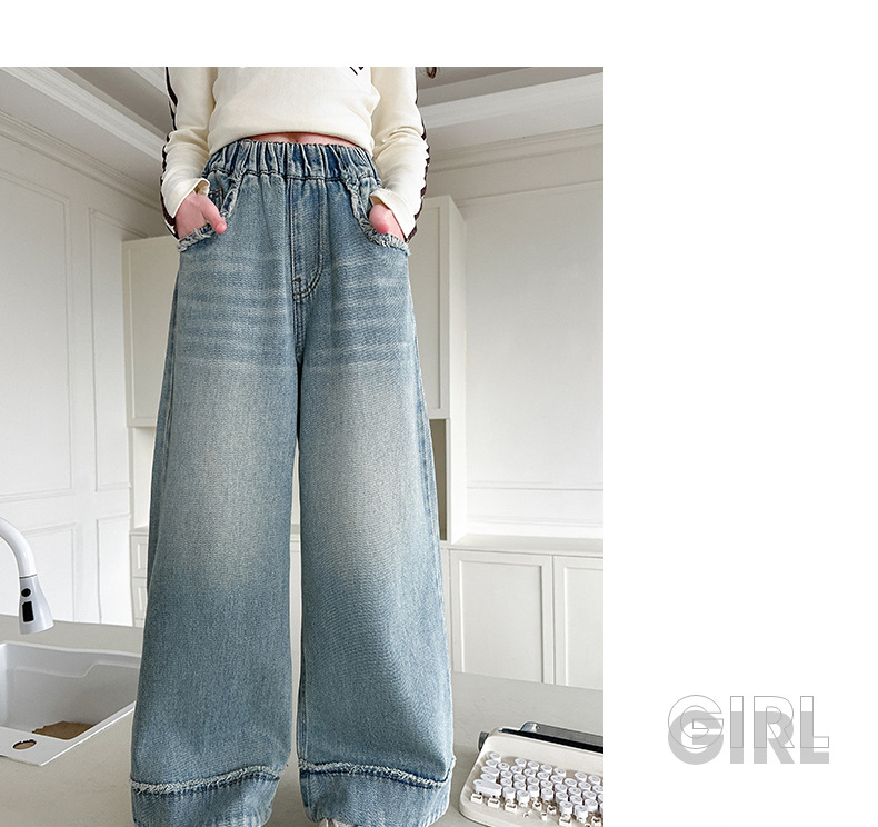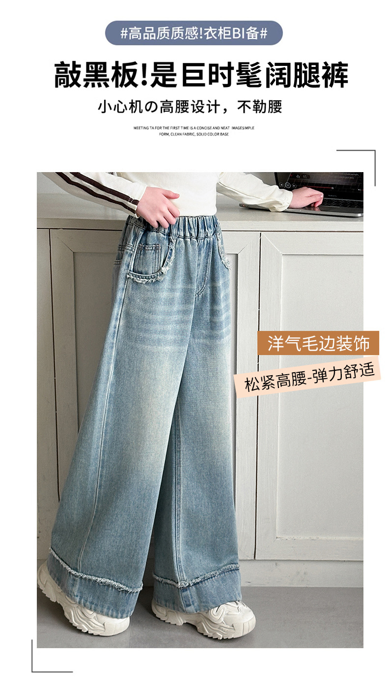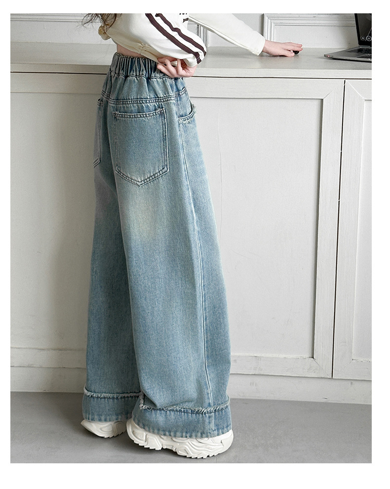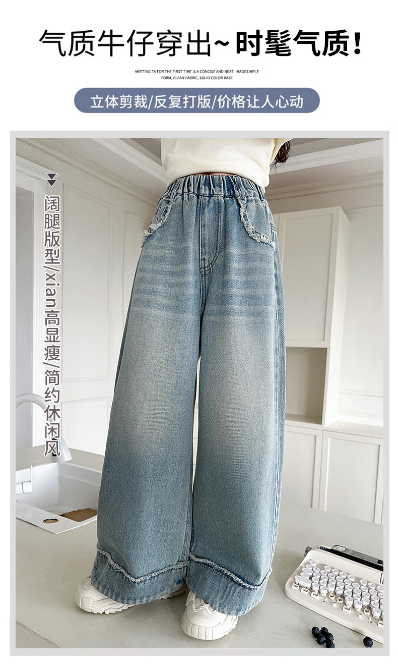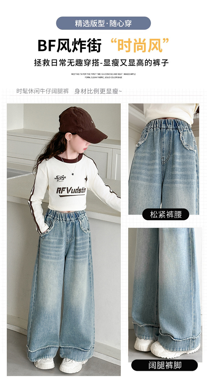어린이 착용 소녀 스트레이트 다리 바지 어린이 넓은 다리 바지 2025 봄과 가을 새 스타일 데님 바지 중 · 대형 어린이와 소녀 용 바지스토어 가기