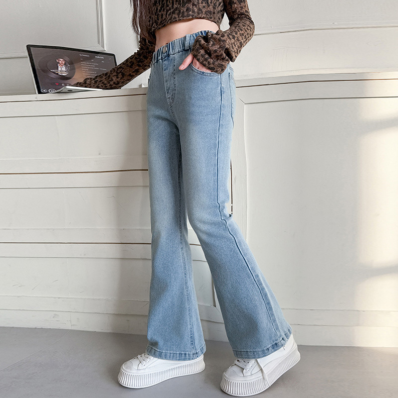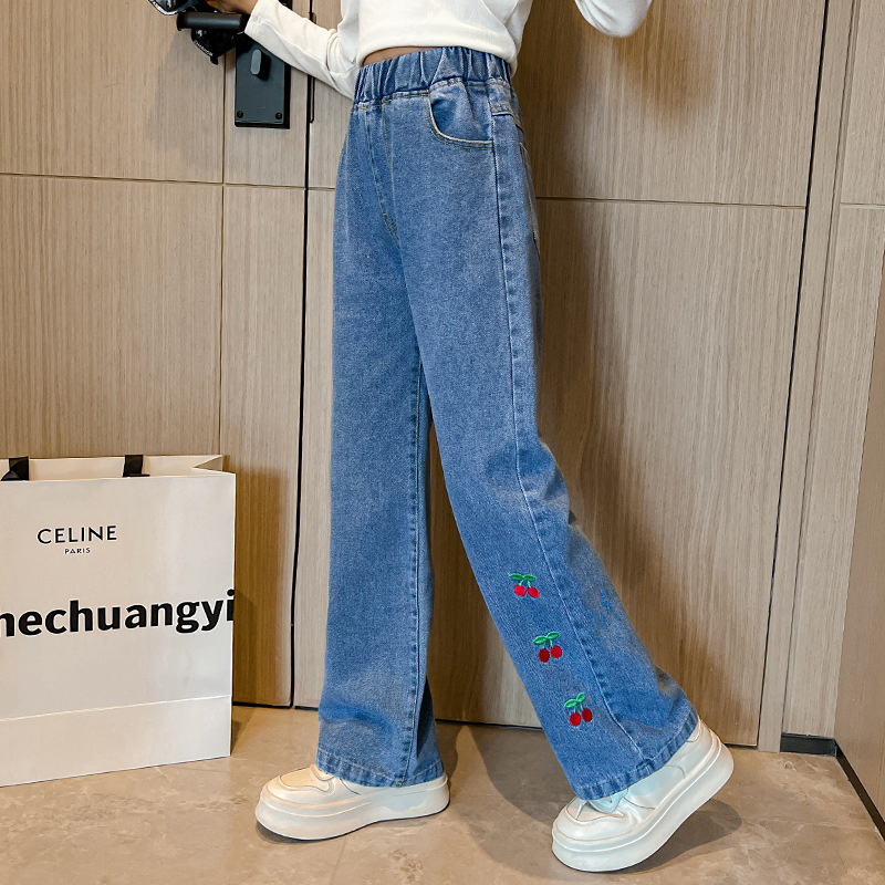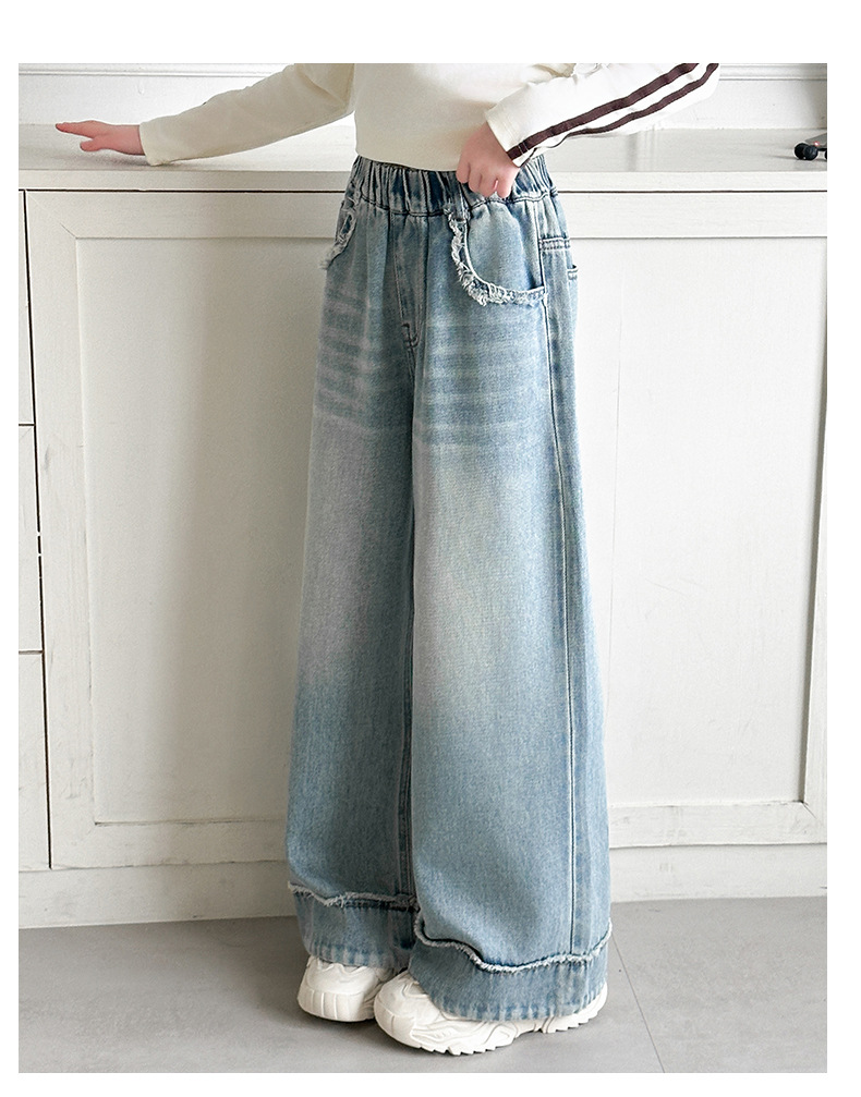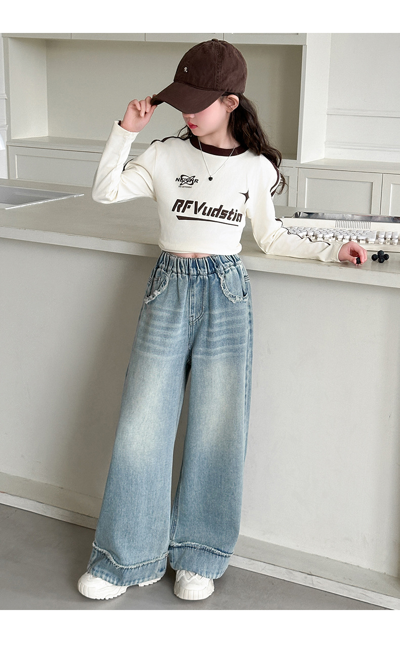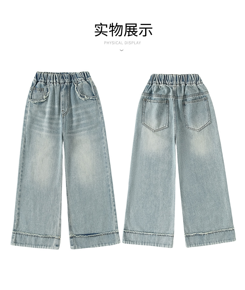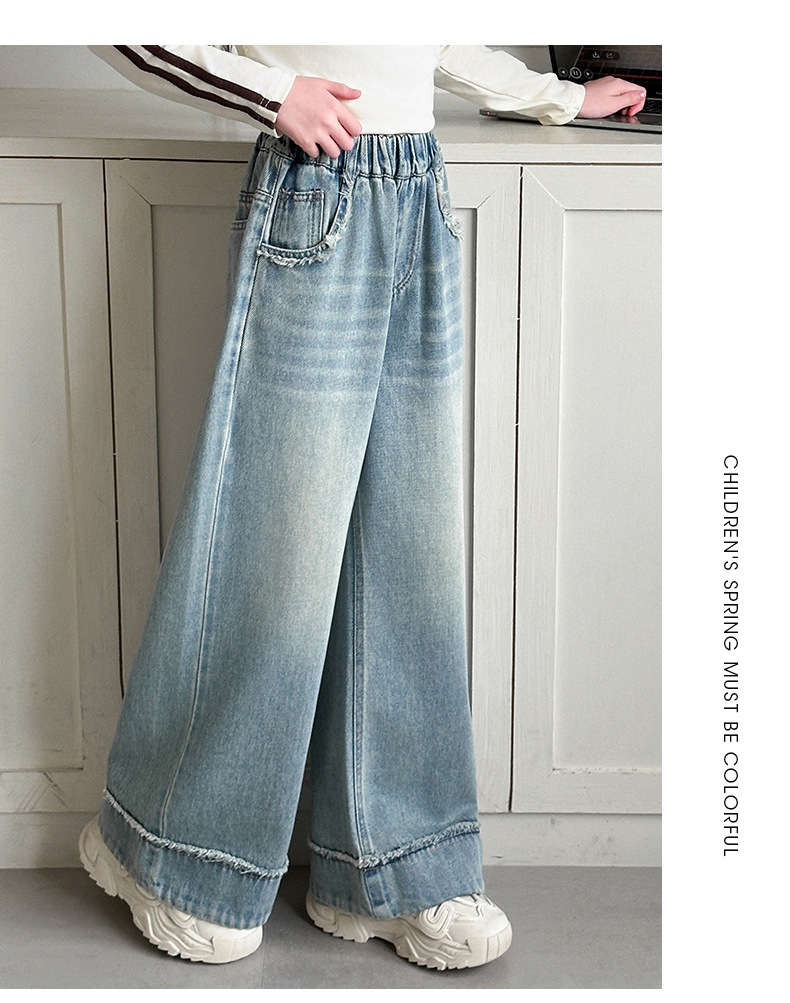 어린이 착용 소녀 스트레이트 다리 바지 어린이 넓은 다리 바지 2025 봄과 가을 새 스타일 데님 바지 중 · 대형 어린이와 소녀 용 바지스토어 가기