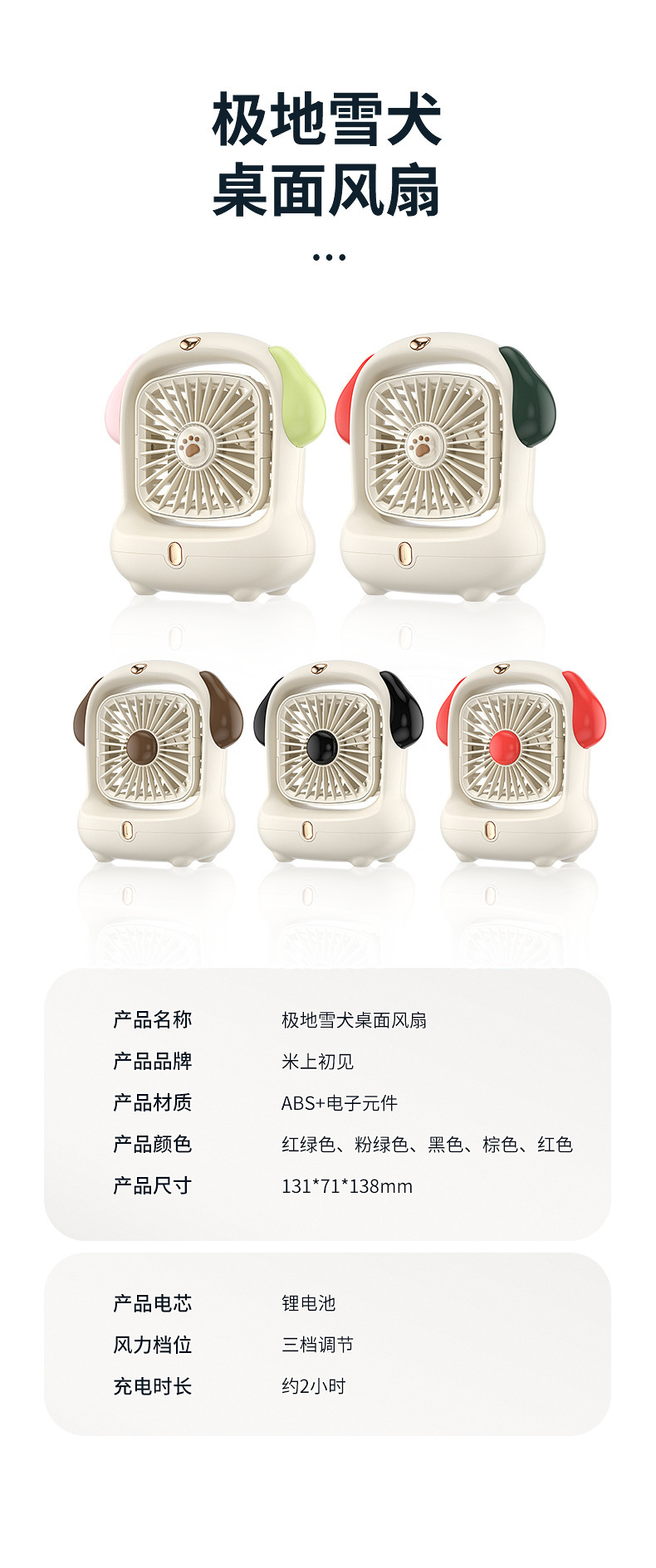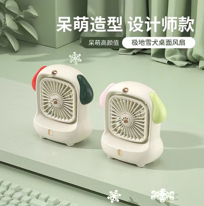 24 년 국경 새로운 극지 눈 개 데스크탑 팬 USB 충전 미니 학생 휴대용 데스크탑 팬