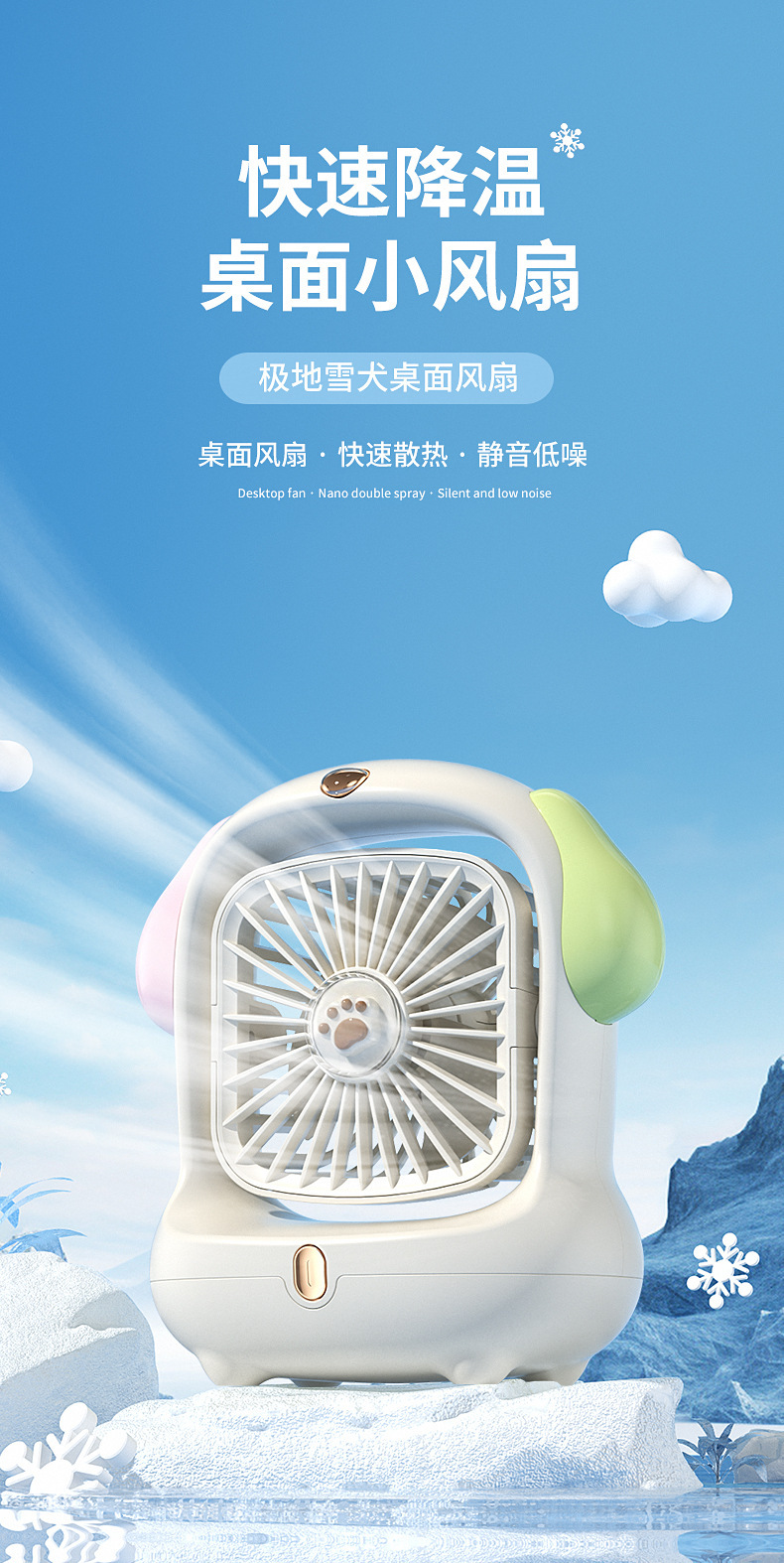 • DM-65B Polar Snow Dog 데스크탑 팬(인형 포함)