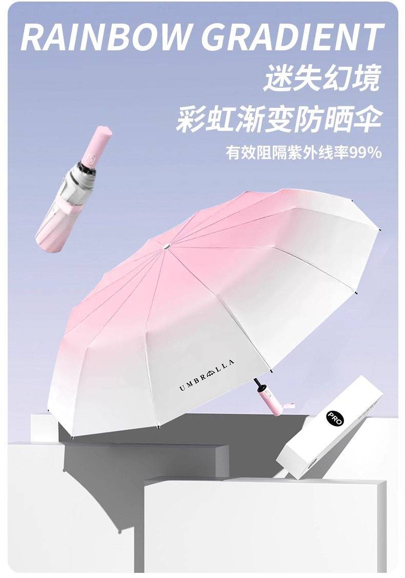 고급 자동 그라디언트 시리즈 이중 사용 접이식 우산 태양 우산 야외 사용 가능 태양 우산 태양 우산스토어 가기