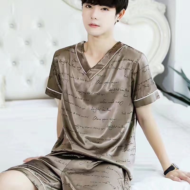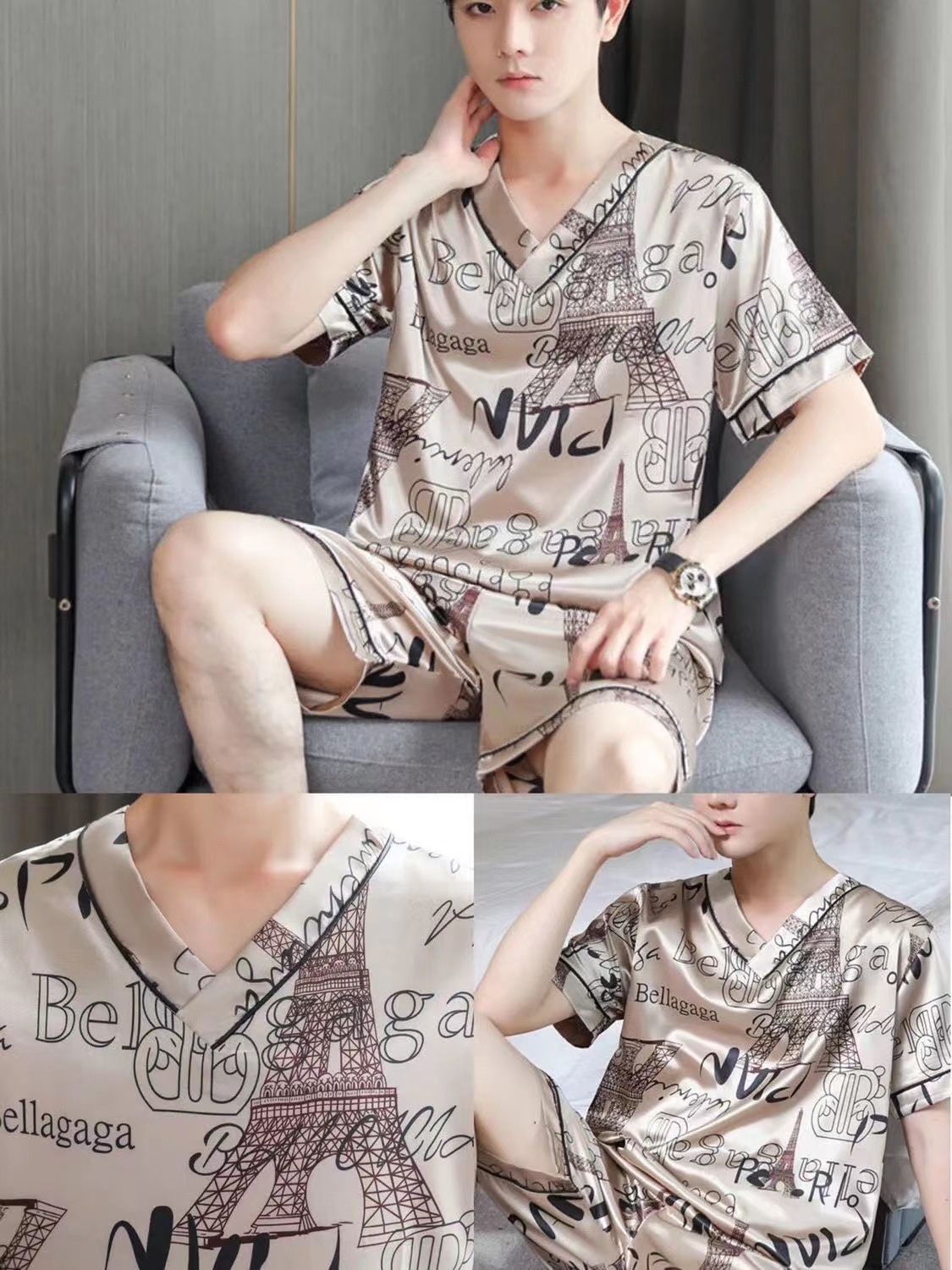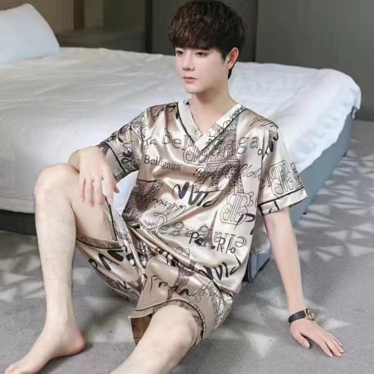 잠옷 남자의 여름 얼음 실크 얇은 짧은 소매 투피스 세트 느슨한 플러스 사이즈 남자의 집 옷의 한국어 버전스토어 가기