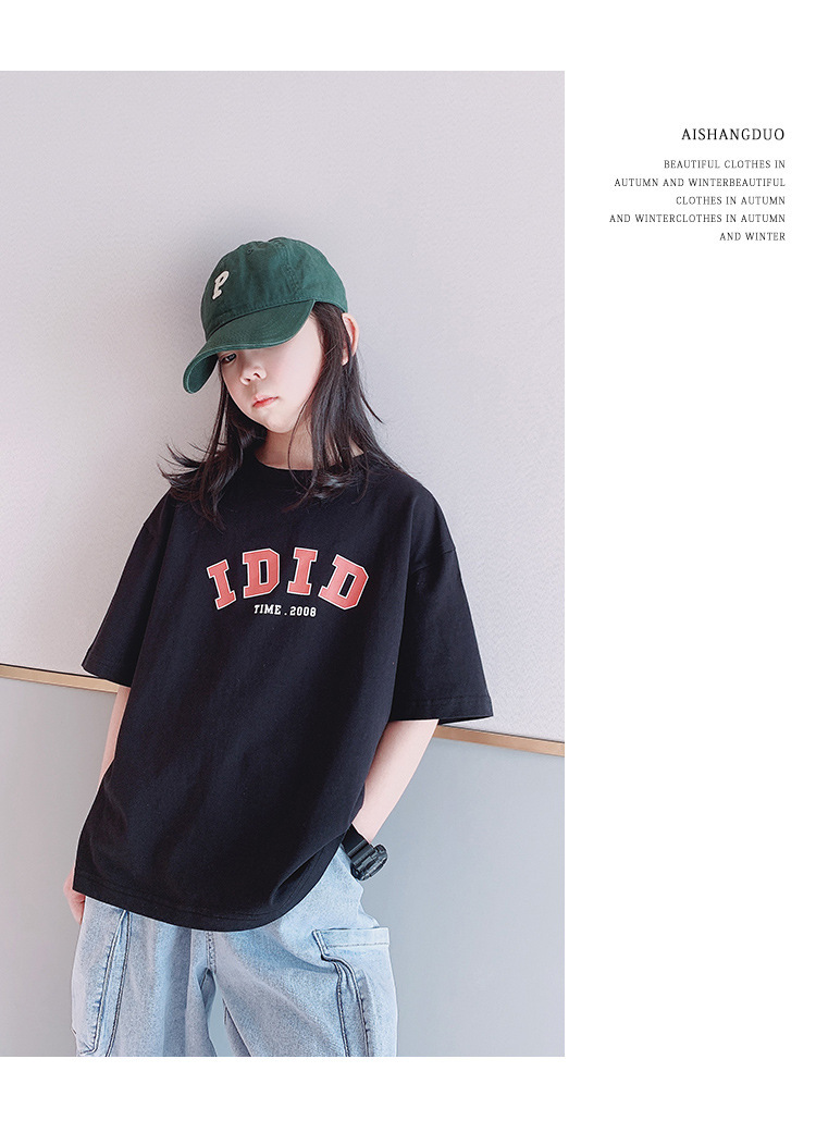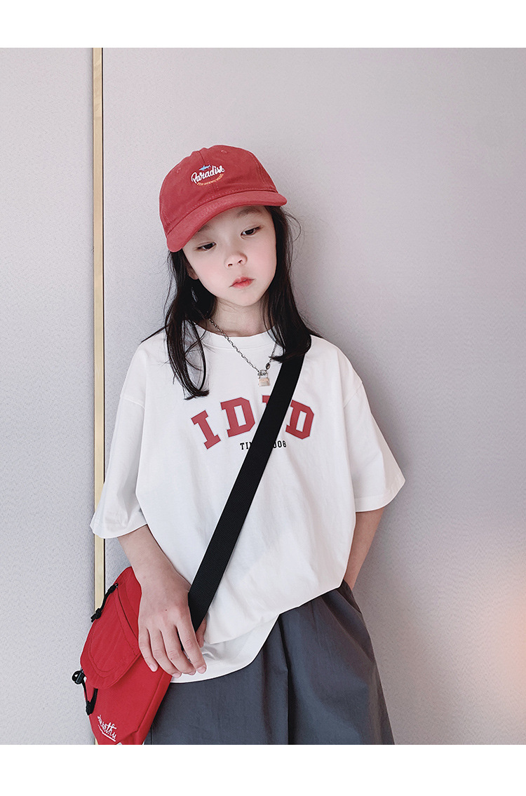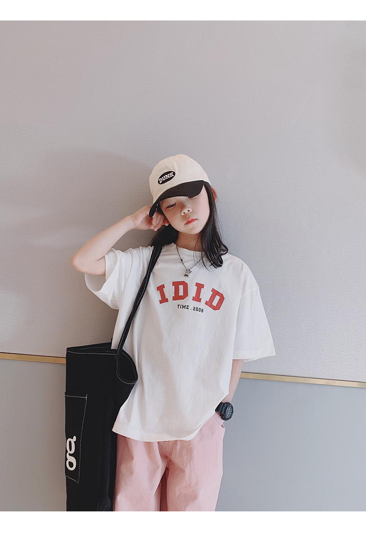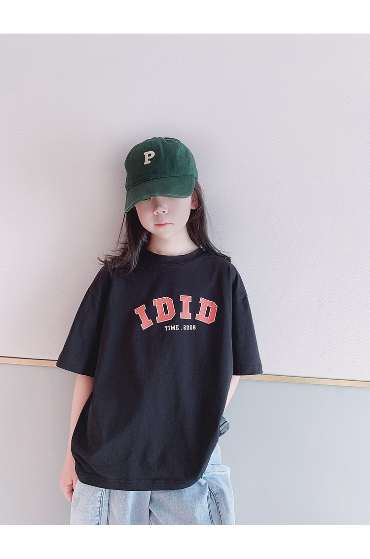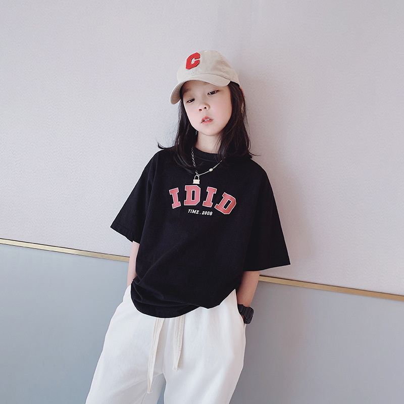 어린이 의류 소녀 여름 반팔 티셔츠 새로운 느슨한 만화 어린이 바닥 셔츠 소녀의 세련된 옷 중대형 아동용 탑스토어 가기