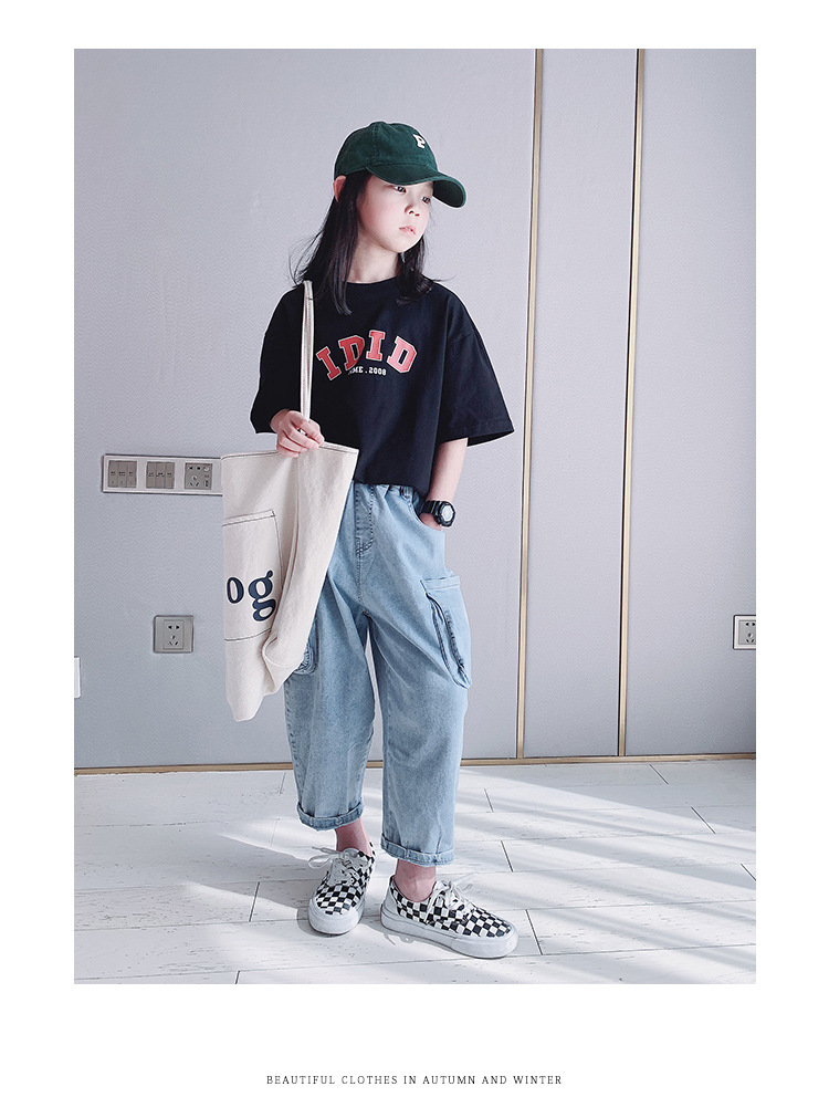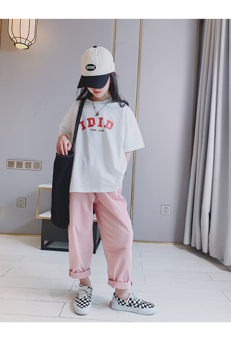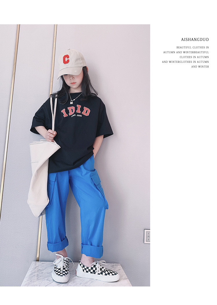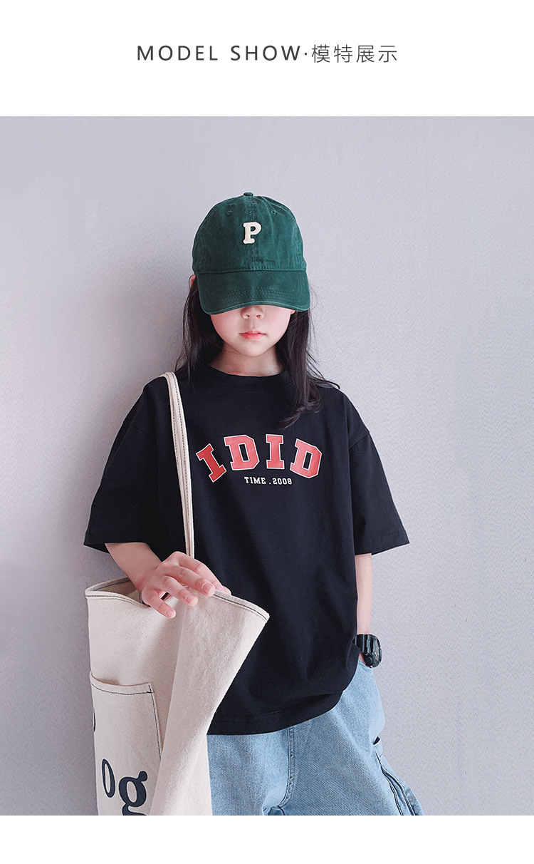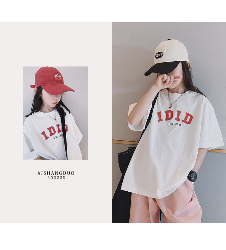 어린이 의류 소녀 여름 반팔 티셔츠 새로운 느슨한 만화 어린이 바닥 셔츠 소녀의 세련된 옷 중대형 아동용 탑스토어 가기