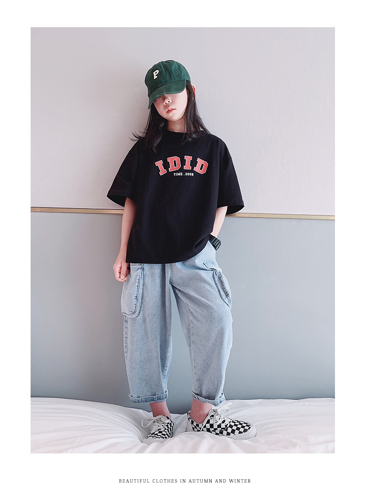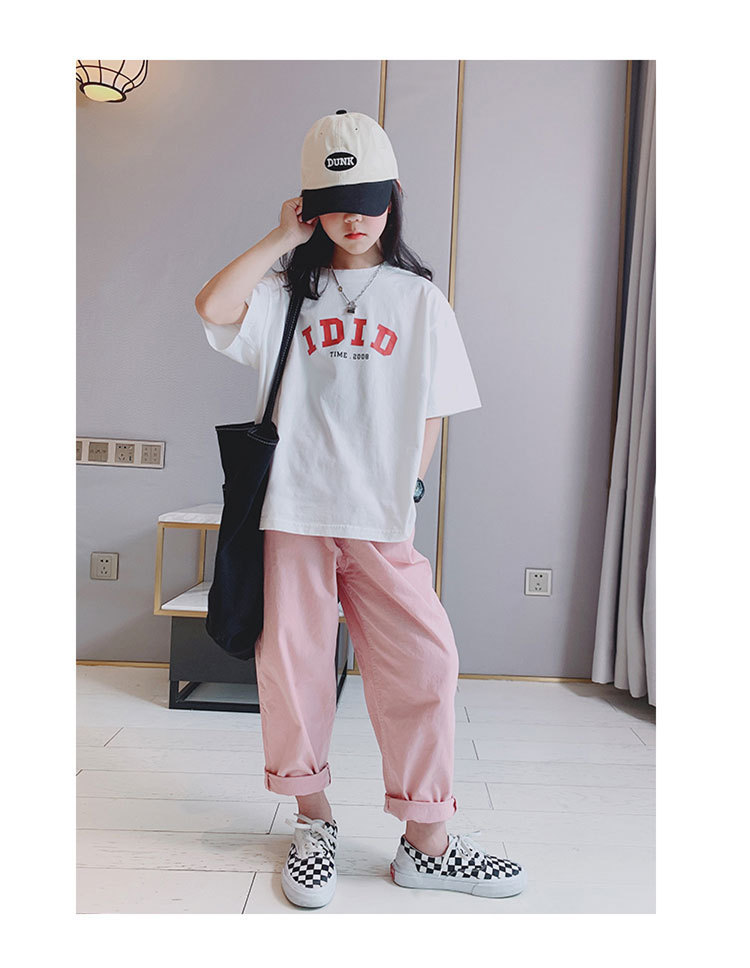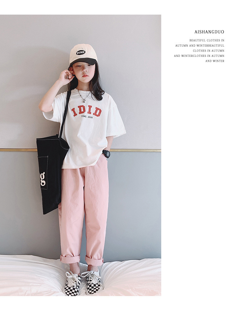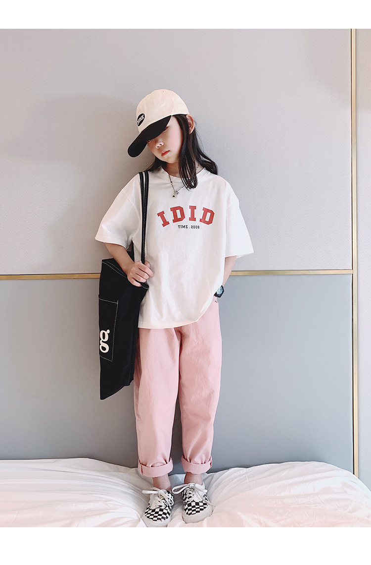 어린이 의류 소녀 여름 반팔 티셔츠 새로운 느슨한 만화 어린이 바닥 셔츠 소녀의 세련된 옷 중대형 아동용 탑