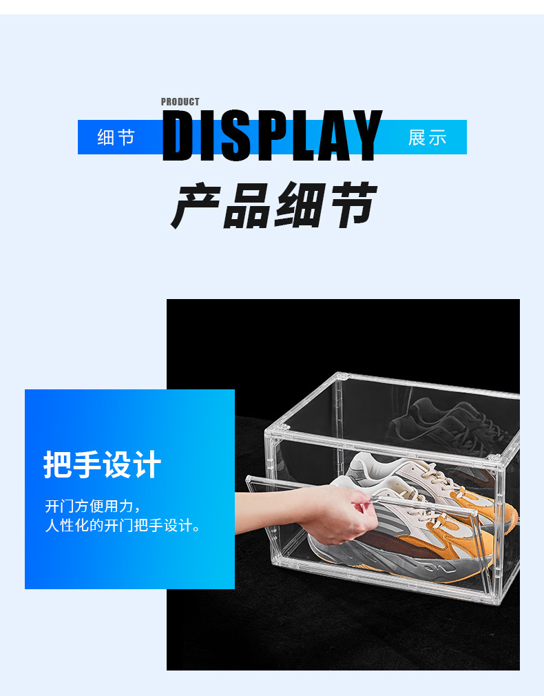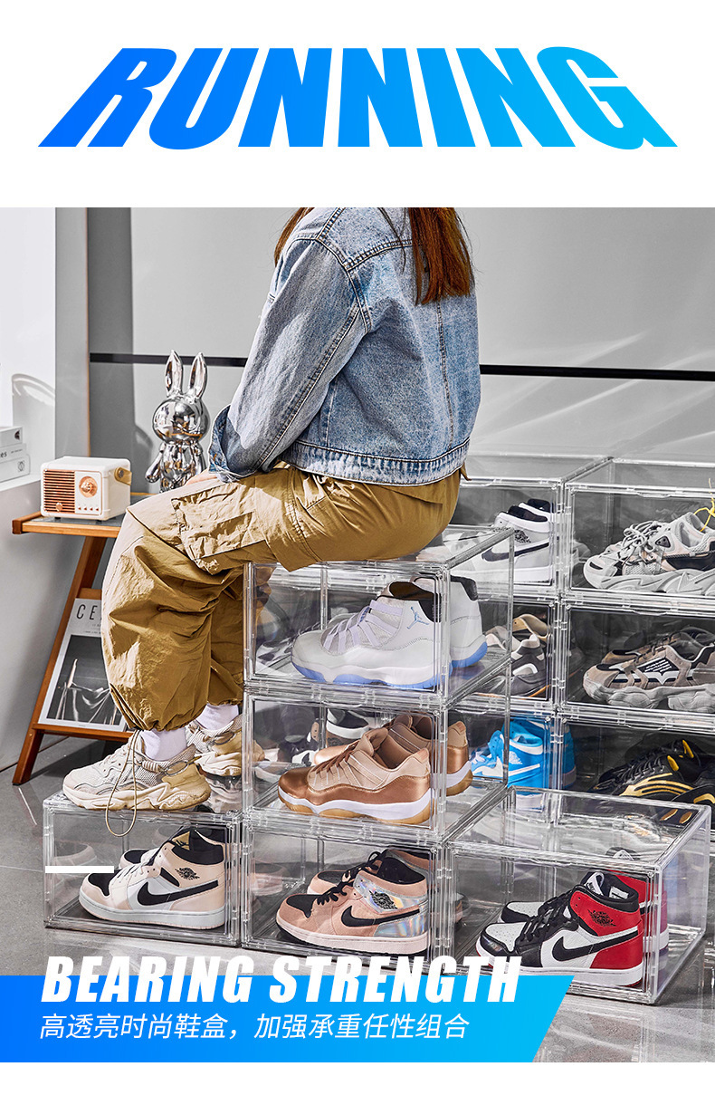 신발 상자 하드 상자 완전히 투명한 자기 측면 오픈 스토리지 아크릴 aj 가방 손으로 만든 보관 상자가 두껍게 큰 신발 캐비닛