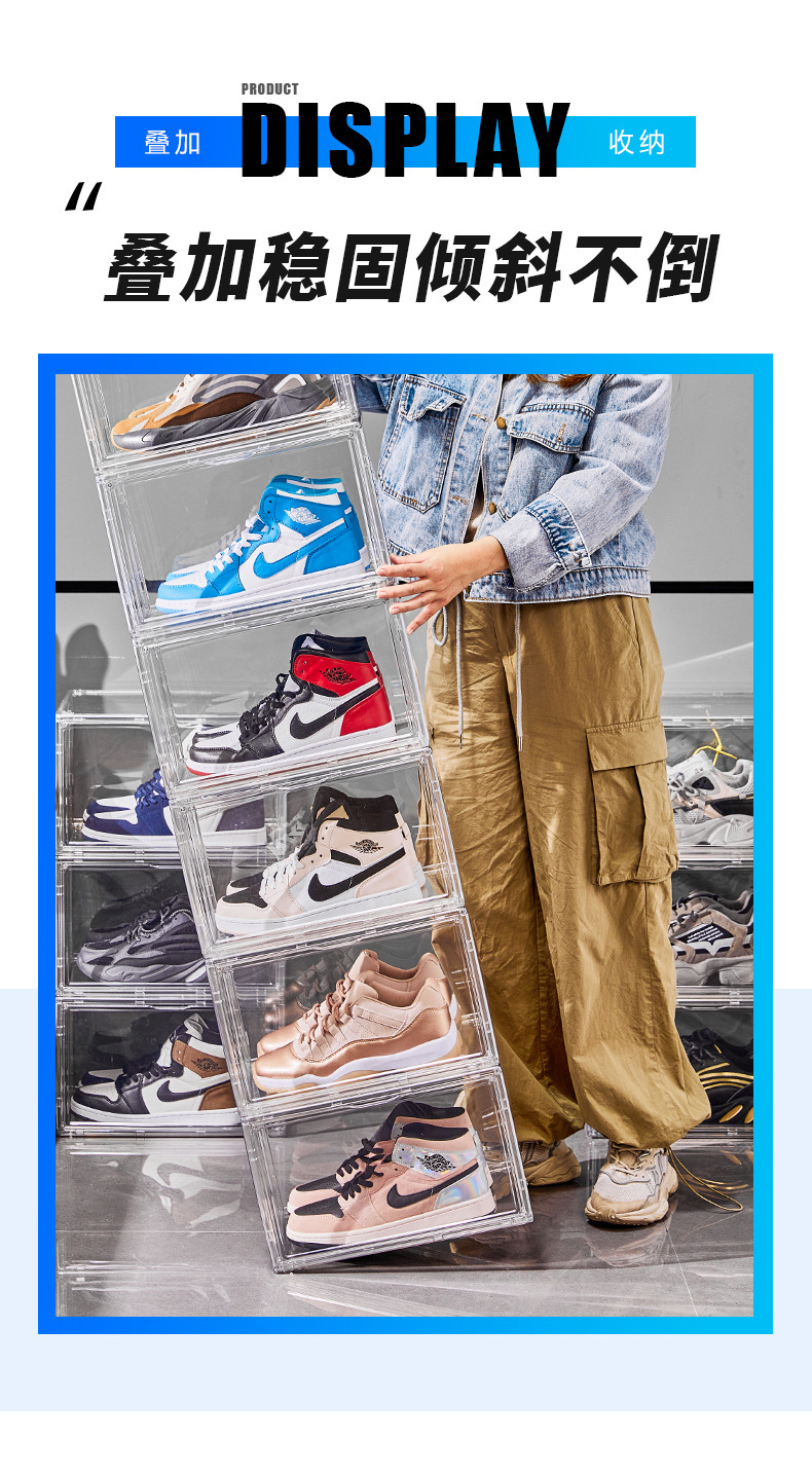 신발 상자 하드 상자 완전히 투명한 자기 측면 오픈 스토리지 아크릴 aj 가방 손으로 만든 보관 상자가 두껍게 큰 신발 캐비닛스토어 가기