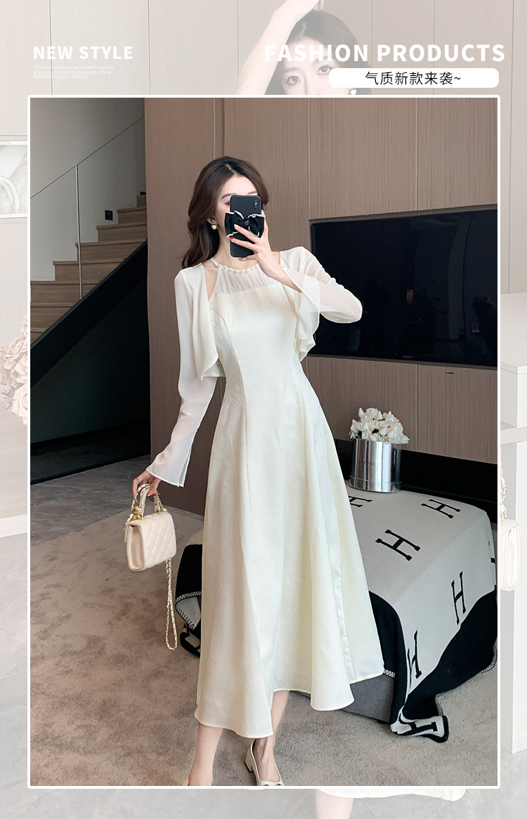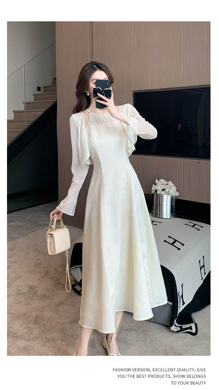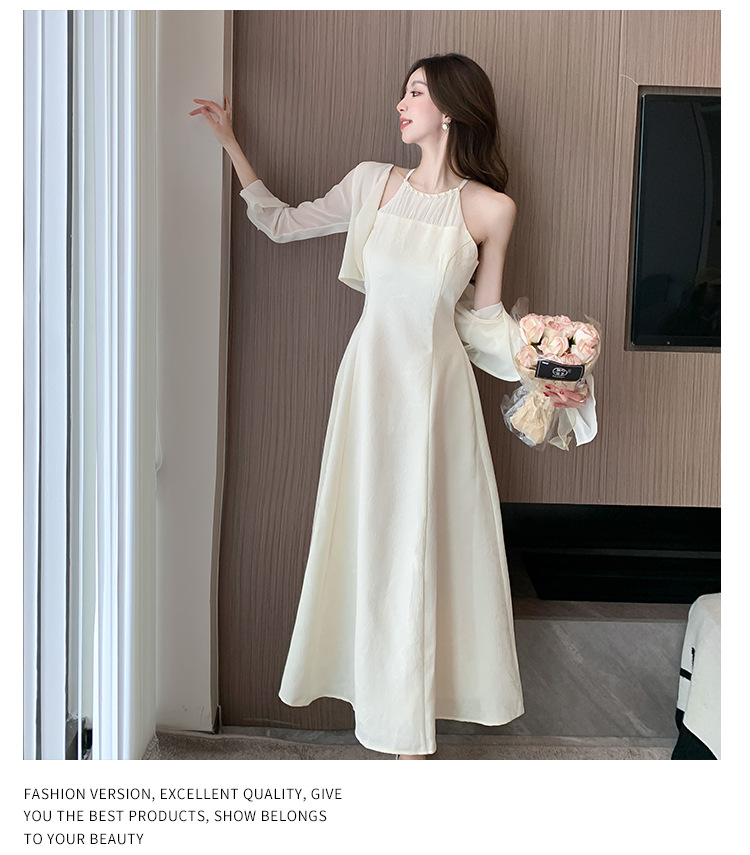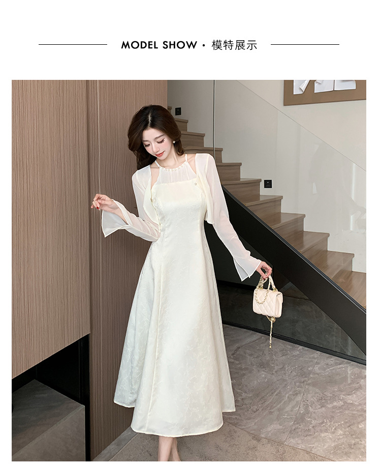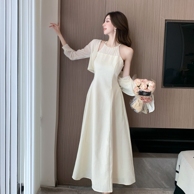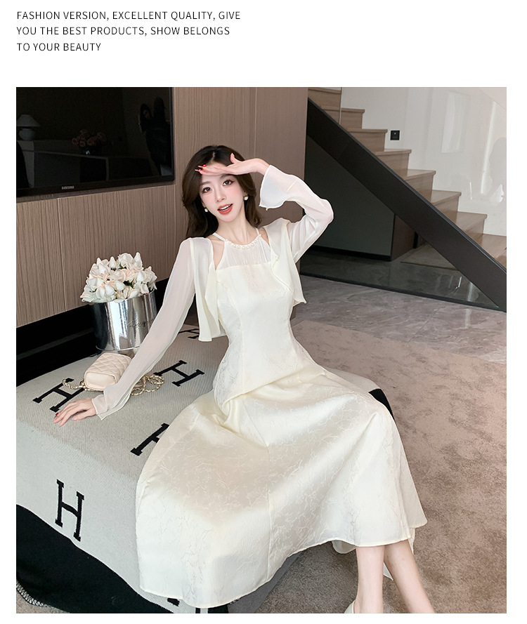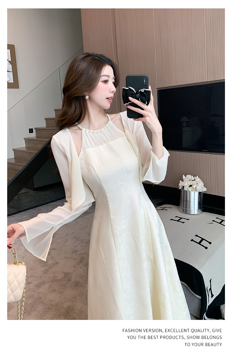 진짜 샷 슈퍼 요정 작은 여자 기질 달콤한 카디건 슬림 핏 슬림 목 원피스 2024 여름 투피스 세트스토어 가기