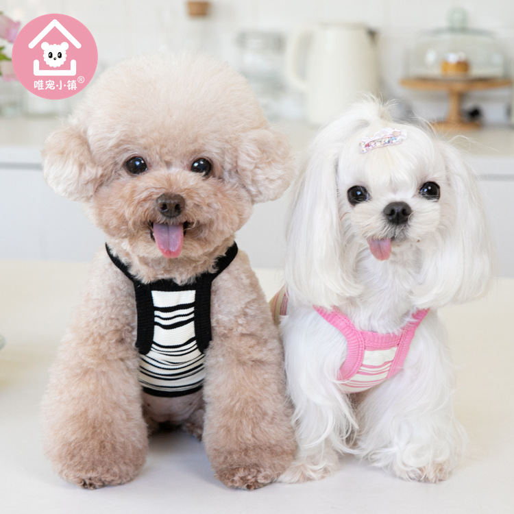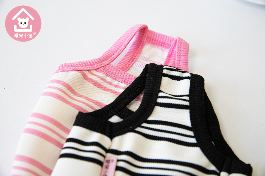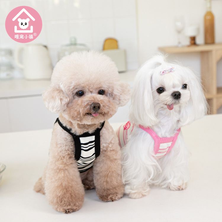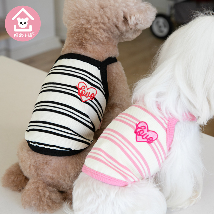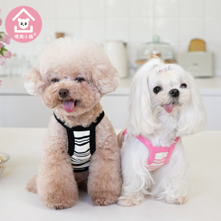 Weipet 타운 짧은 줄무늬 자수 스트랩 애완 동물 고양이 개 Teddy 원피스 일본 및 한국 패션 애완 동물 의류 의류