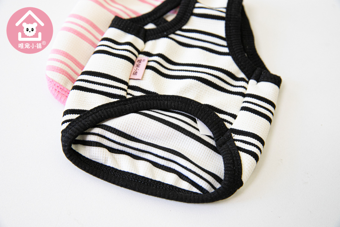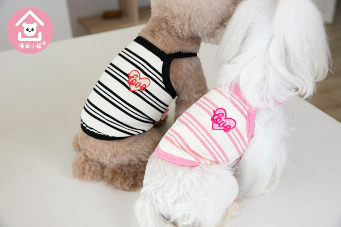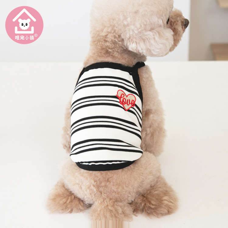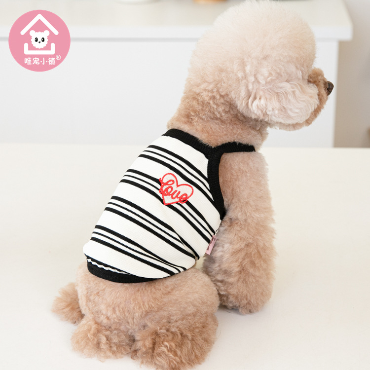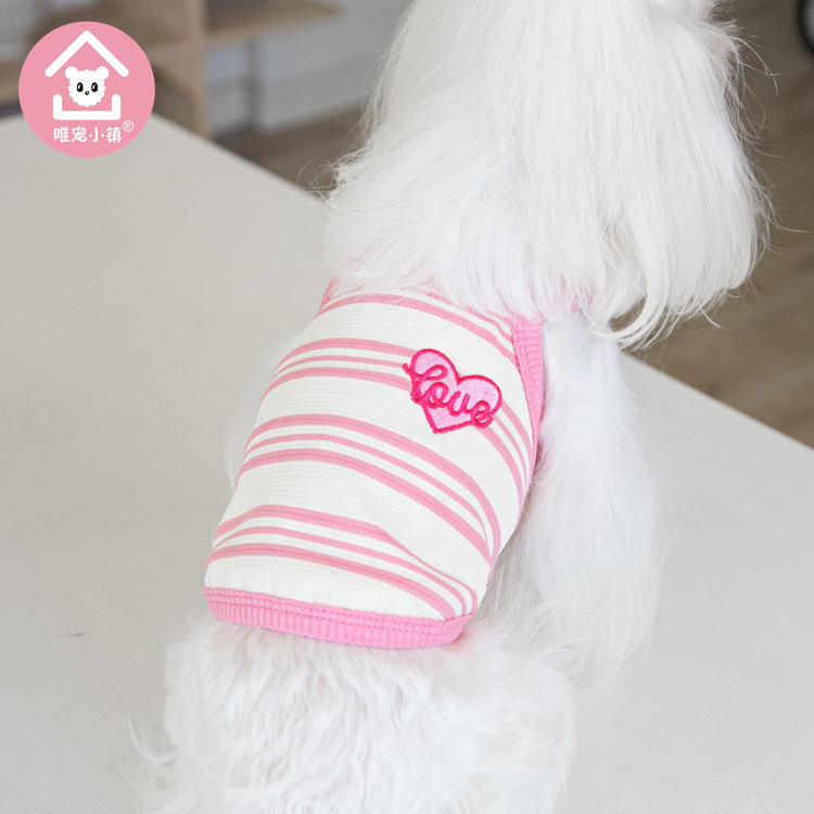 Weipet 타운 짧은 줄무늬 자수 스트랩 애완 동물 고양이 개 Teddy 원피스 일본 및 한국 패션 애완 동물 의류 의류