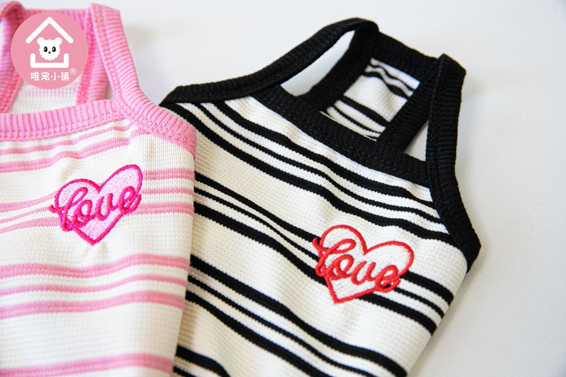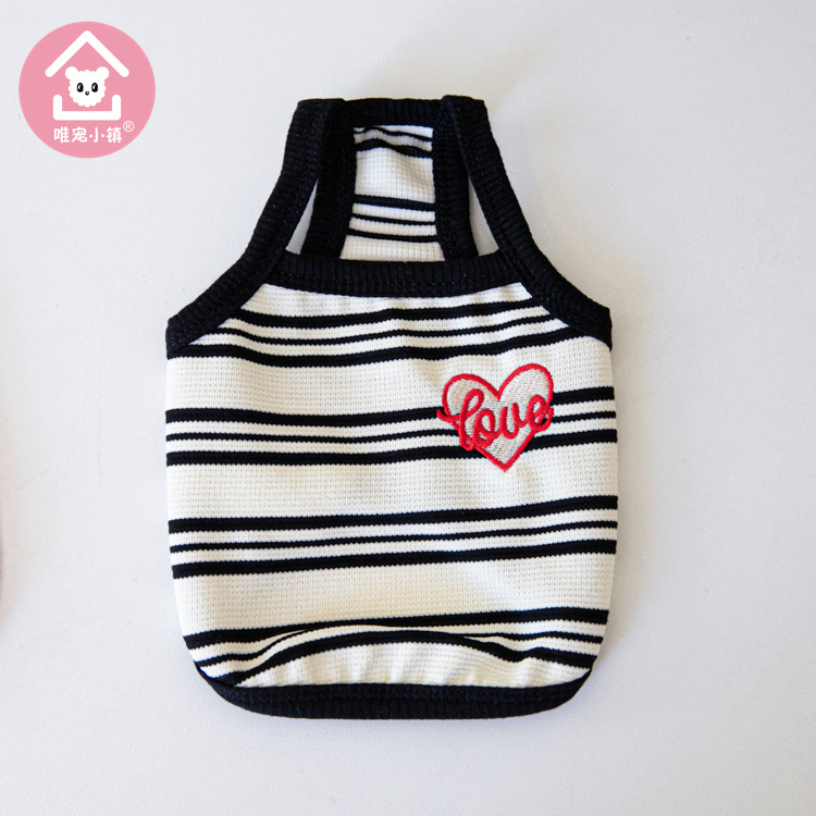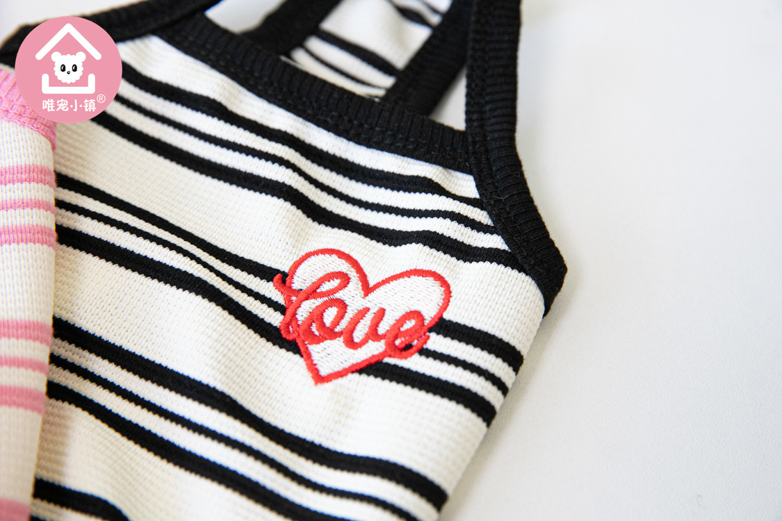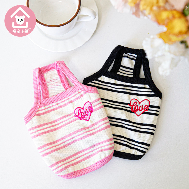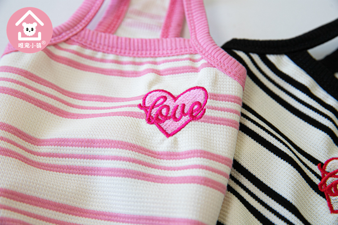 Weipet 타운 짧은 줄무늬 자수 스트랩 애완 동물 고양이 개 Teddy 원피스 일본 및 한국 패션 애완 동물 의류 의류스토어 가기