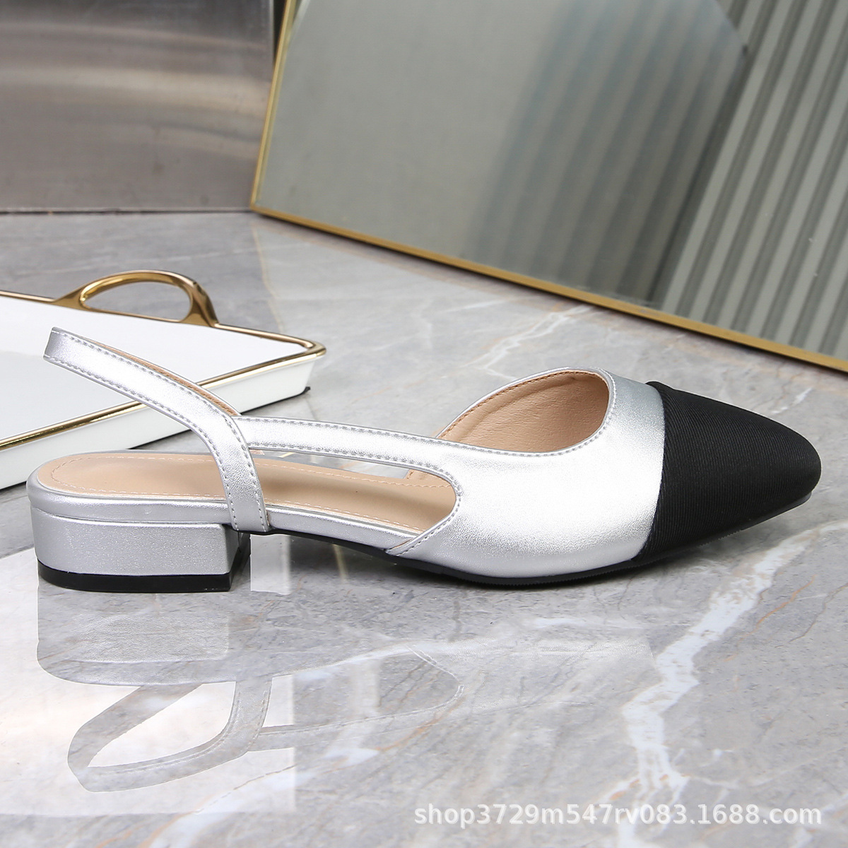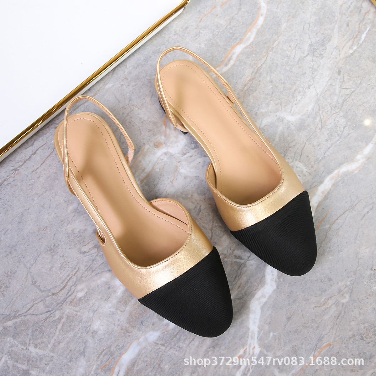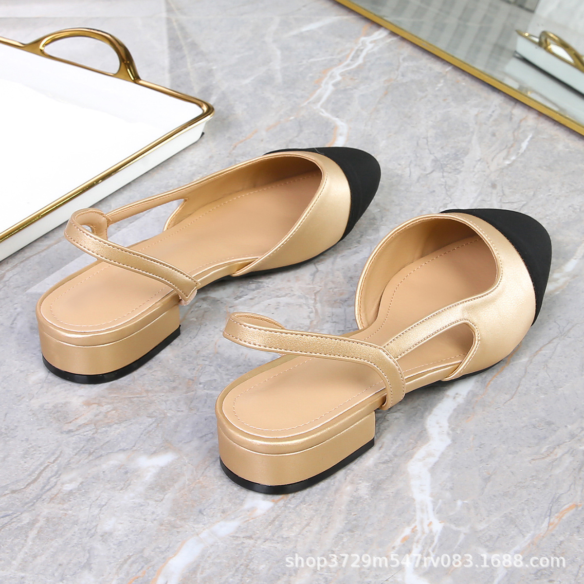 크로스보더 대형 사이즈 여성화, 샤넬 스타일 뒤트임 샌들, 여성 플랫 하이힐, 컬러블록 두꺼운 굽 단화, 명품 동일 스타일