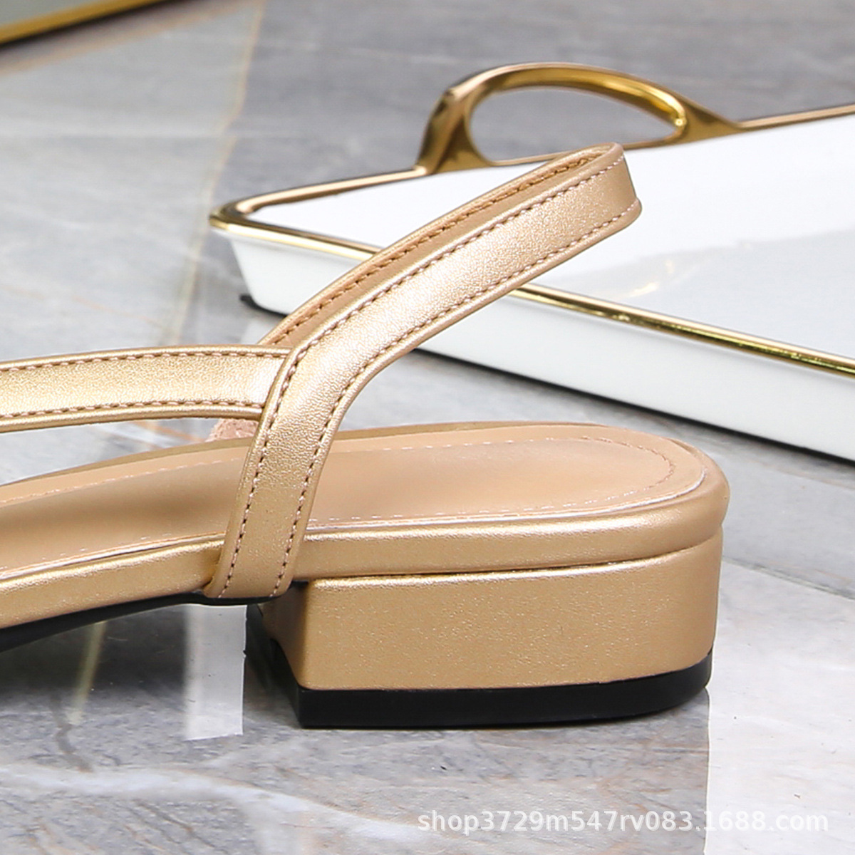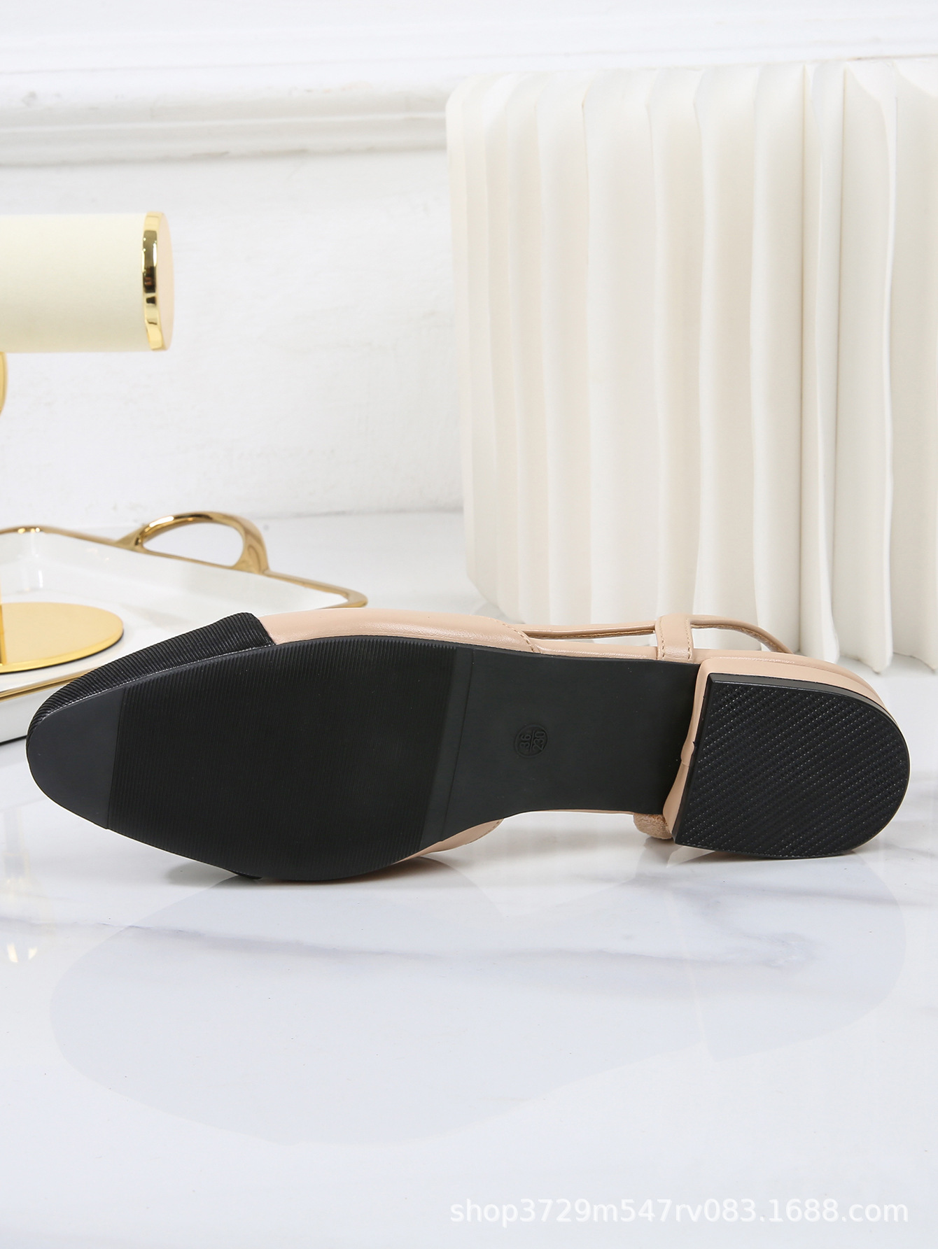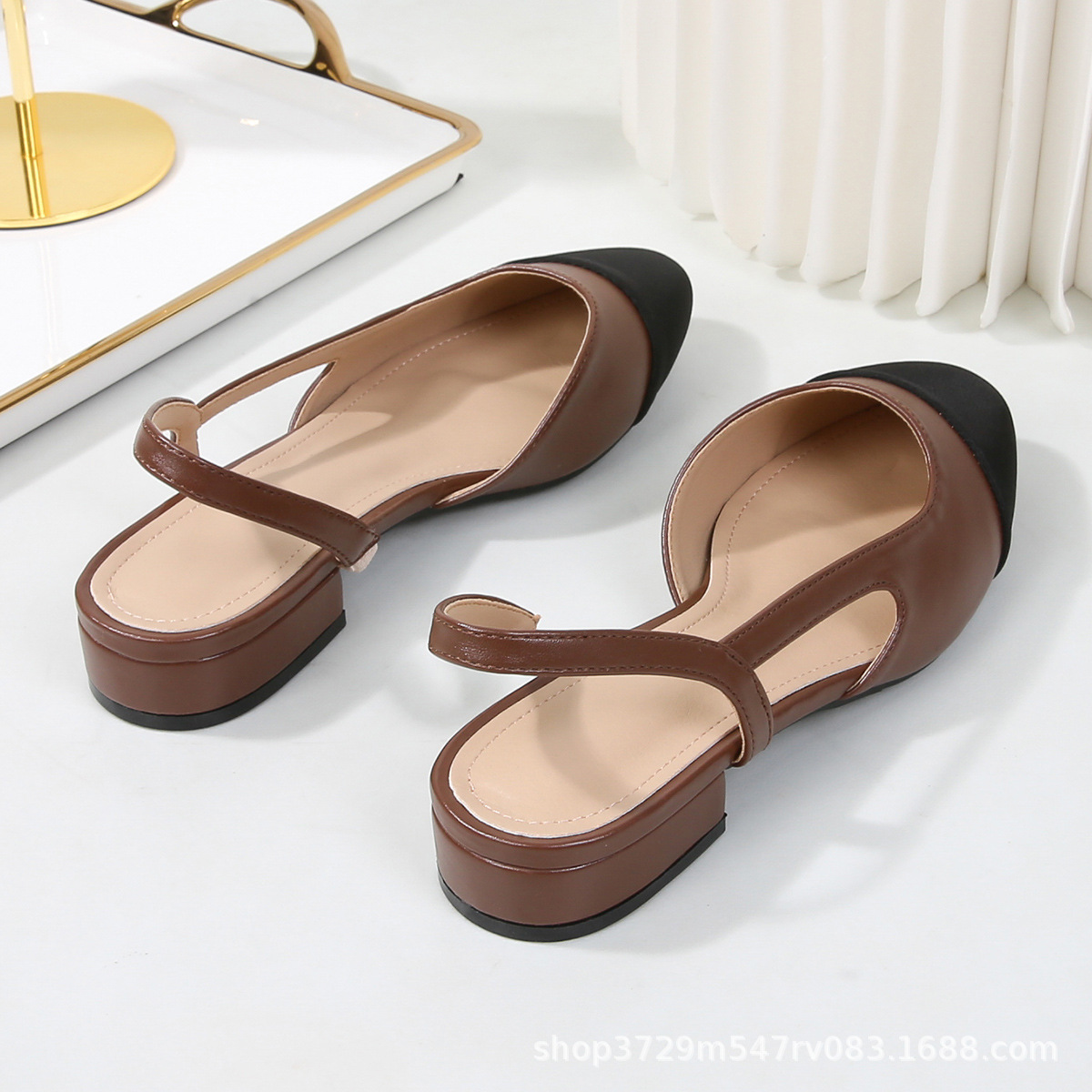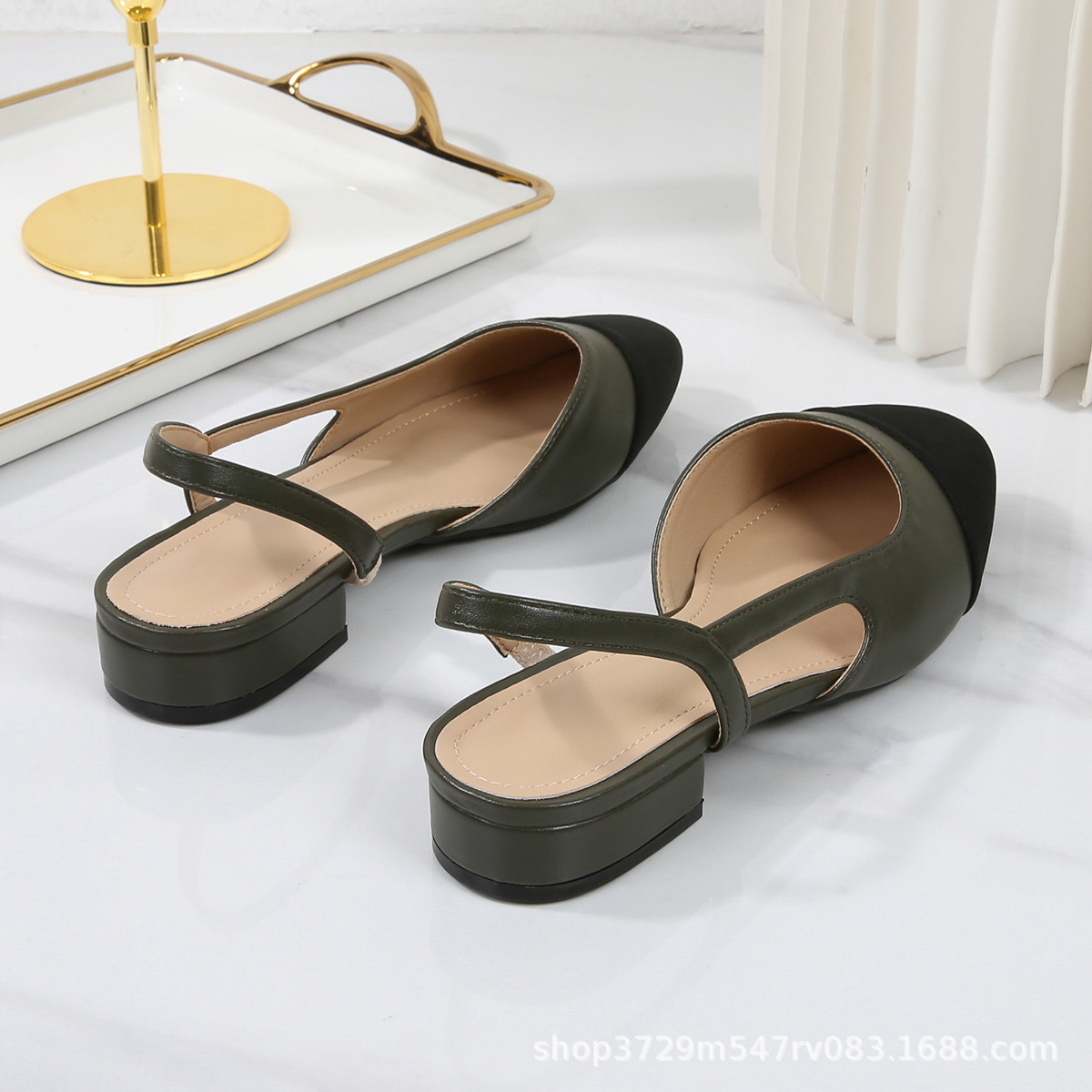 크로스보더 대형 사이즈 여성화, 샤넬 스타일 뒤트임 샌들, 여성 플랫 하이힐, 컬러블록 두꺼운 굽 단화, 명품 동일 스타일