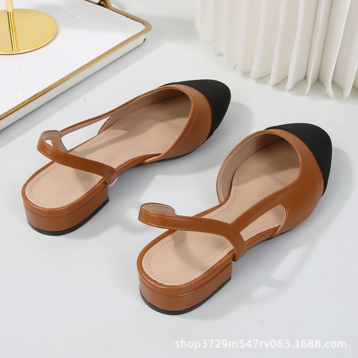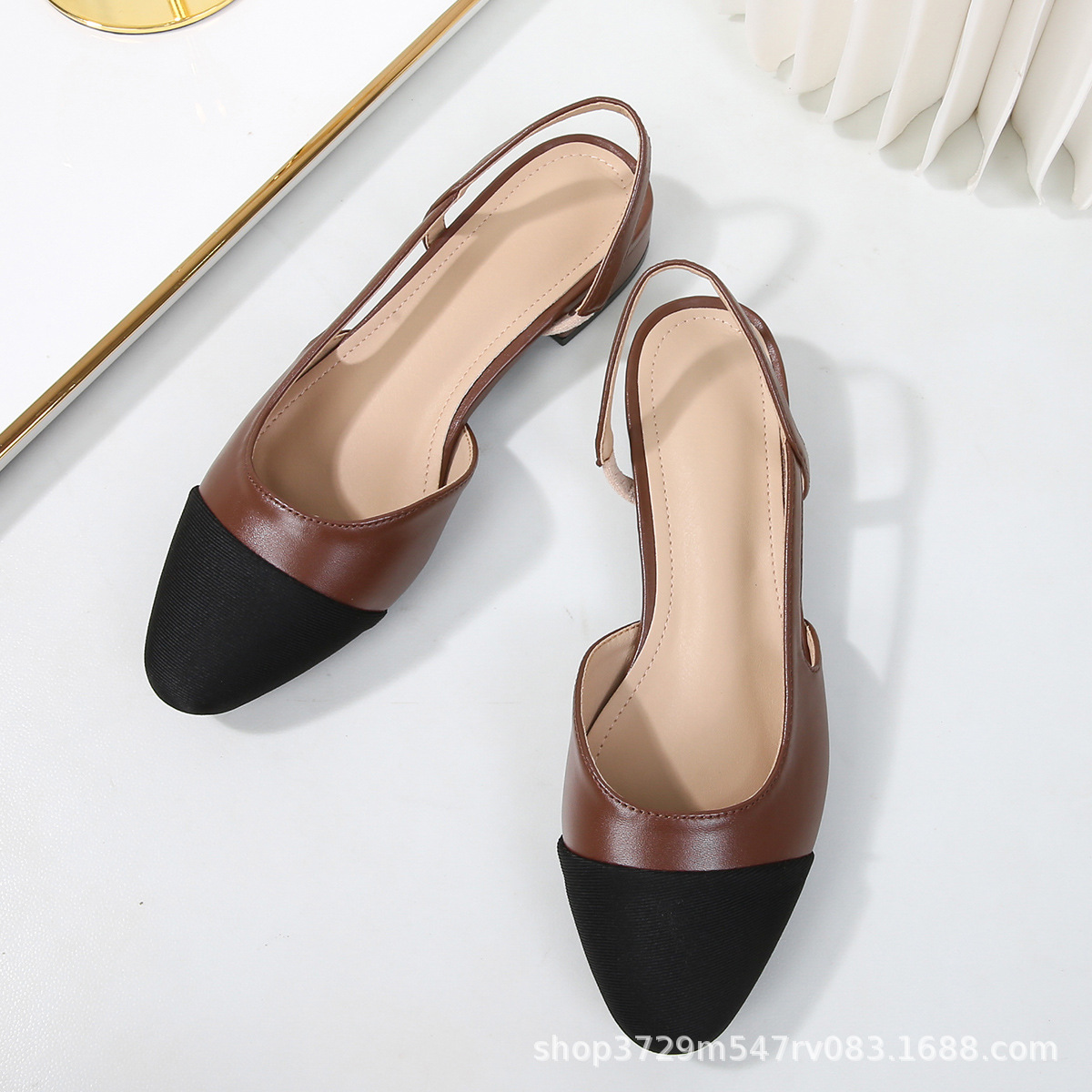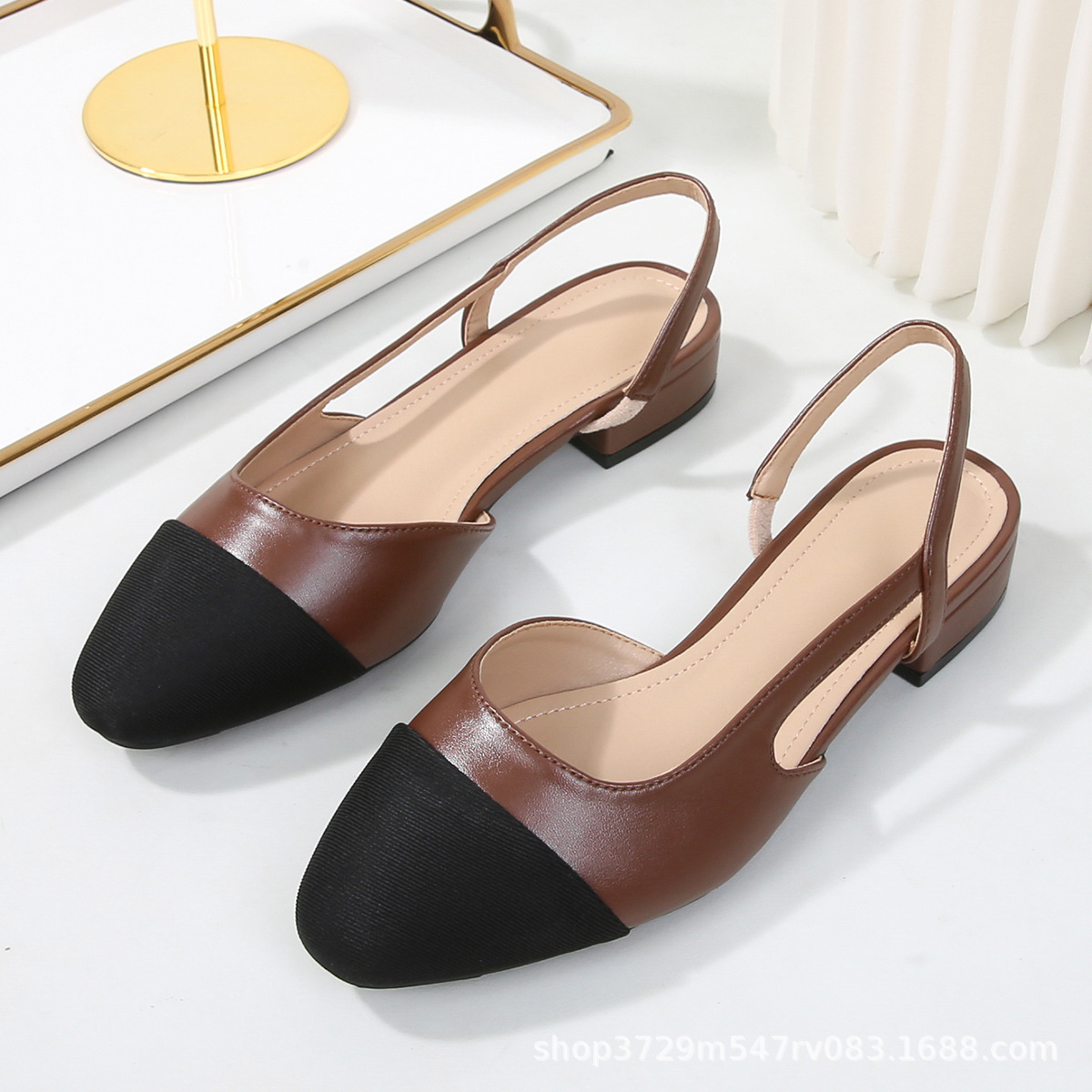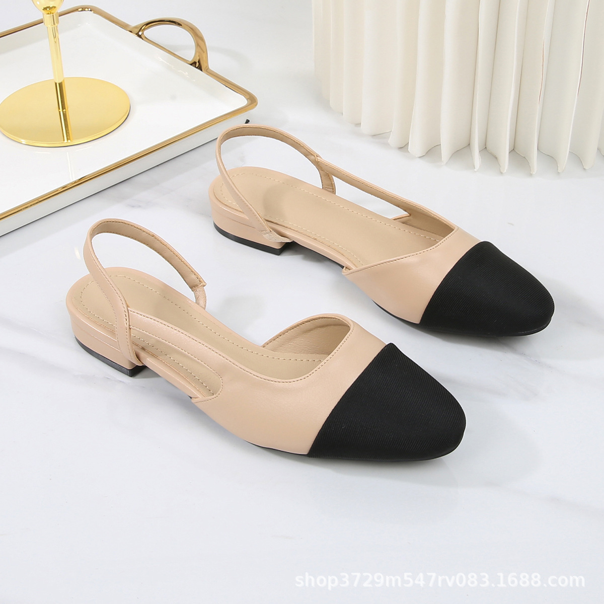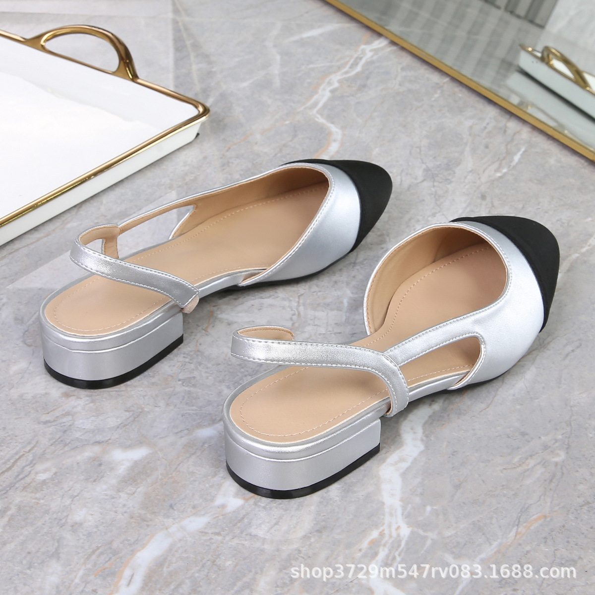 크로스보더 대형 사이즈 여성화, 샤넬 스타일 뒤트임 샌들, 여성 플랫 하이힐, 컬러블록 두꺼운 굽 단화, 명품 동일 스타일스토어 가기