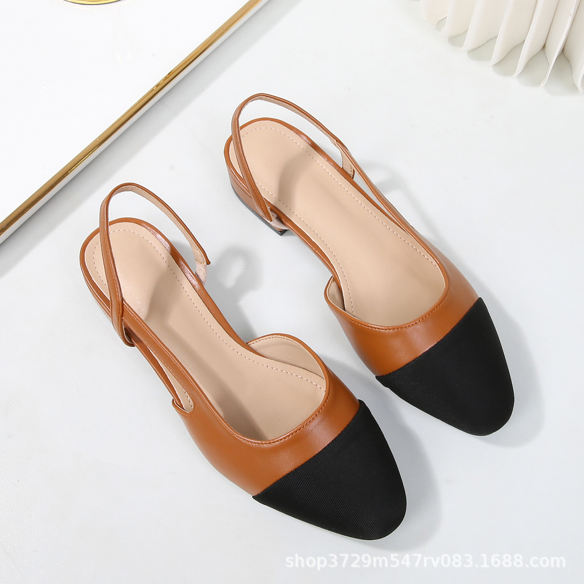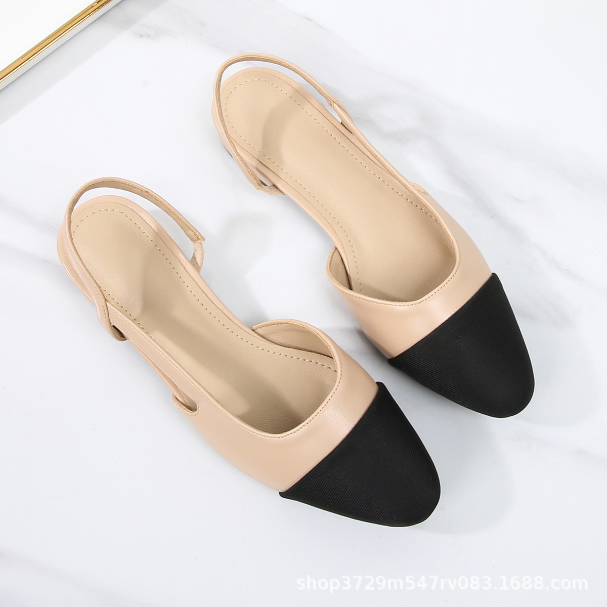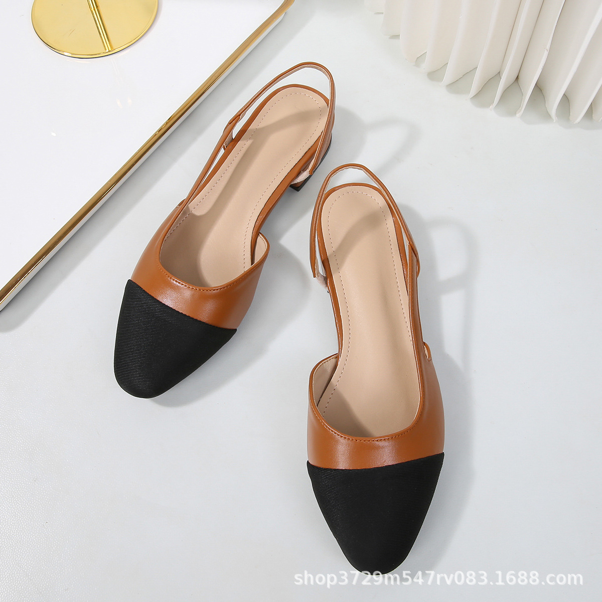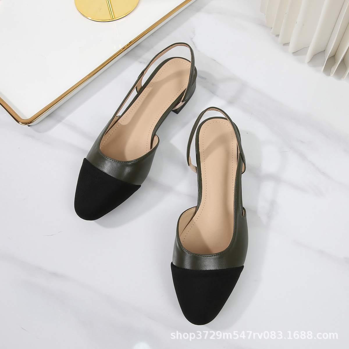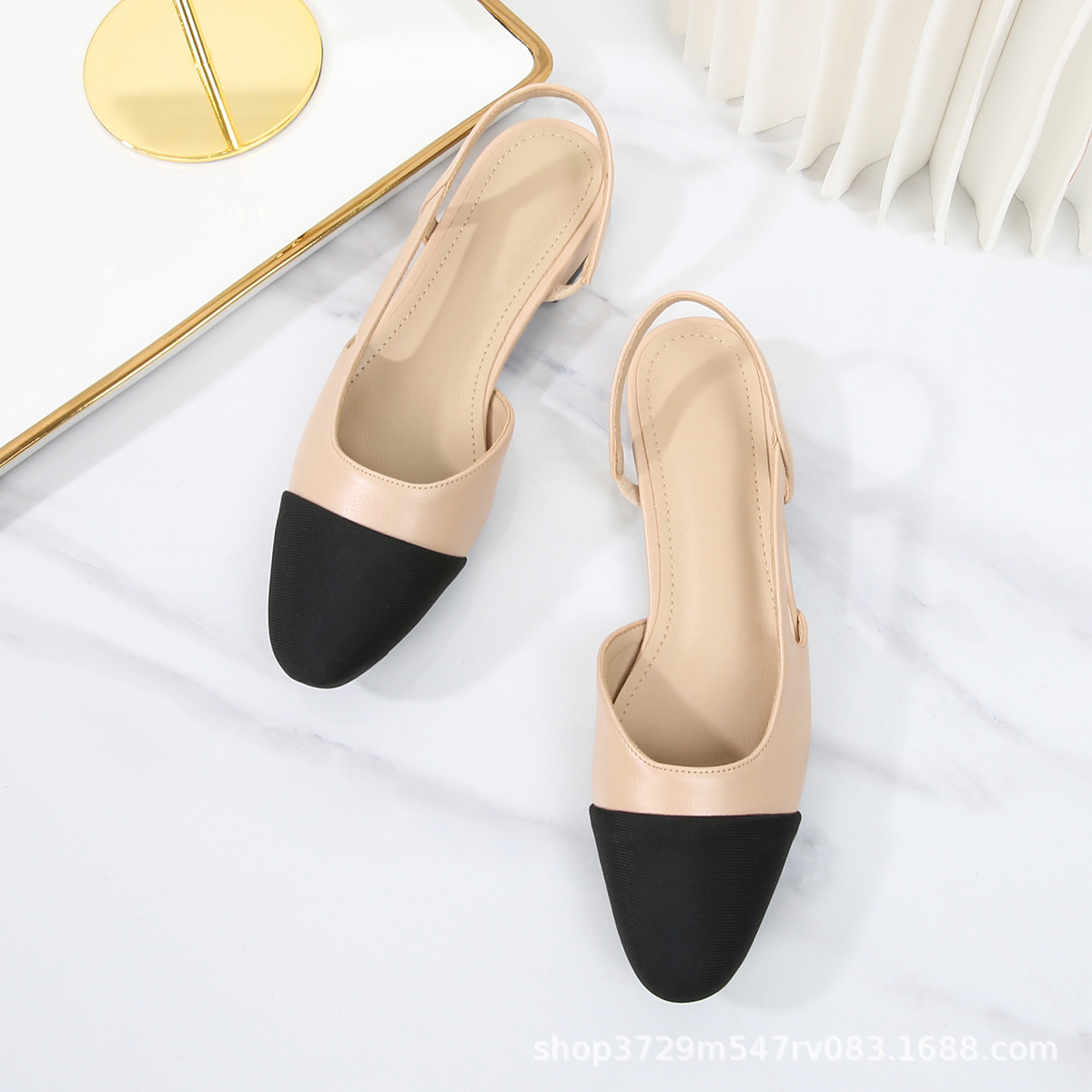 크로스보더 대형 사이즈 여성화, 샤넬 스타일 뒤트임 샌들, 여성 플랫 하이힐, 컬러블록 두꺼운 굽 단화, 명품 동일 스타일스토어 가기