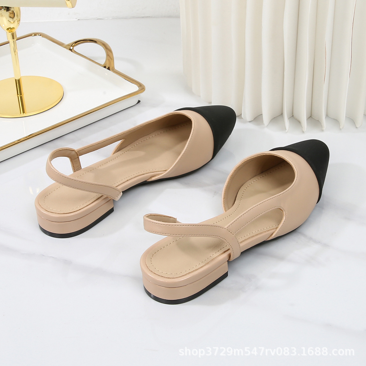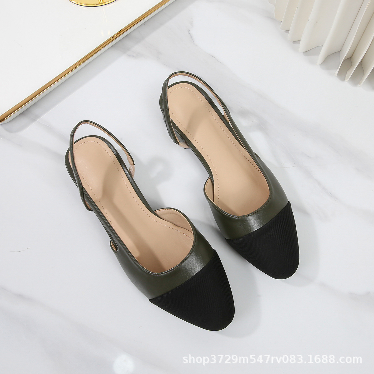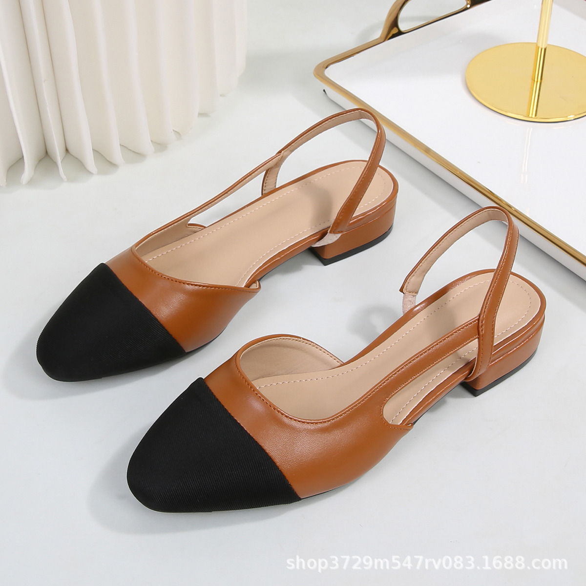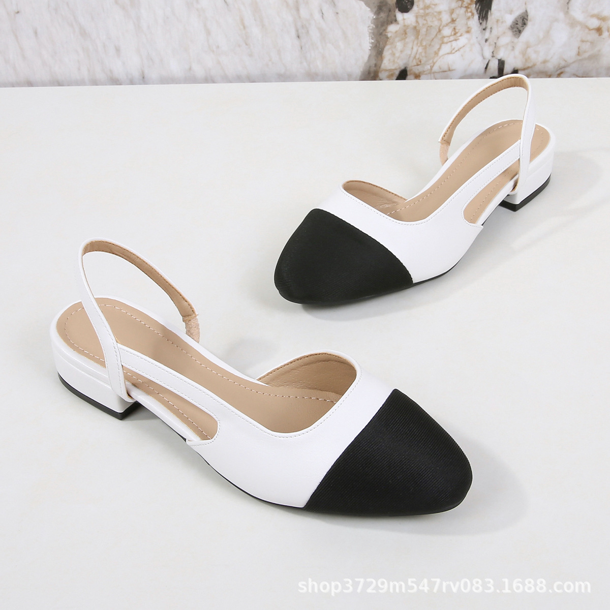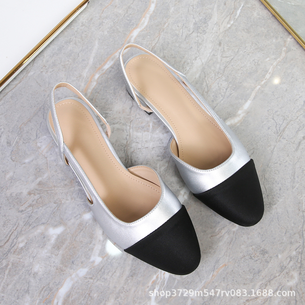 크로스보더 대형 사이즈 여성화, 샤넬 스타일 뒤트임 샌들, 여성 플랫 하이힐, 컬러블록 두꺼운 굽 단화, 명품 동일 스타일스토어 가기