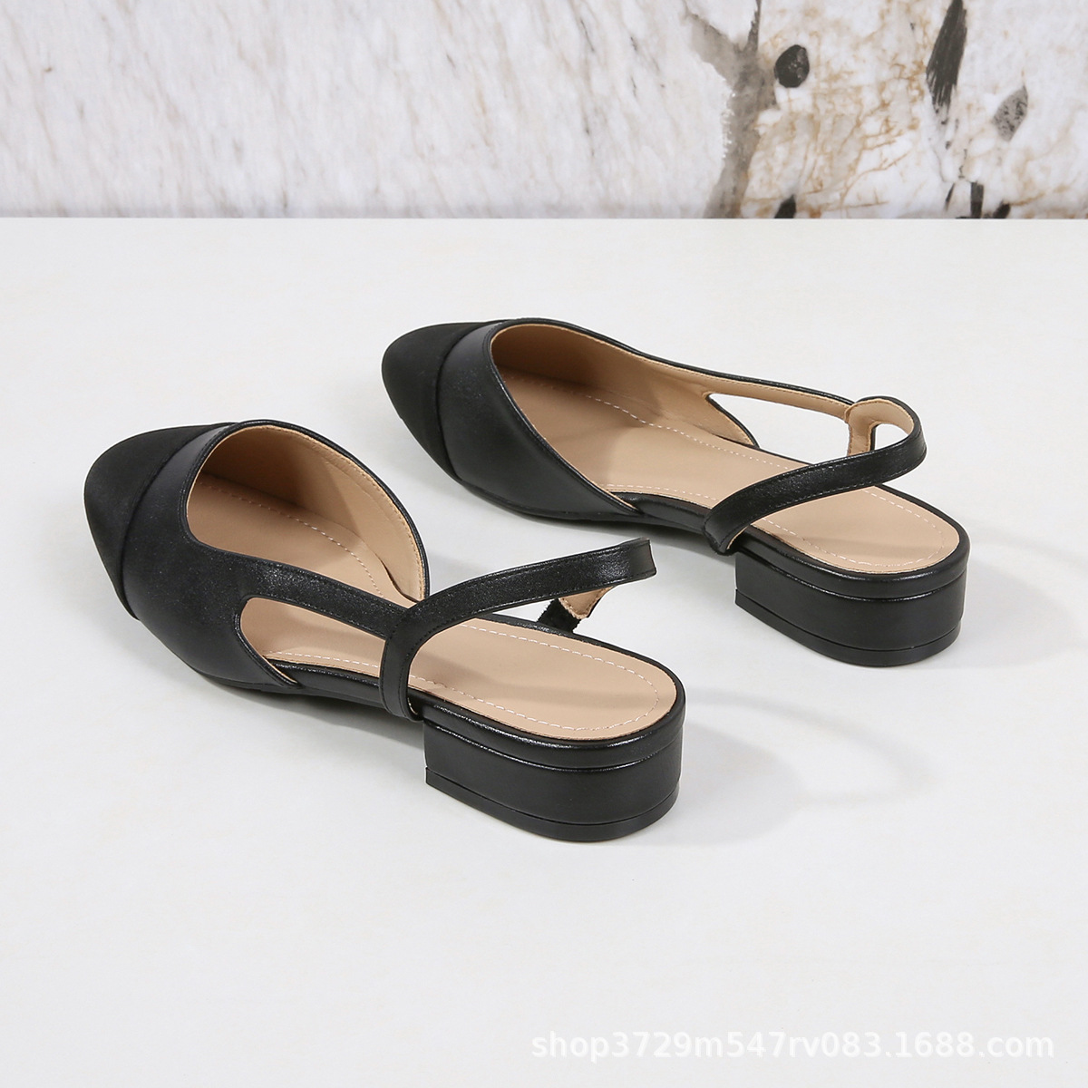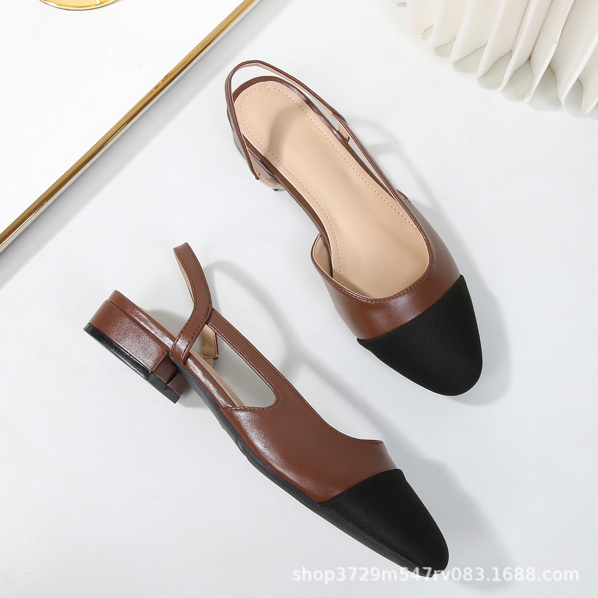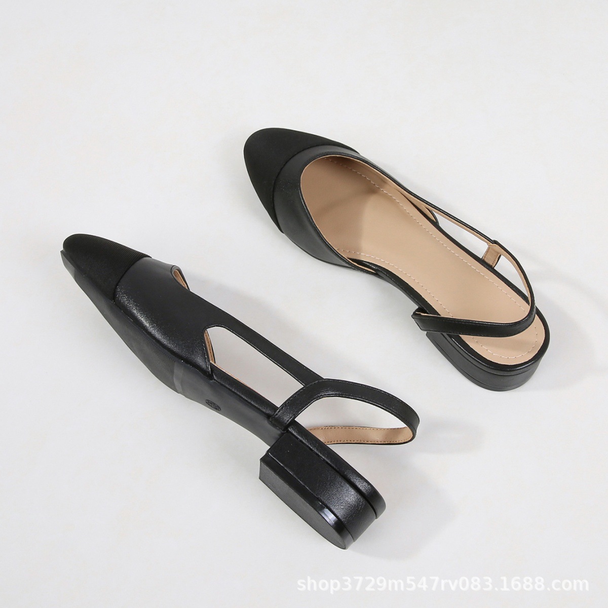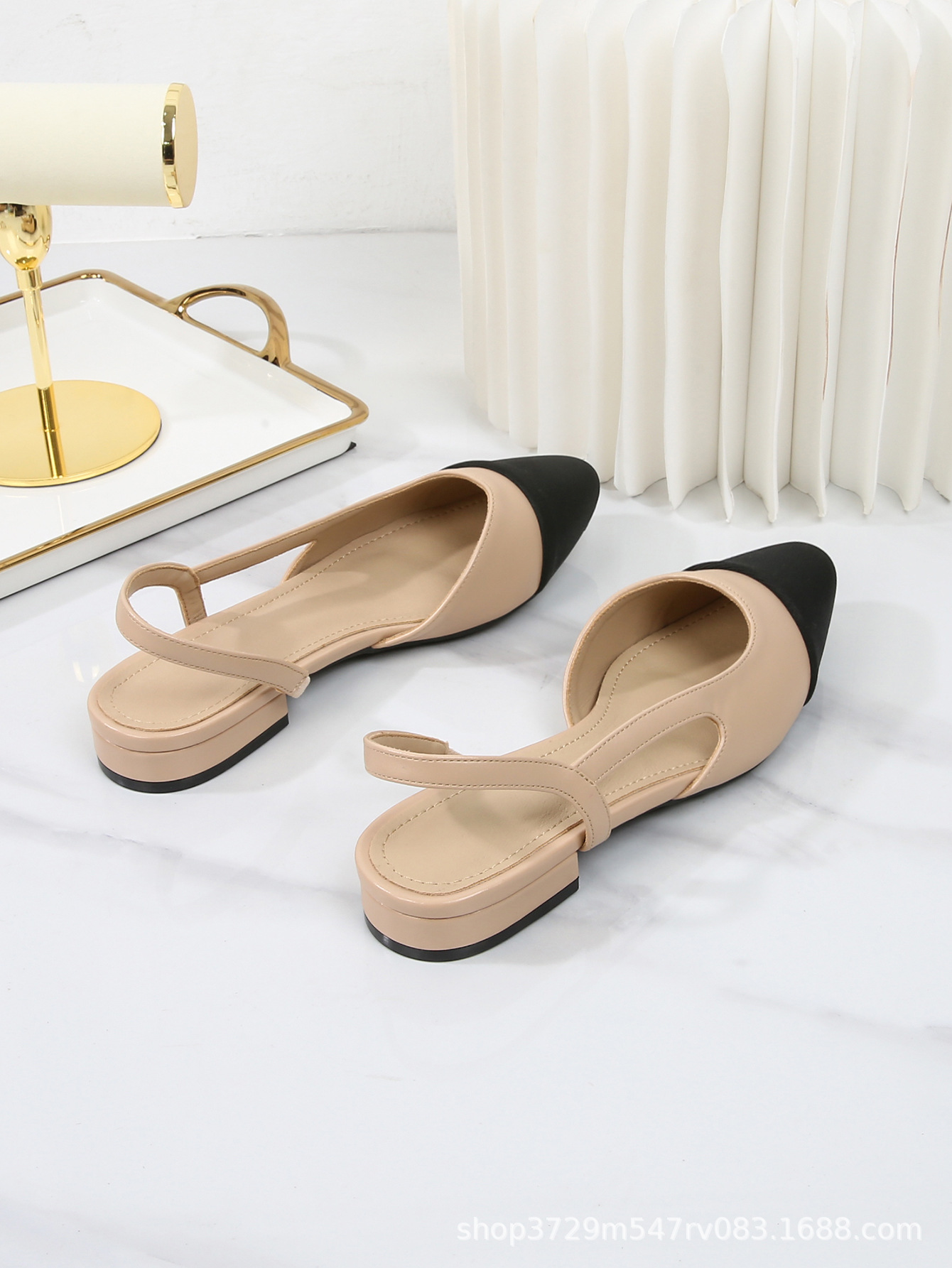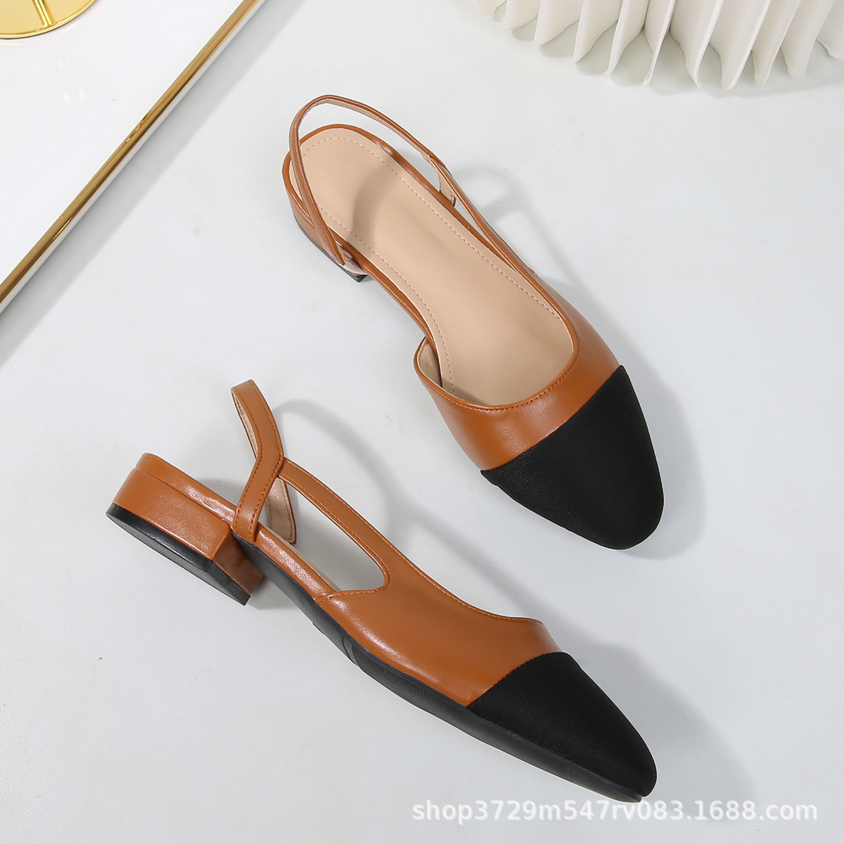 크로스보더 대형 사이즈 여성화, 샤넬 스타일 뒤트임 샌들, 여성 플랫 하이힐, 컬러블록 두꺼운 굽 단화, 명품 동일 스타일스토어 가기