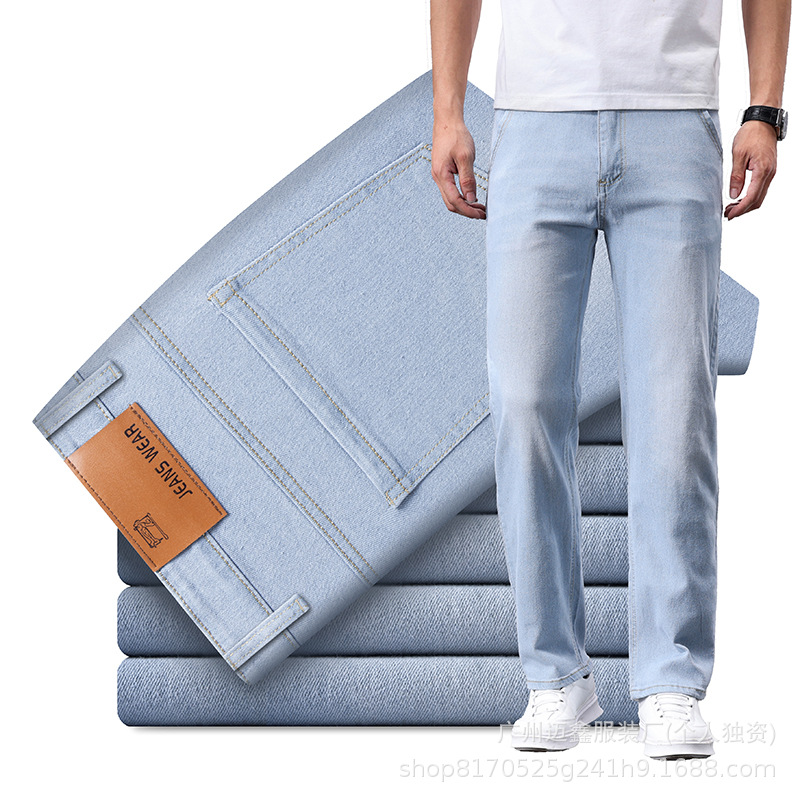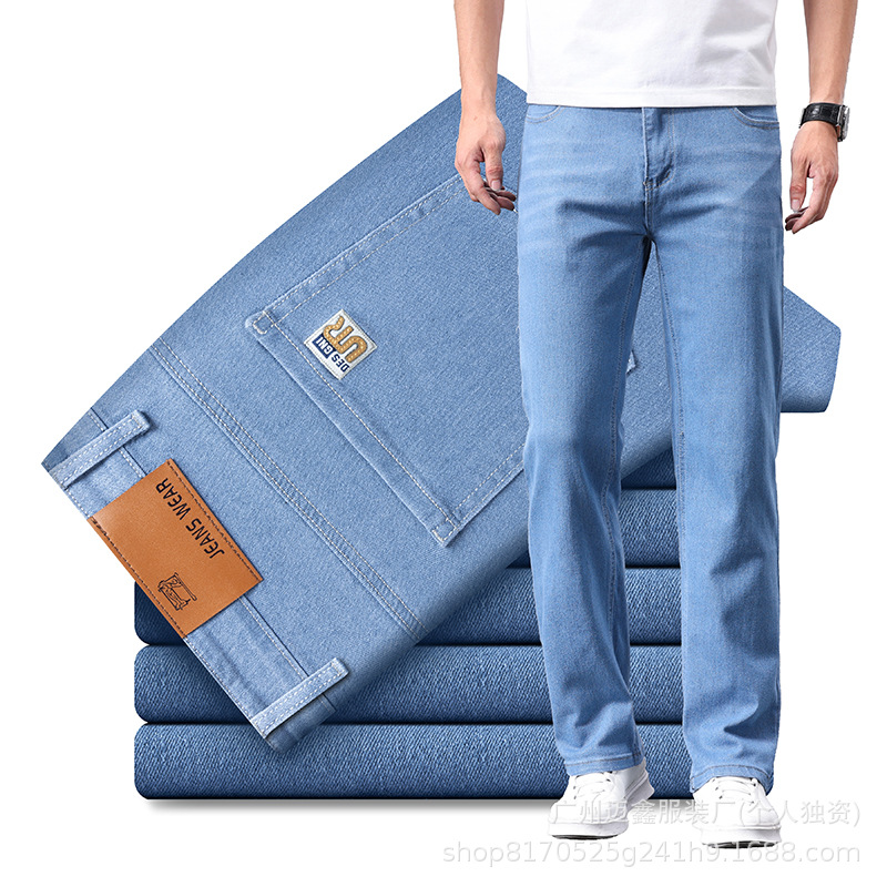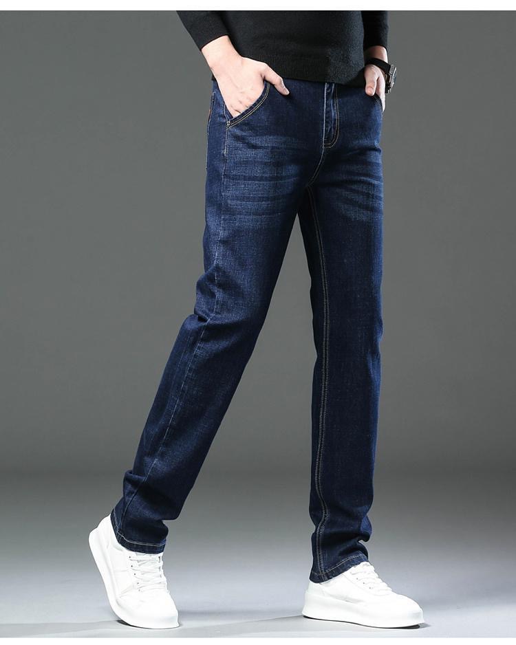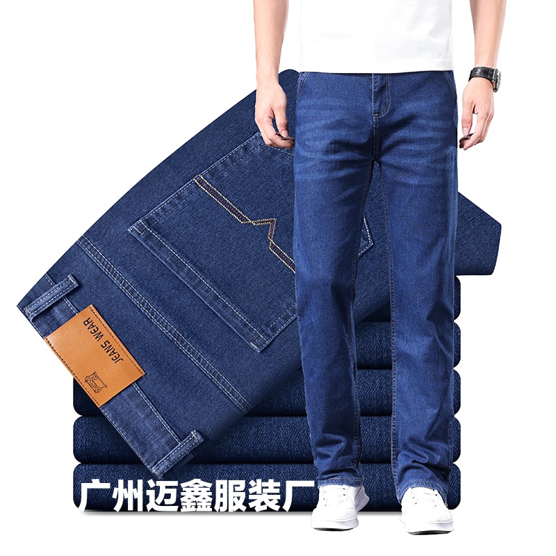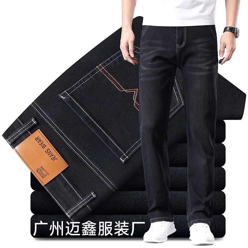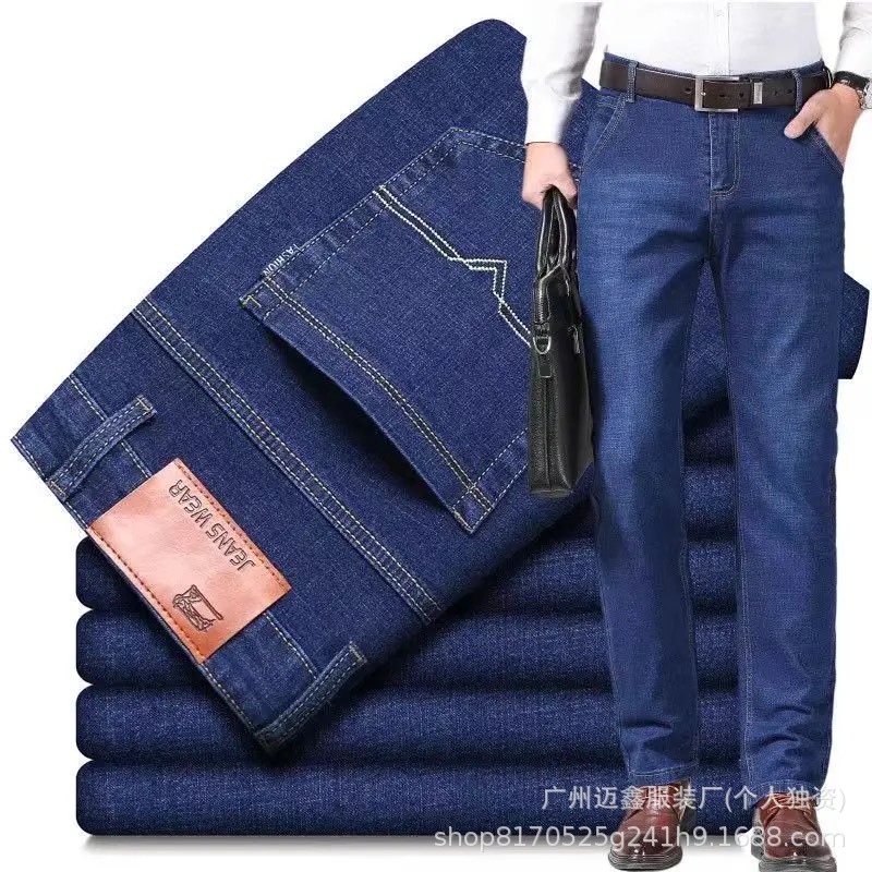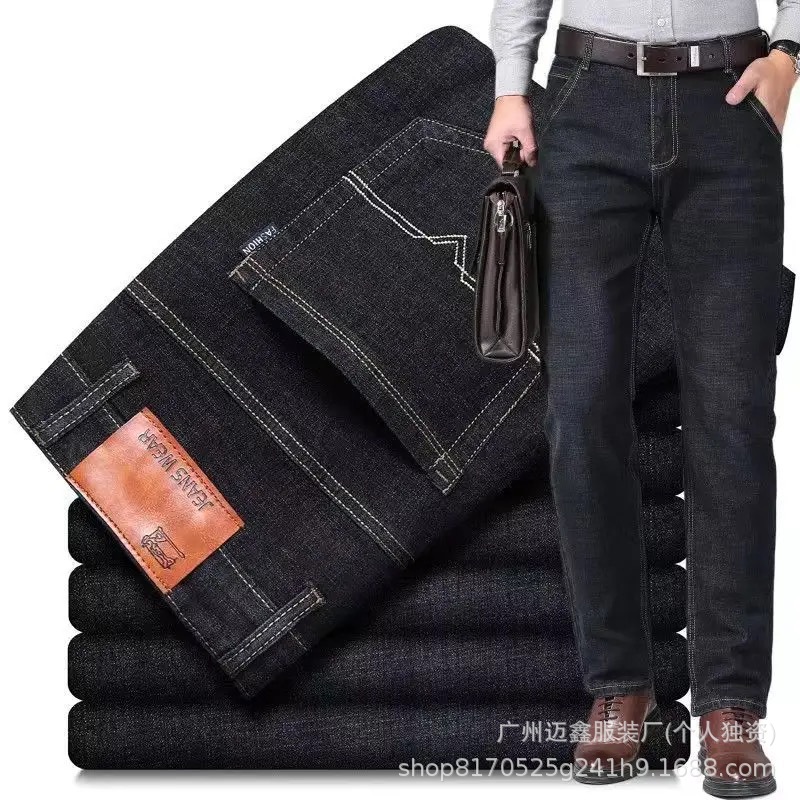 2025 봄과 가을 청바지 남성용 스트레이트 루즈 캐주얼 중년 남성용 바지는 대외 무역을위한 남성용 높은 탄성 긴 바지에스토어 가기