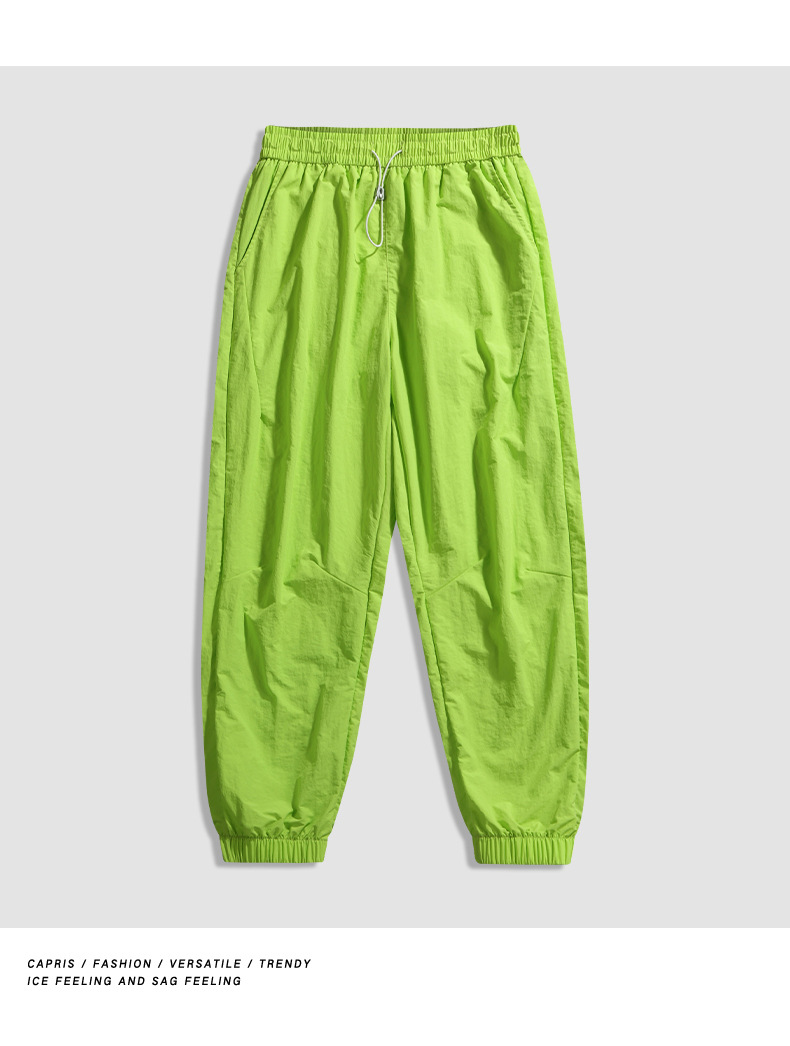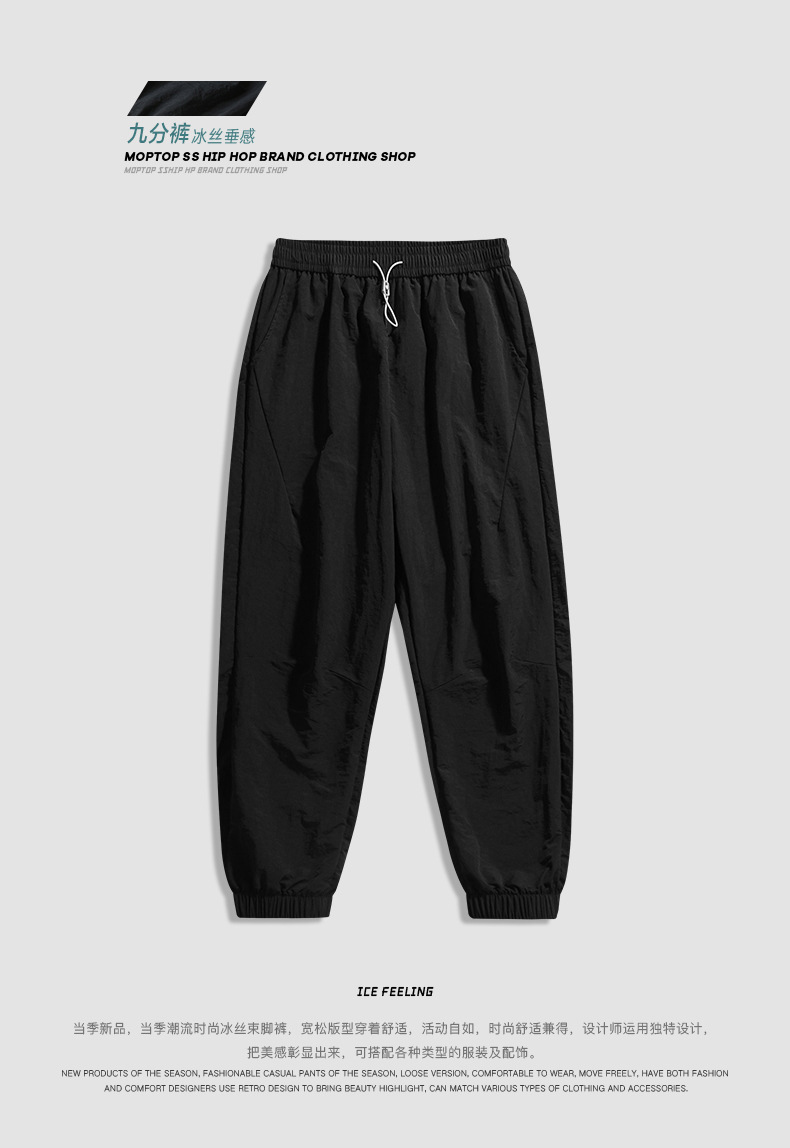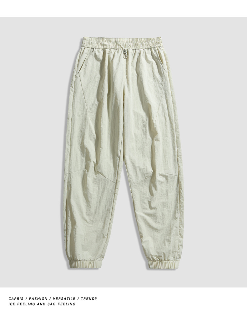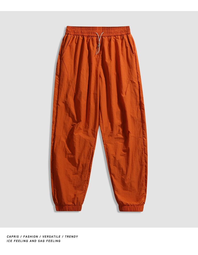 ACU 남성 의류 | 주름 캐주얼 바지 남성 여름 실키 빠른 건조 아이스 실크 바지 남성 패션 브랜드 발목 묶은 멋진 바지스토어 가기