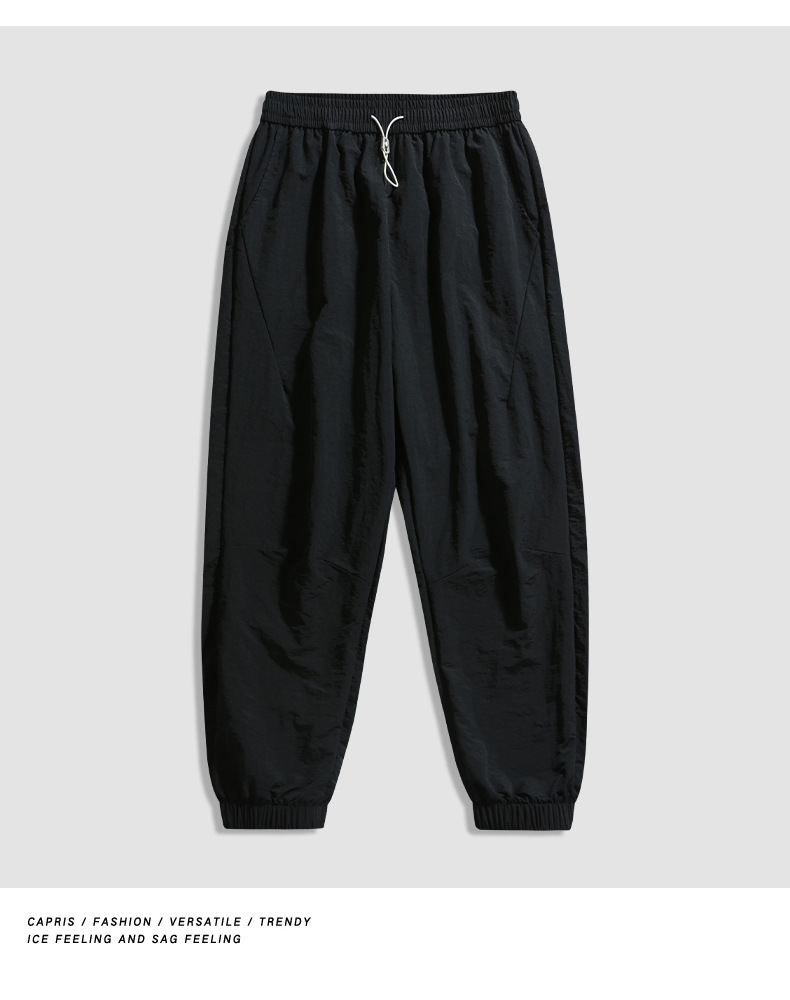ACU 남성 의류 | 주름 캐주얼 바지 남성 여름 실키 빠른 건조 아이스 실크 바지 남성 패션 브랜드 발목 묶은 멋진 바지