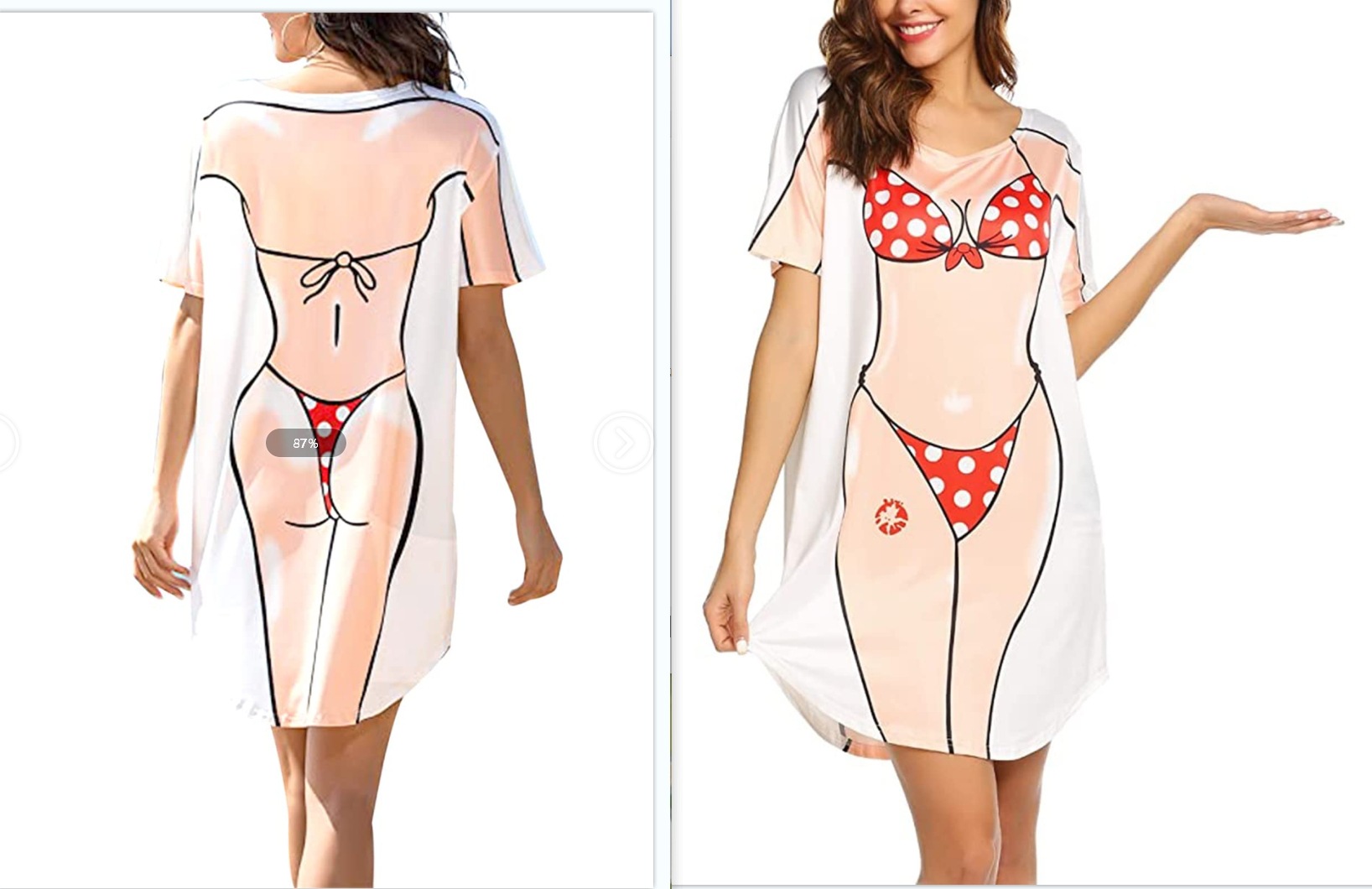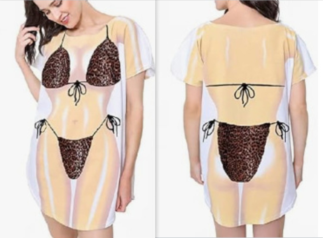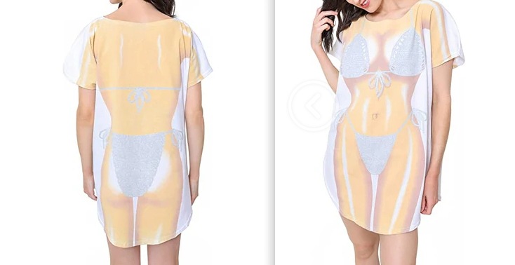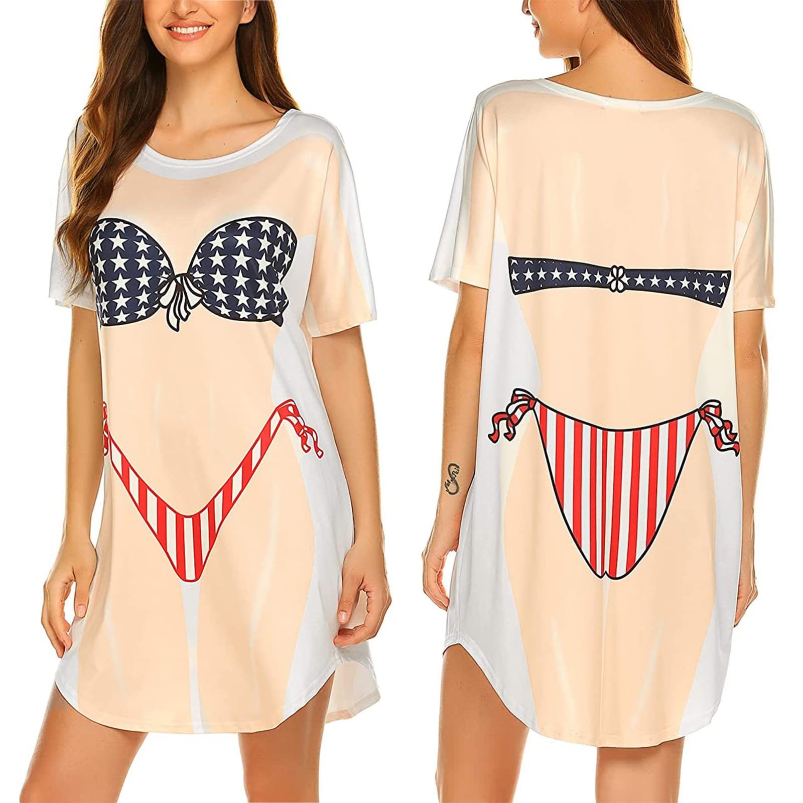 공장 직접 판매 여성의 새로운 여름 느슨한 최고 창조적 인 3D 비키니 인쇄 둥근 목 짧은 소매 원피스스토어 가기