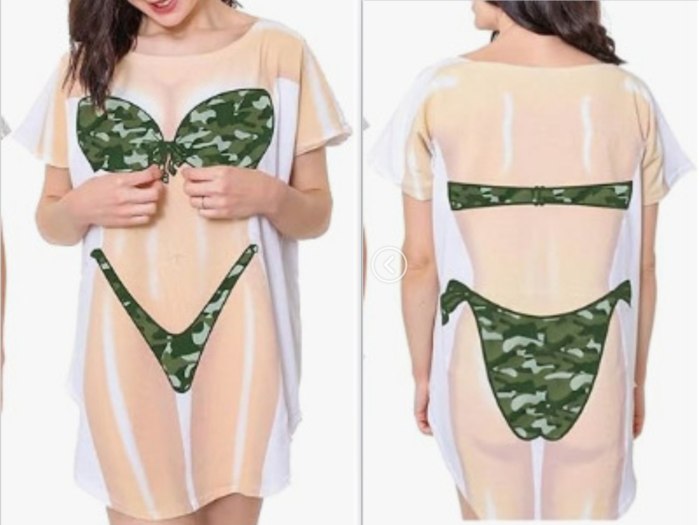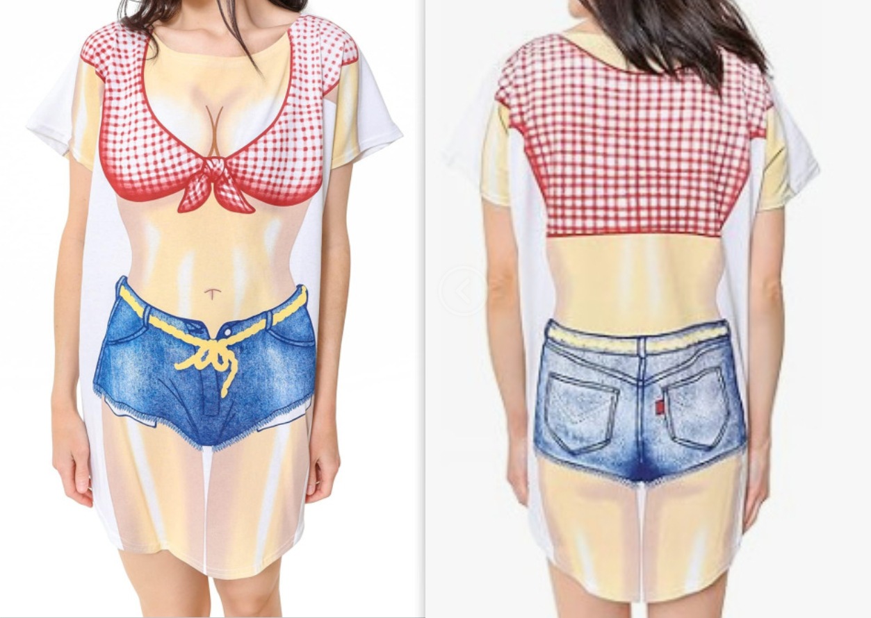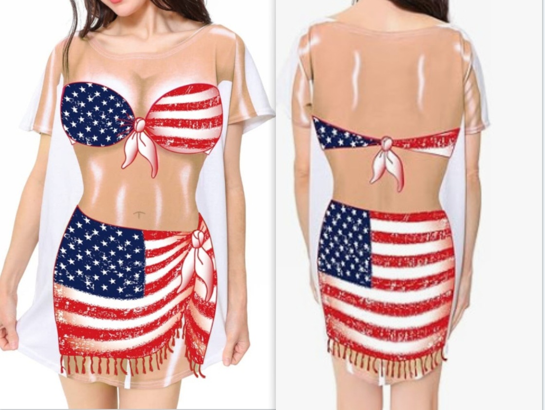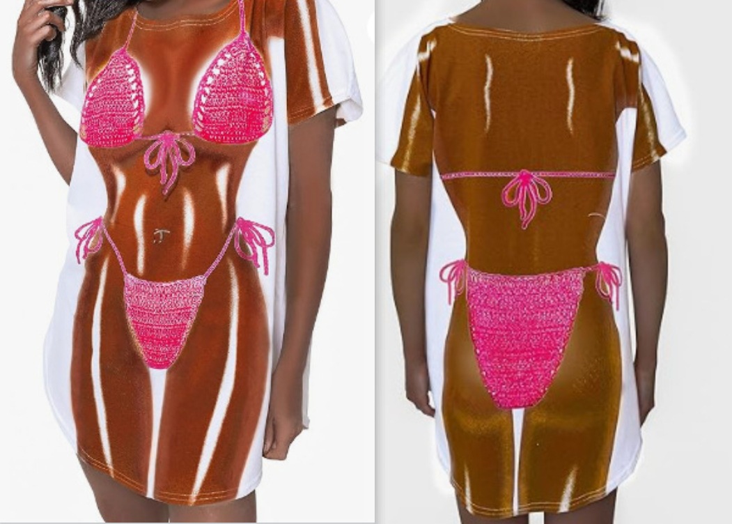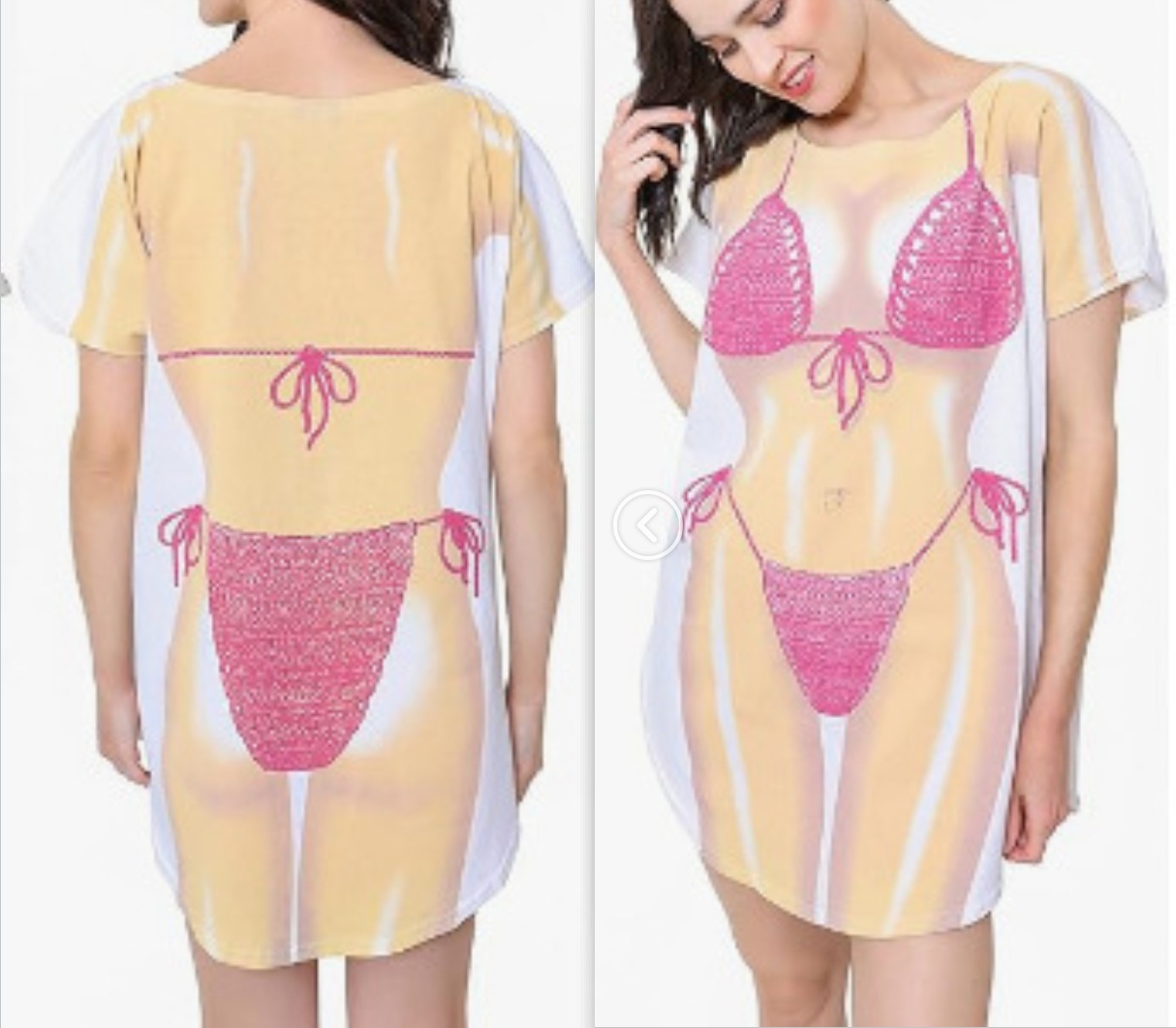 공장 직접 판매 여성의 새로운 여름 느슨한 최고 창조적 인 3D 비키니 인쇄 둥근 목 짧은 소매 원피스스토어 가기