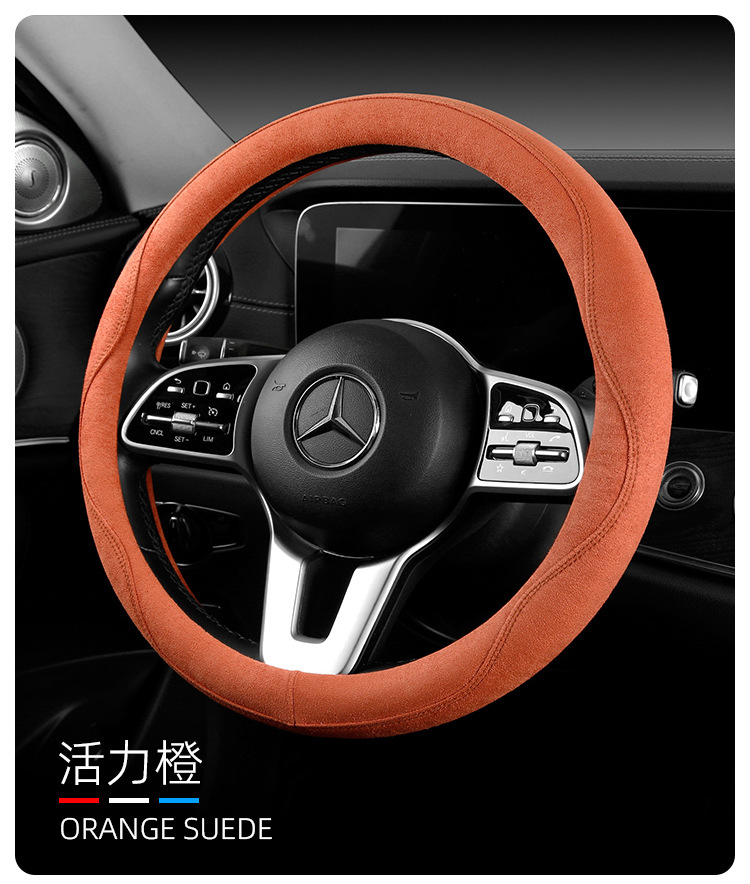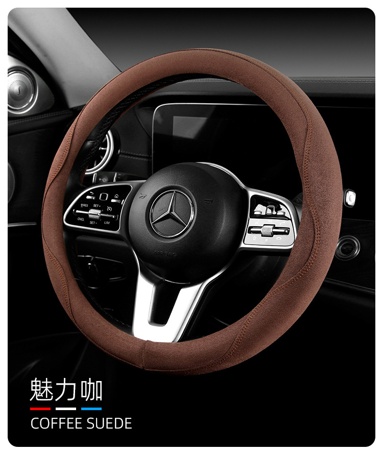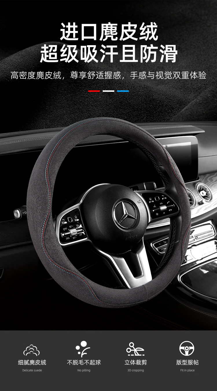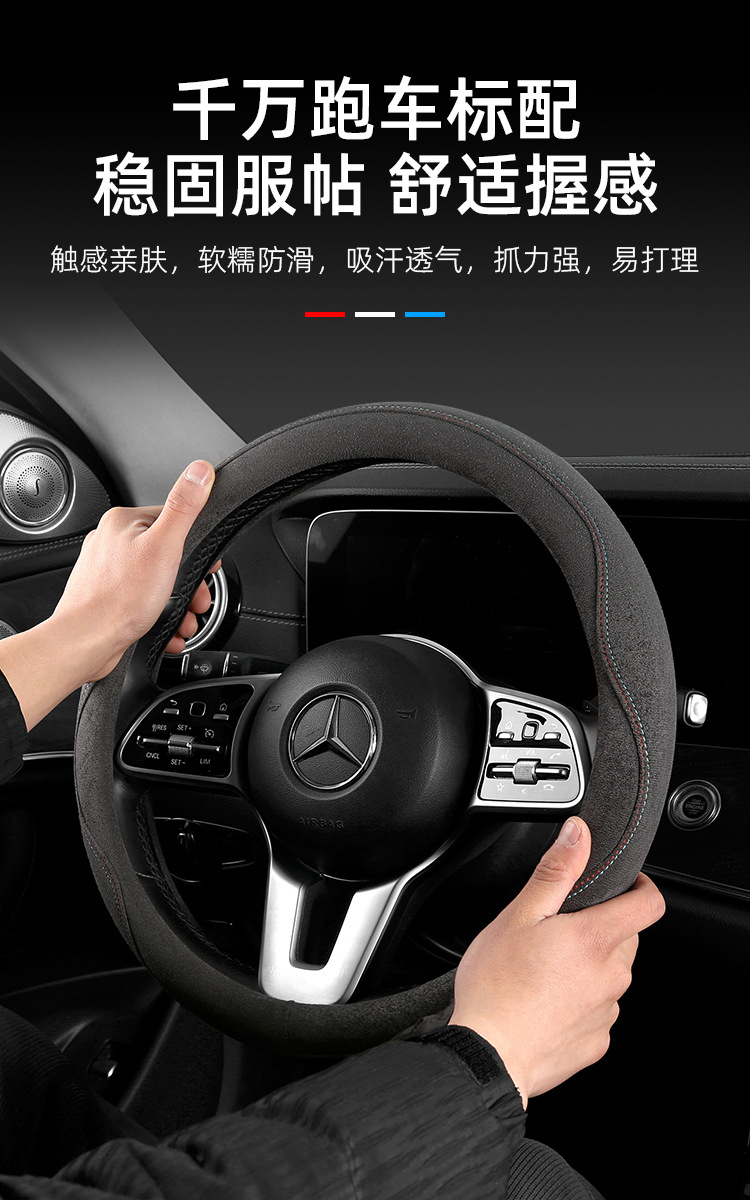 남녀공용 사계절용 스티어링 휠 커버, 봄여름용 스웨이드 미끄럼 방지 고급 자동차 핸들 커버, 제조사 직배송, 해외배송스토어 가기