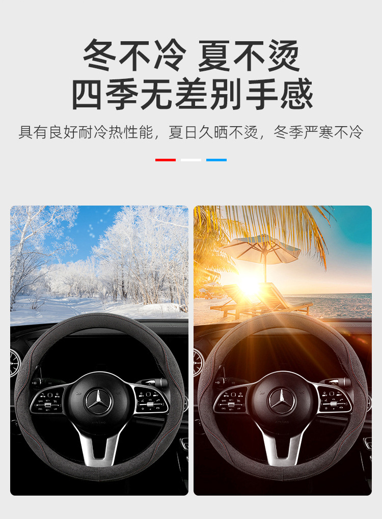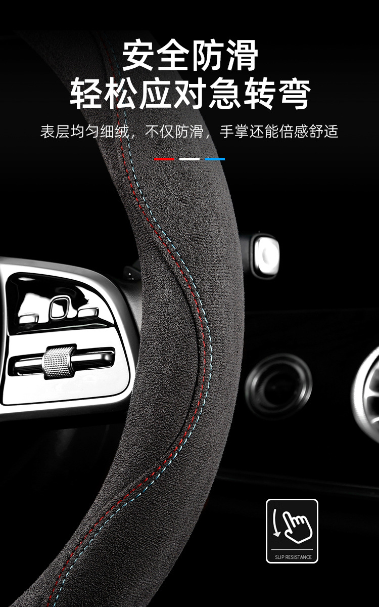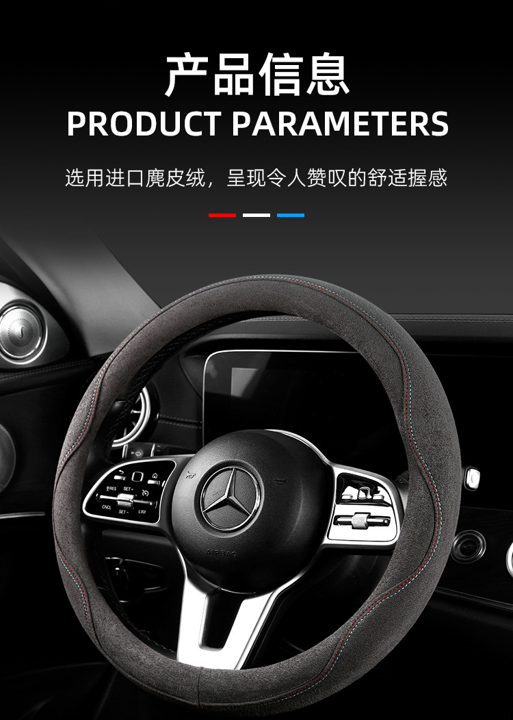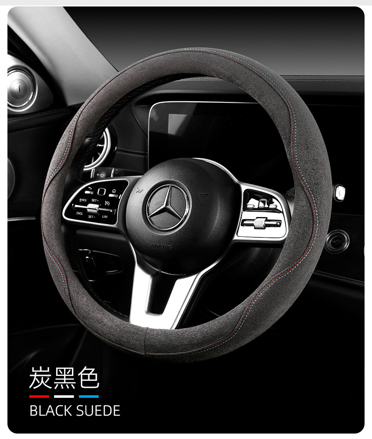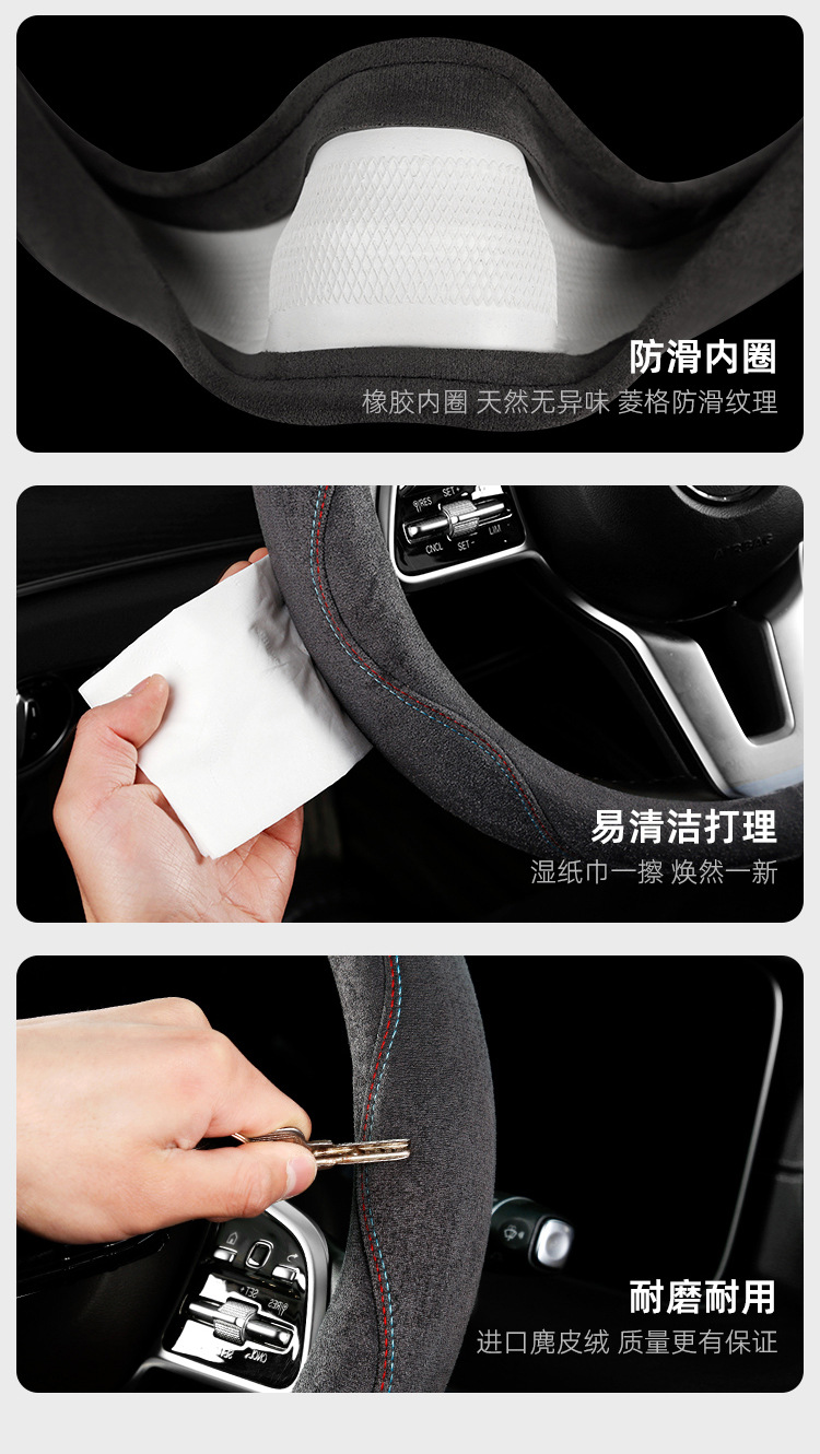 남녀공용 사계절용 스티어링 휠 커버, 봄여름용 스웨이드 미끄럼 방지 고급 자동차 핸들 커버, 제조사 직배송, 해외배송스토어 가기