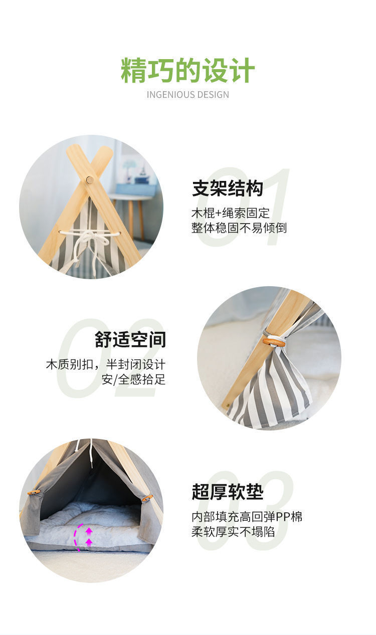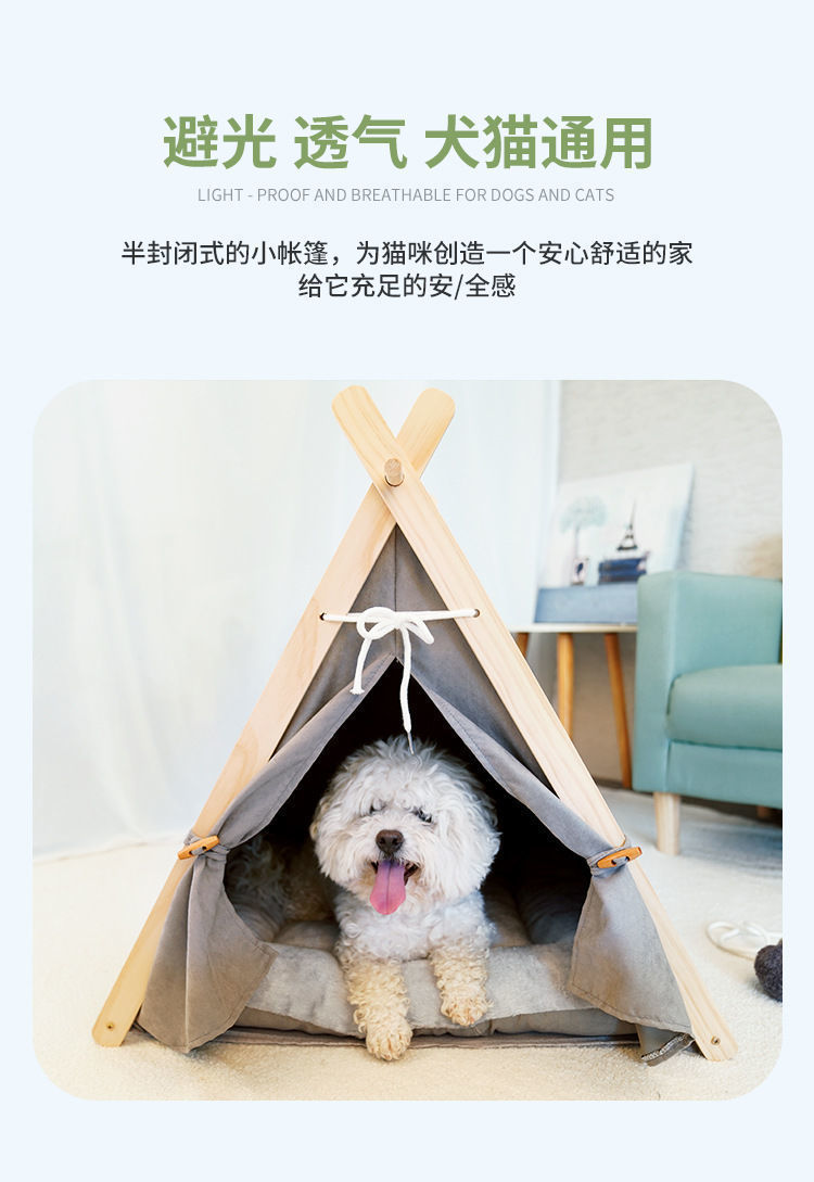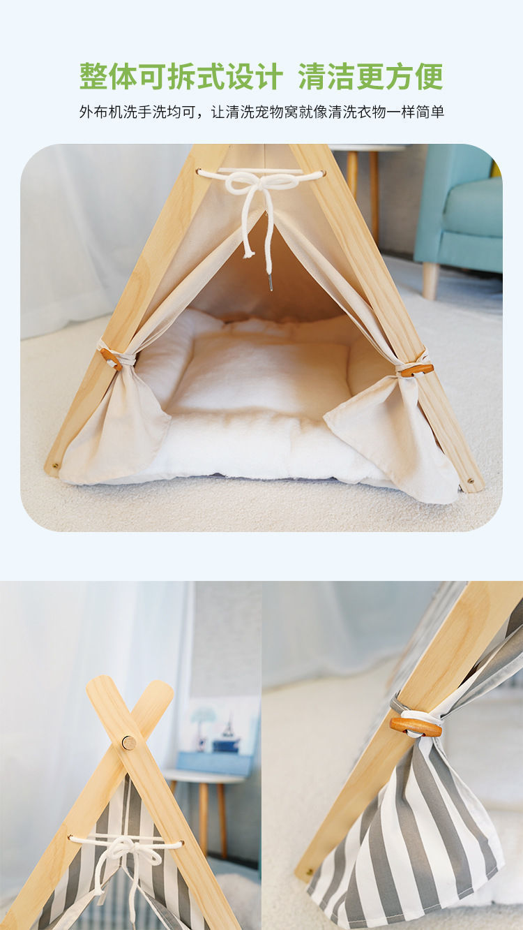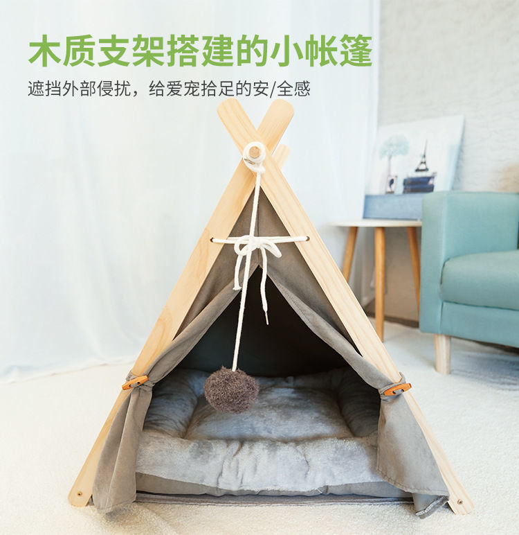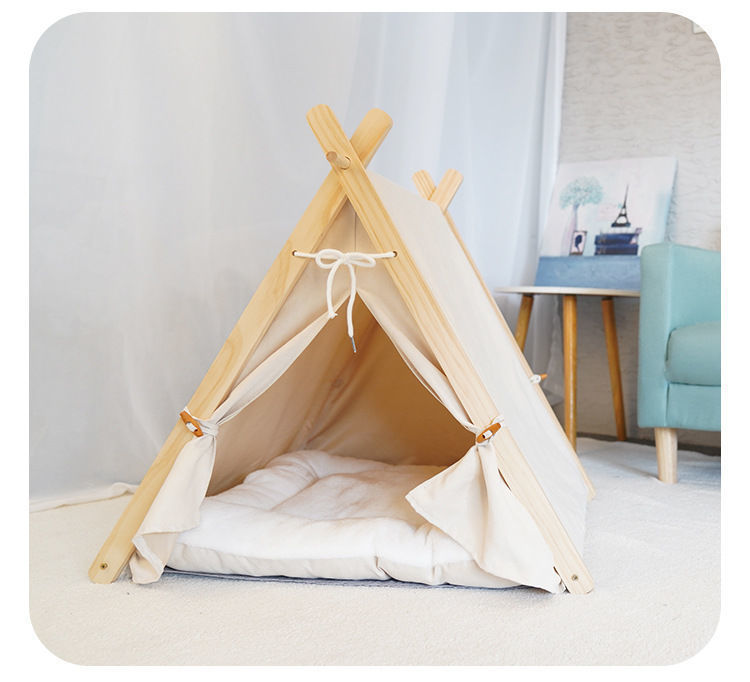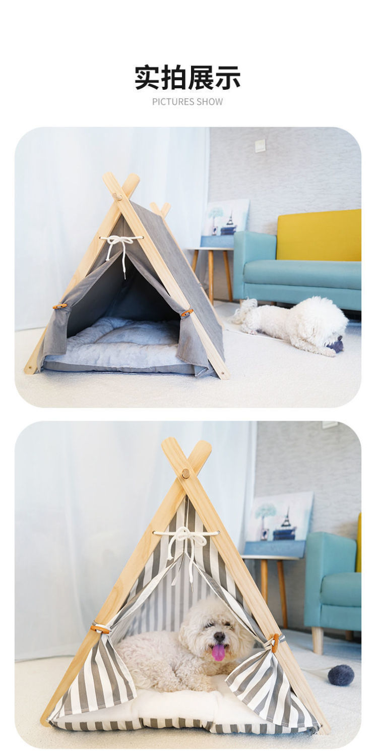 애완 동물 텐트 사계절 고양이 둥지 사육장 제거 가능하고 빨 수있는 캔버스 개 삼각형 텐트 나무 애완 동물 둥지 애완 동물 매트스토어 가기