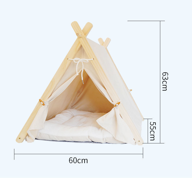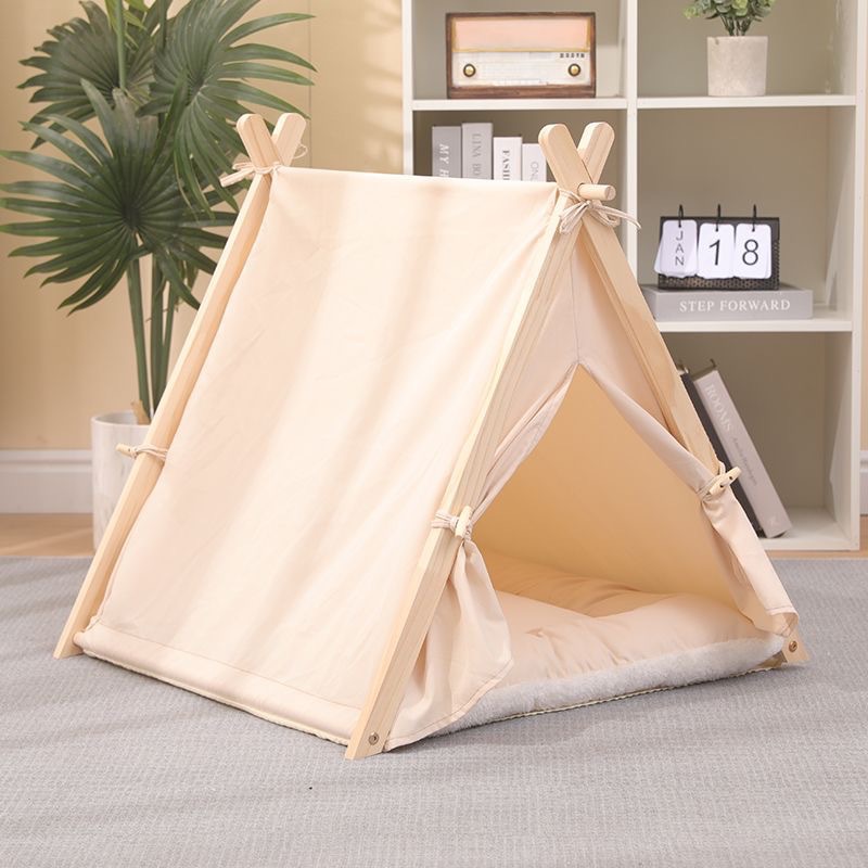 애완 동물 텐트 사계절 고양이 둥지 사육장 제거 가능하고 빨 수있는 캔버스 개 삼각형 텐트 나무 애완 동물 둥지 애완 동물 매트
