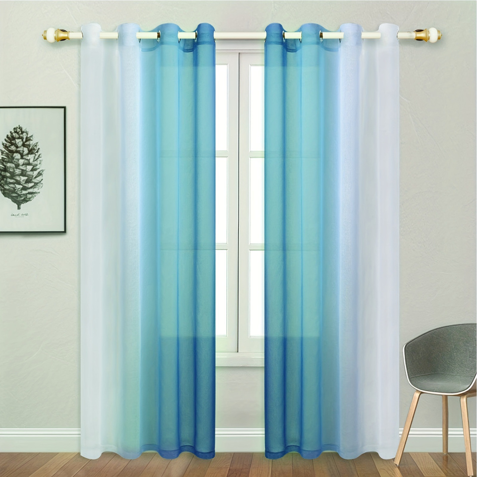 원피스 배달 크로스 테두리 봄 그라디언트 거즈 커튼 왼쪽과 오른쪽 그라디언트 우아한 투명 커튼 침실 거실 발코니 커튼