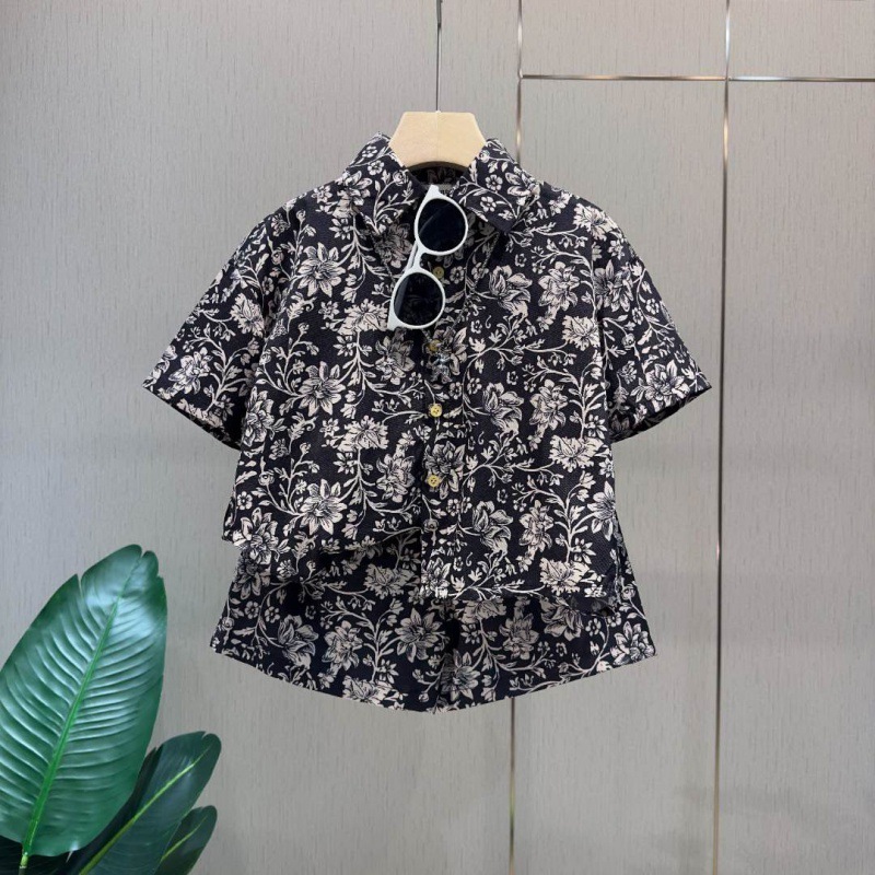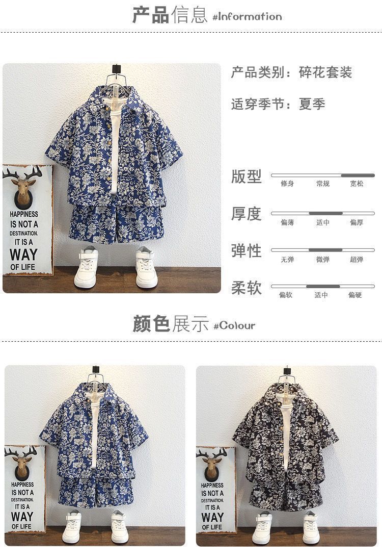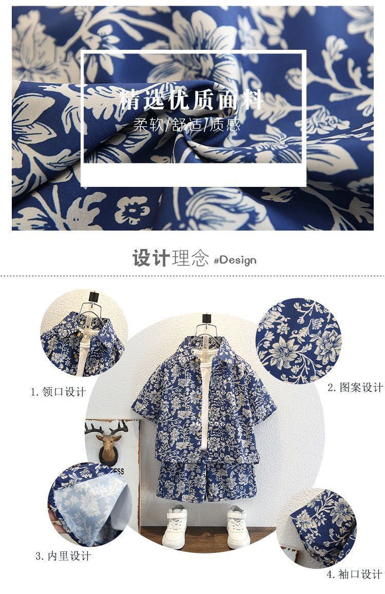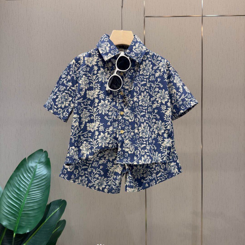 여름 반팔 얇은 상의 2024년 신상 홍콩 스타일 의류 중소형 아동 셔츠 세트 캐주얼 로얄 블루 남아용스토어 가기